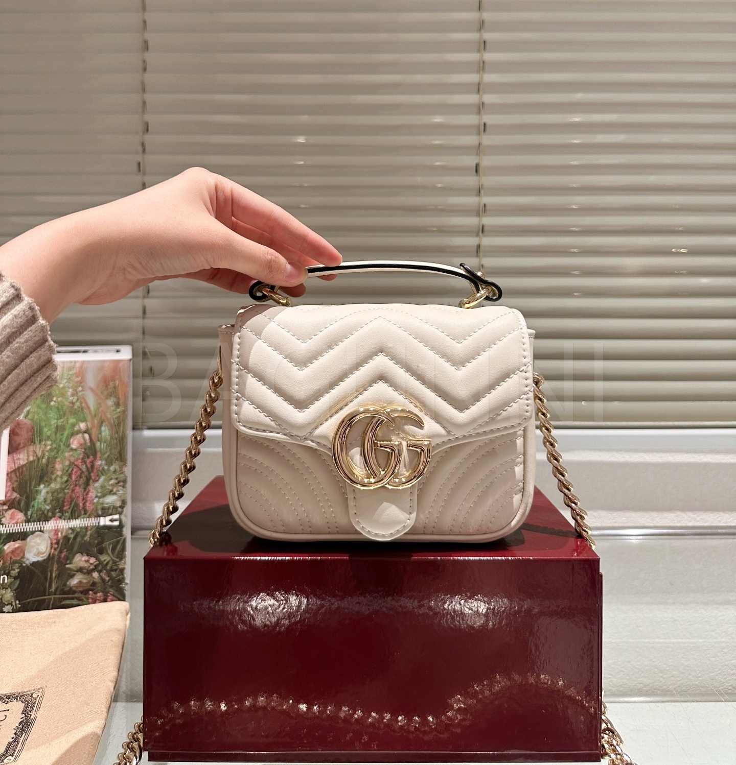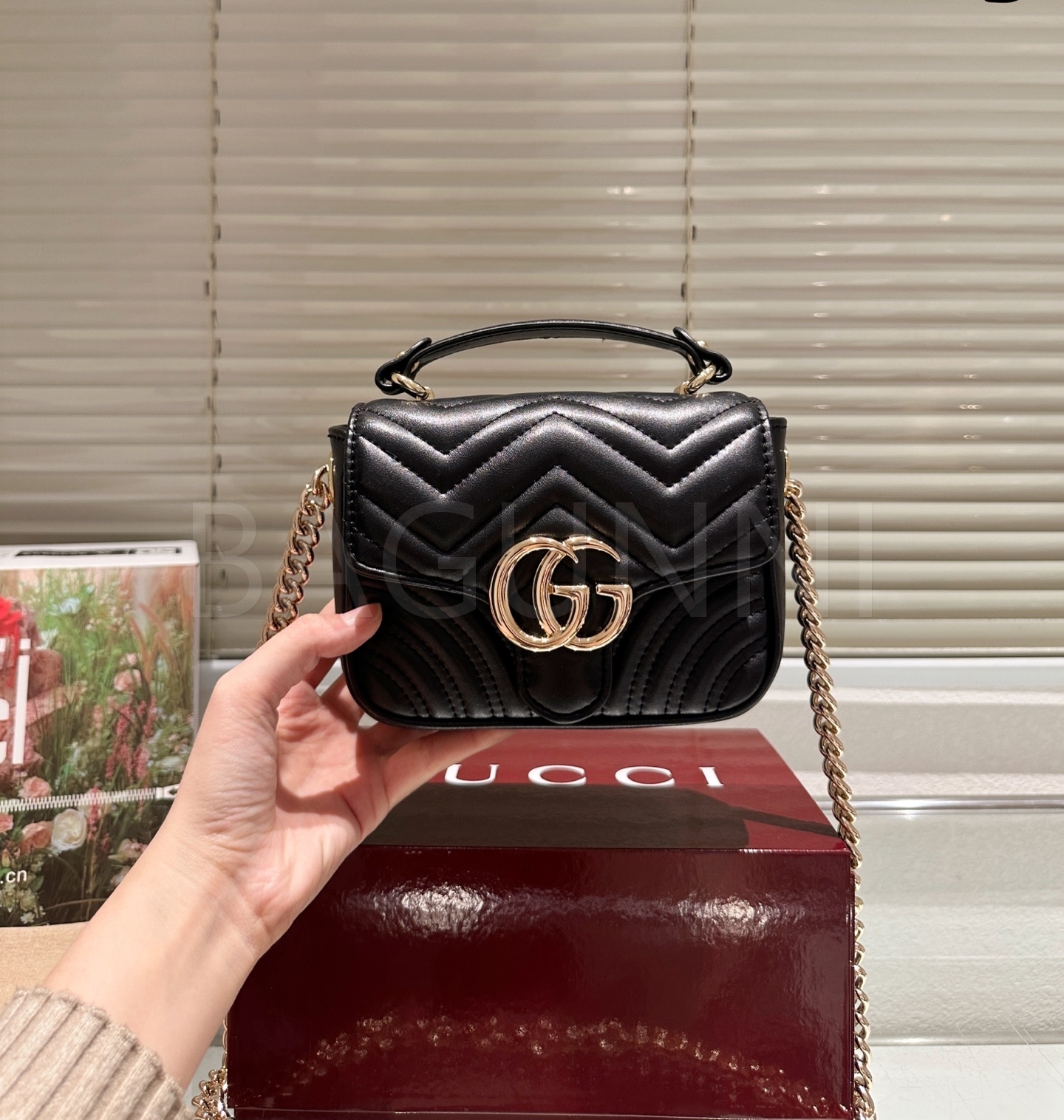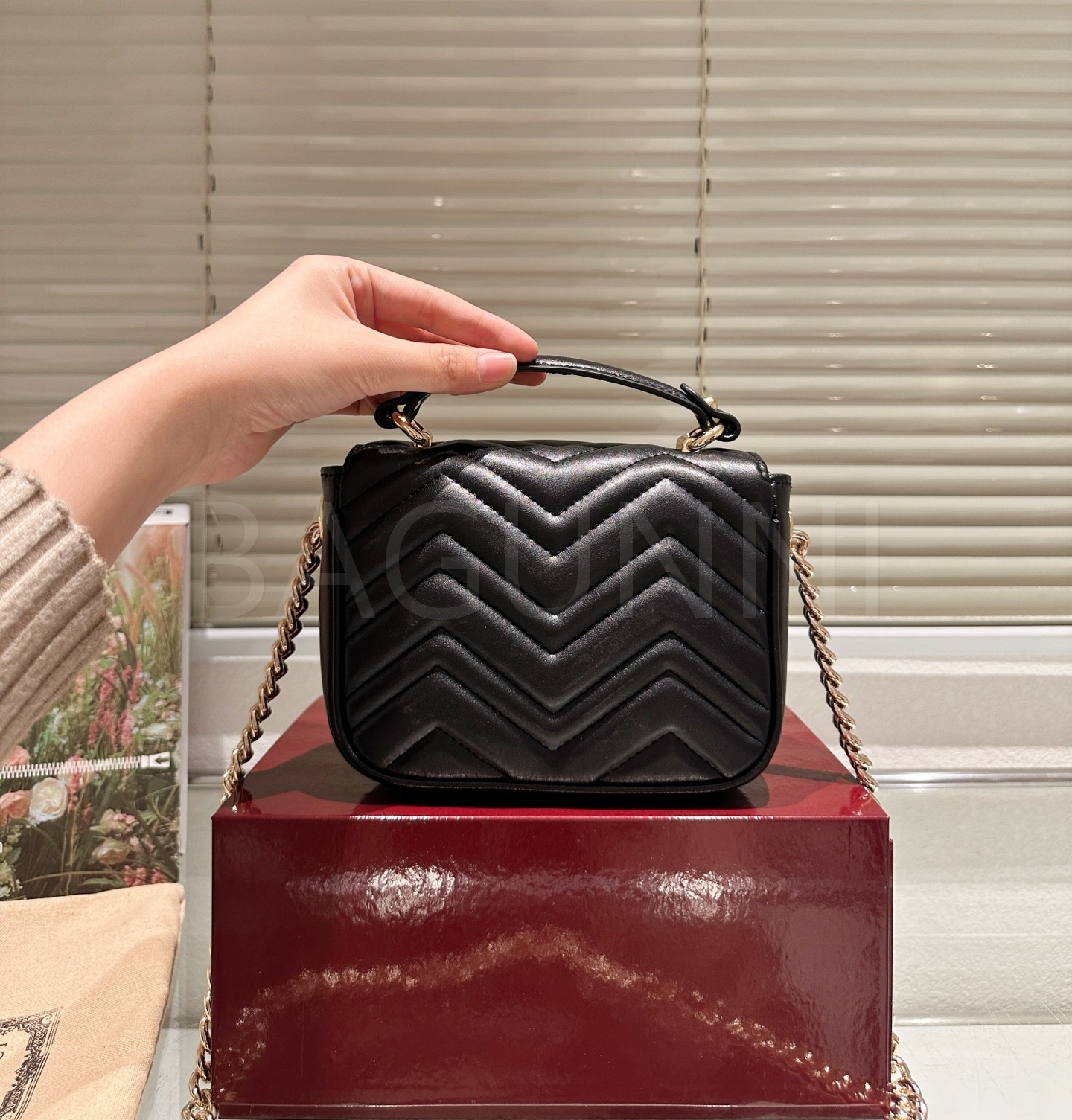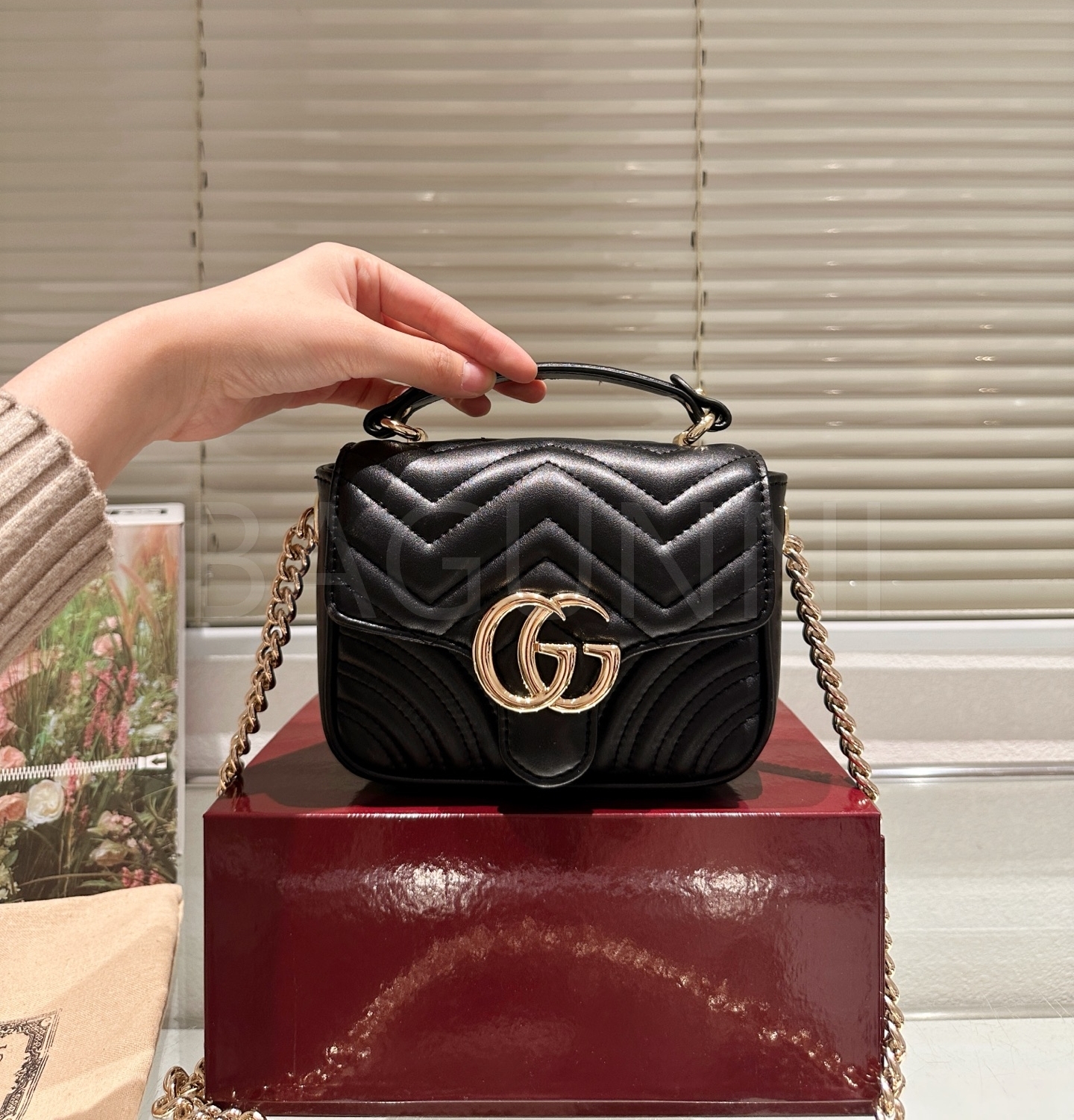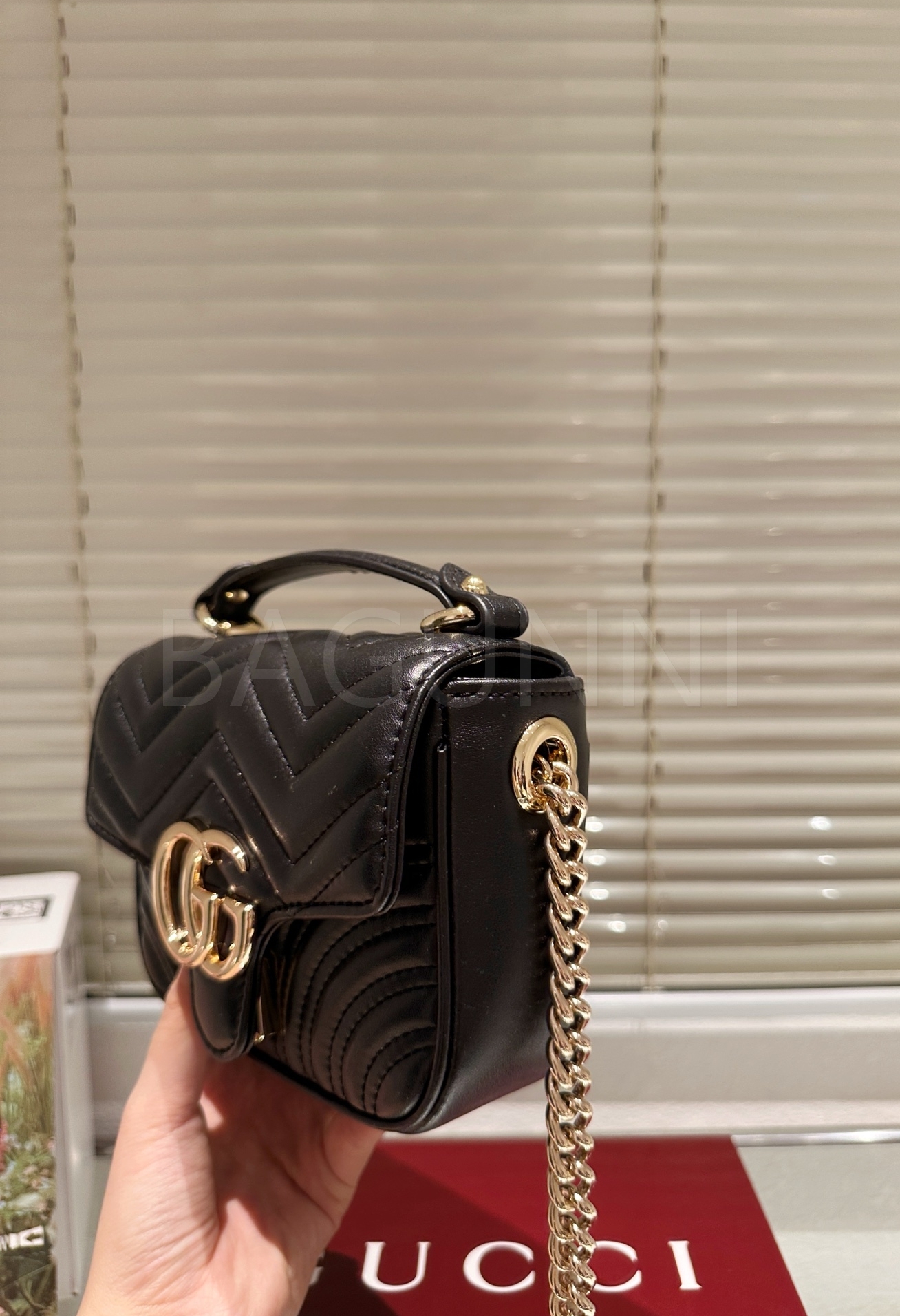 구찌 마몬트 숄더백입니다. 가죽 특유의 질감이 자연스럽게 살아 있으며 브랜드 특유의 분위기를 편하게 즐기기 좋습니다.