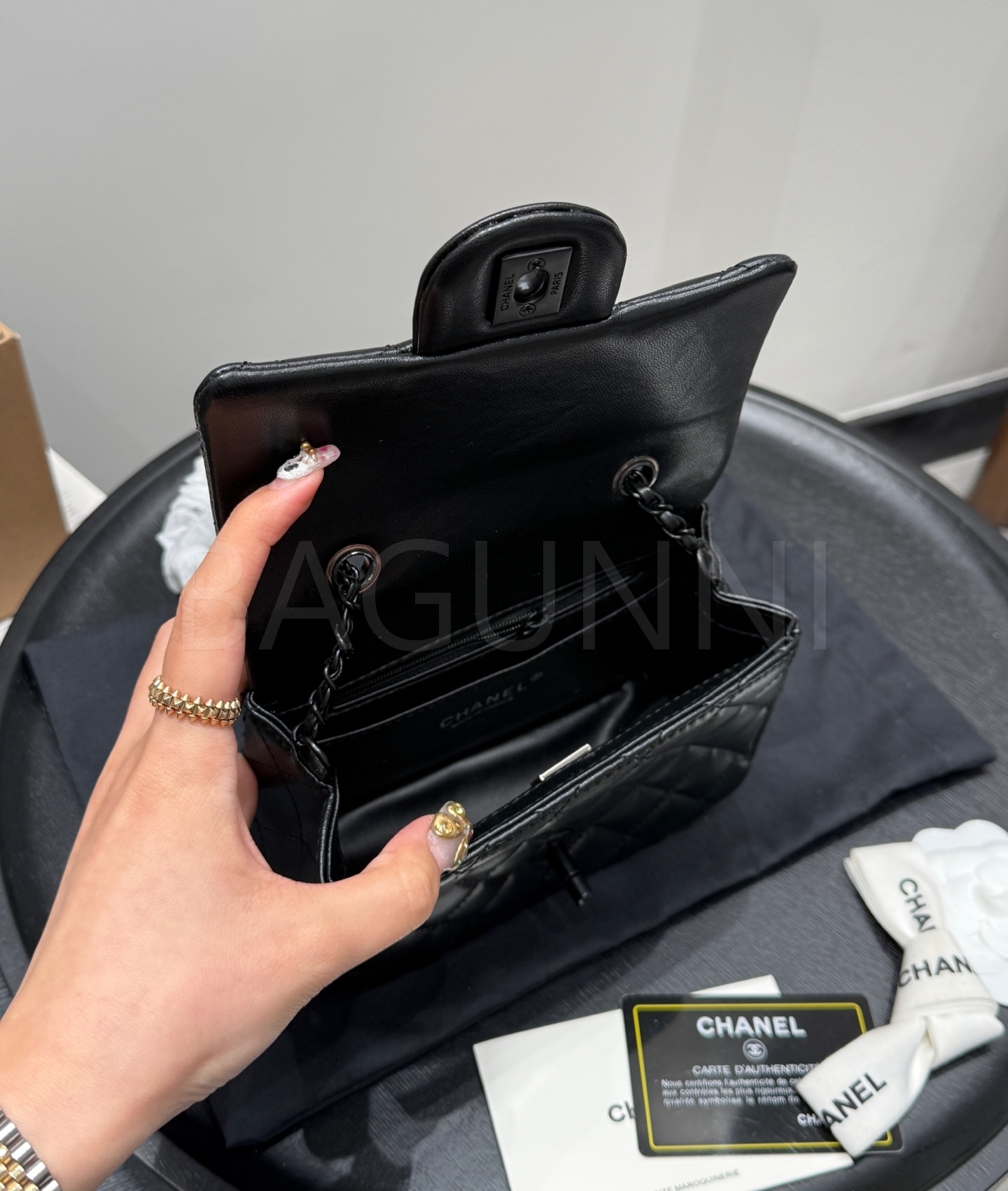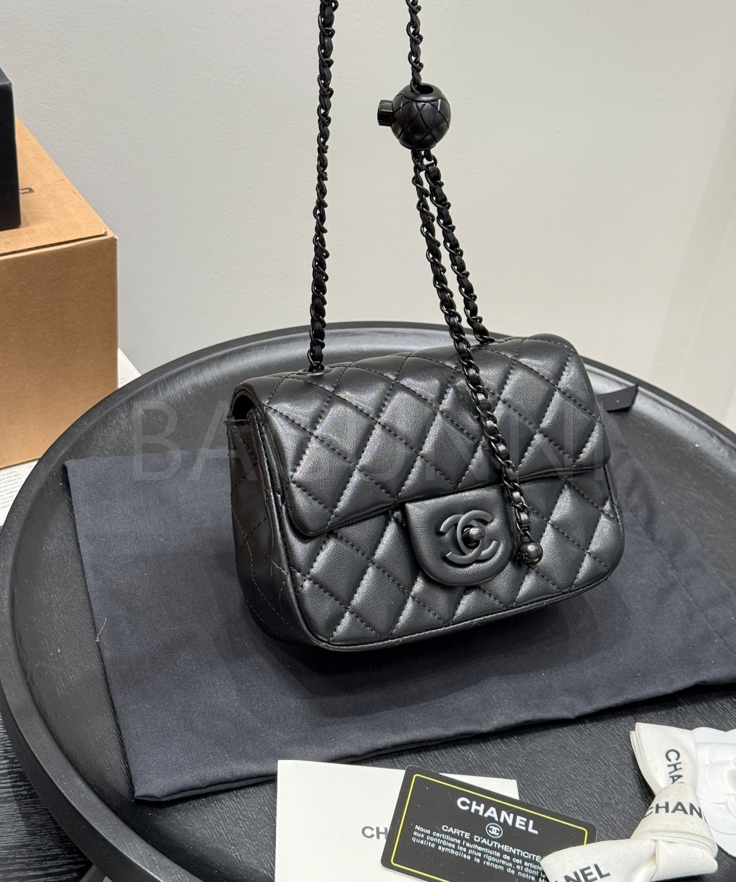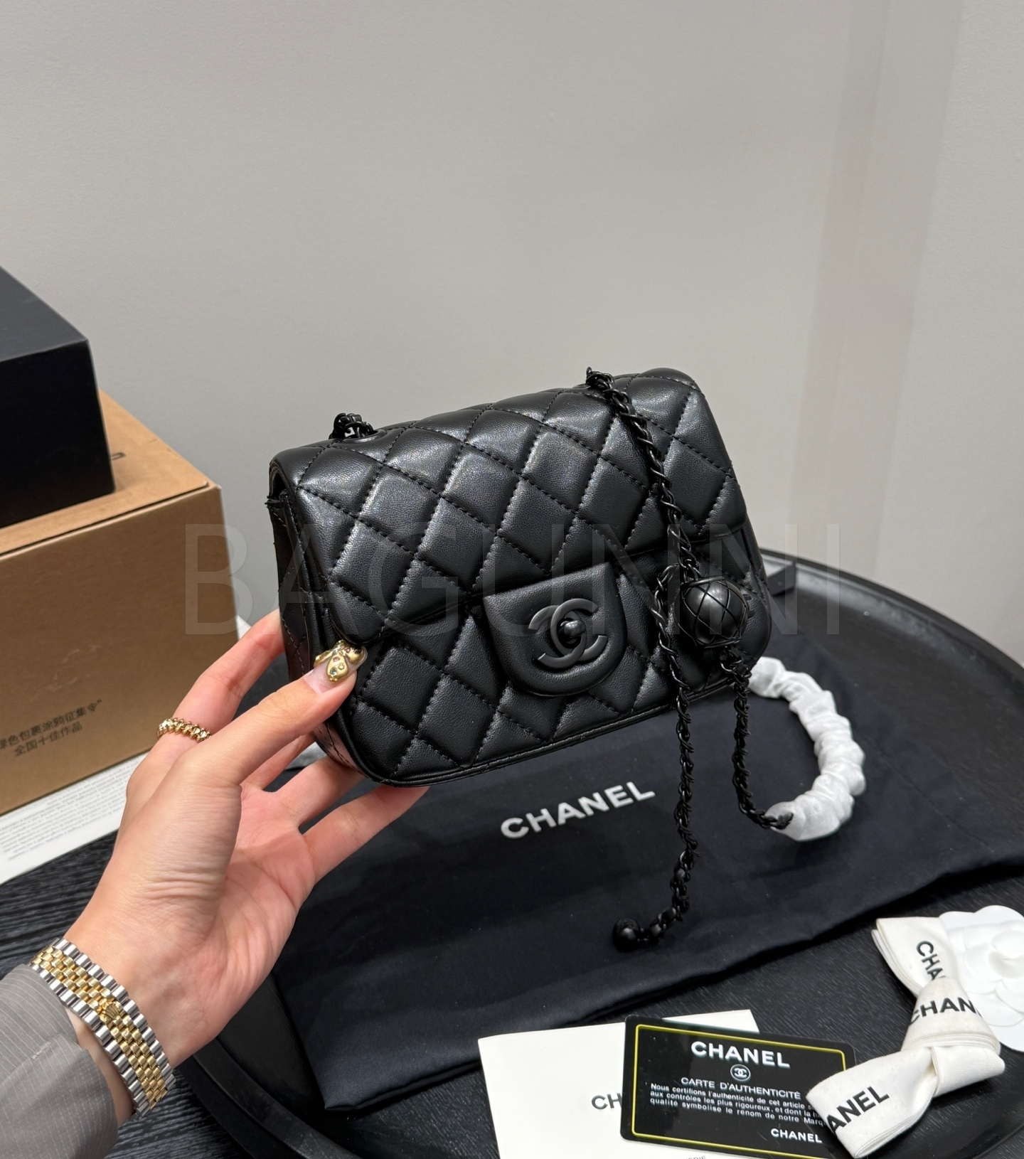 램스킨 특유의 매력이 돋보이는 샤넬 금볼 스퀘어 플랩 백입니다.