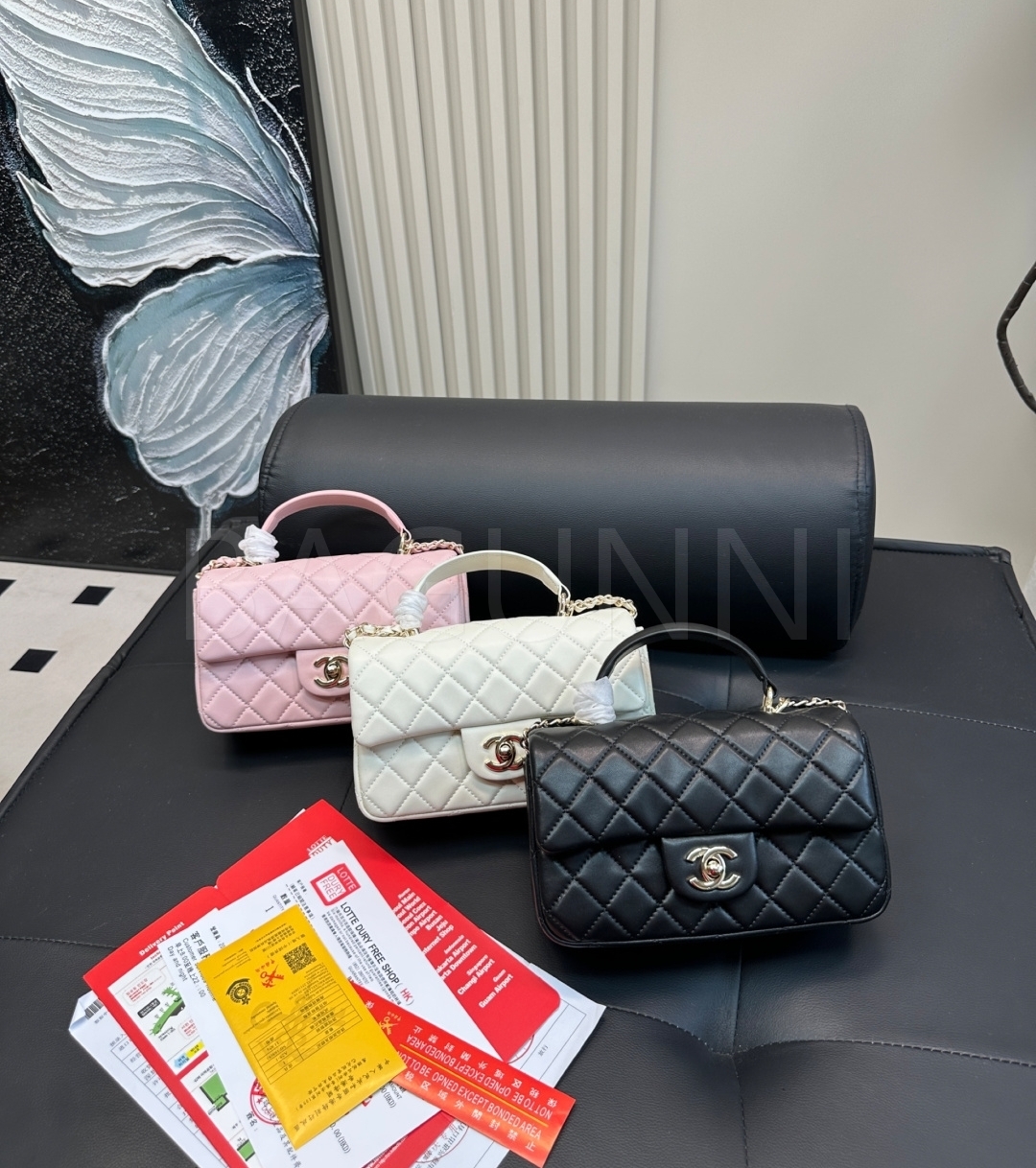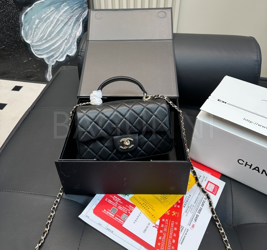 세련된 무드가 돋보이는 샤넬 탑핸들 스퀘어 플랩 백입니다.