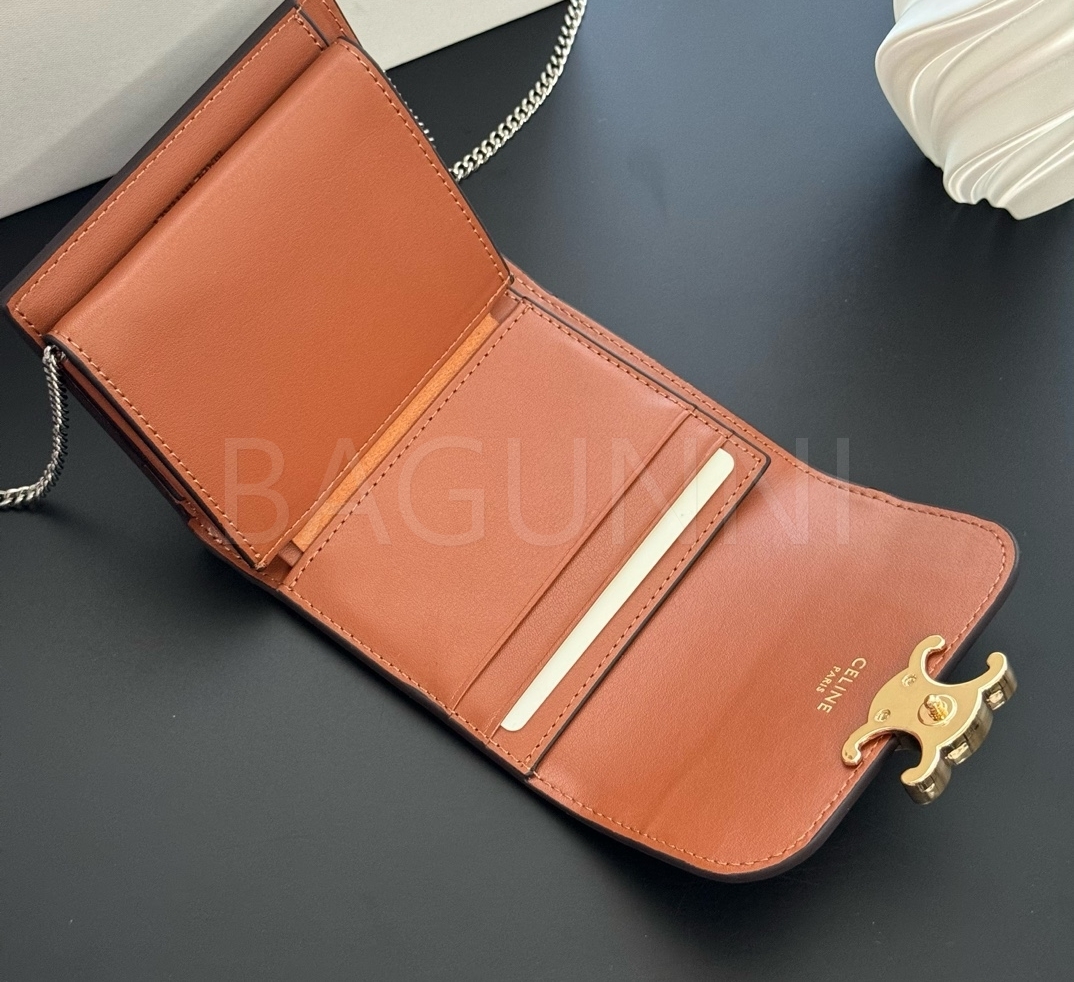 카프스킨의 질감이 돋보이는 셀린느 트리폴드 반지갑입니다.