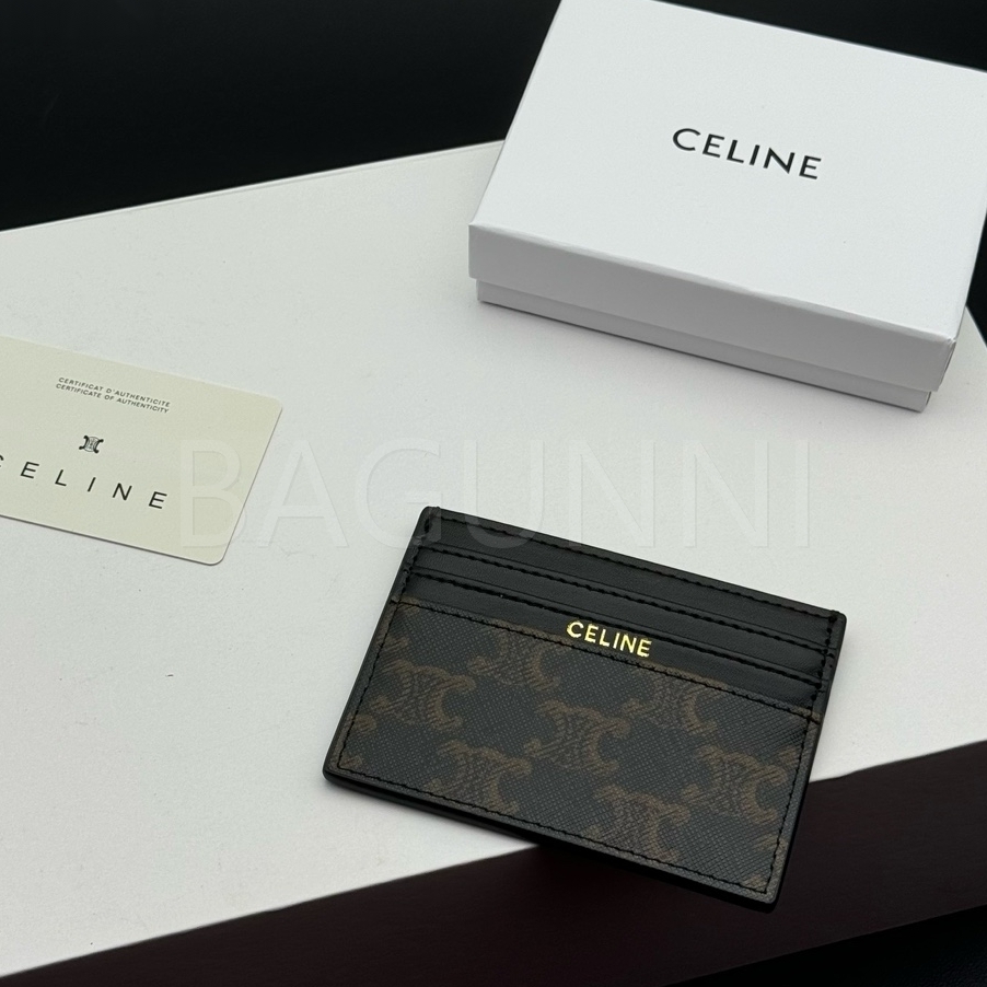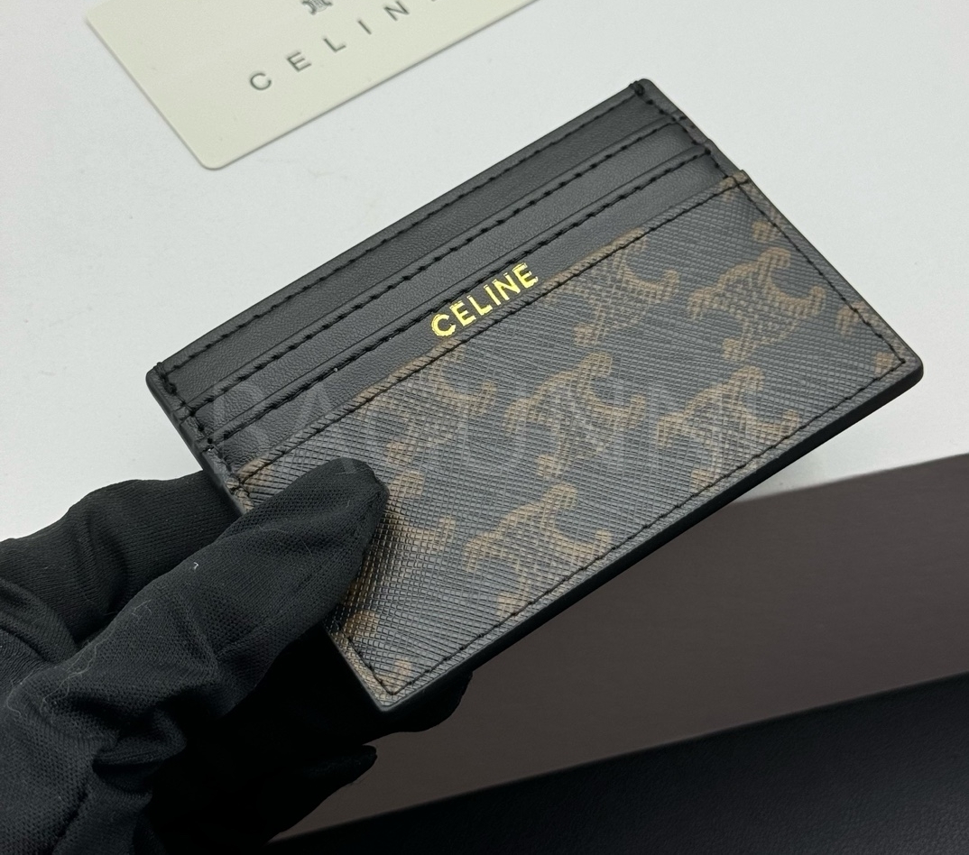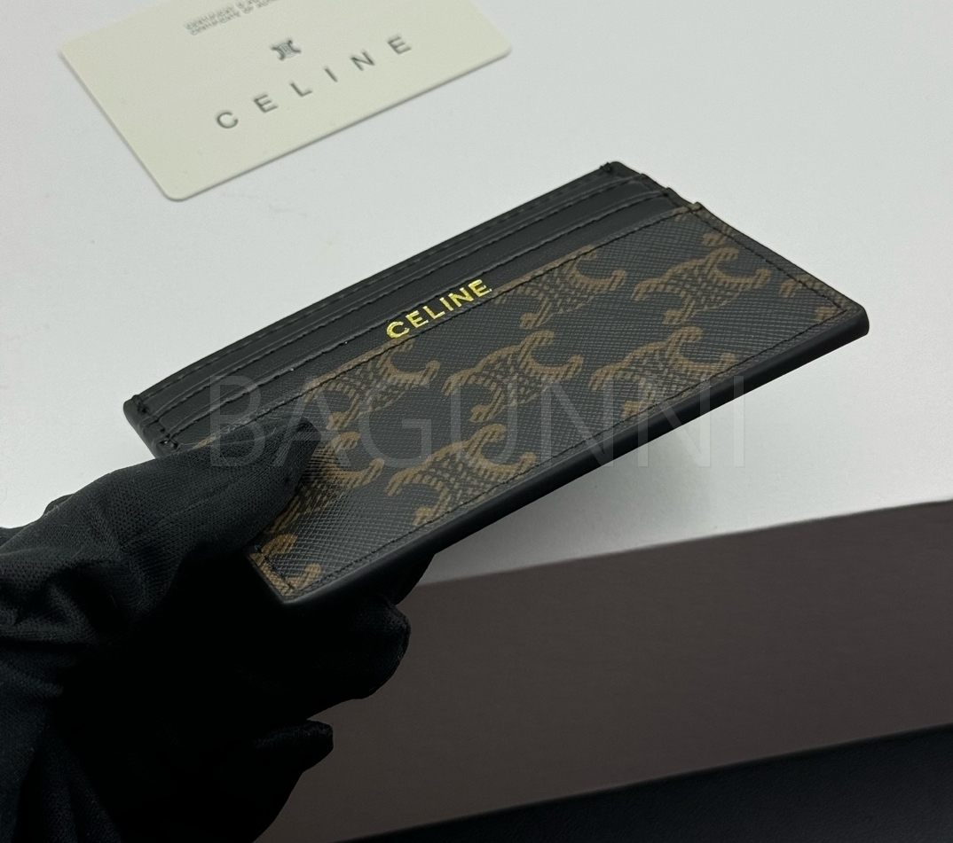 카프스킨의 질감이 돋보이는 셀린느 트리옹프 플랩 카드지갑입니다.