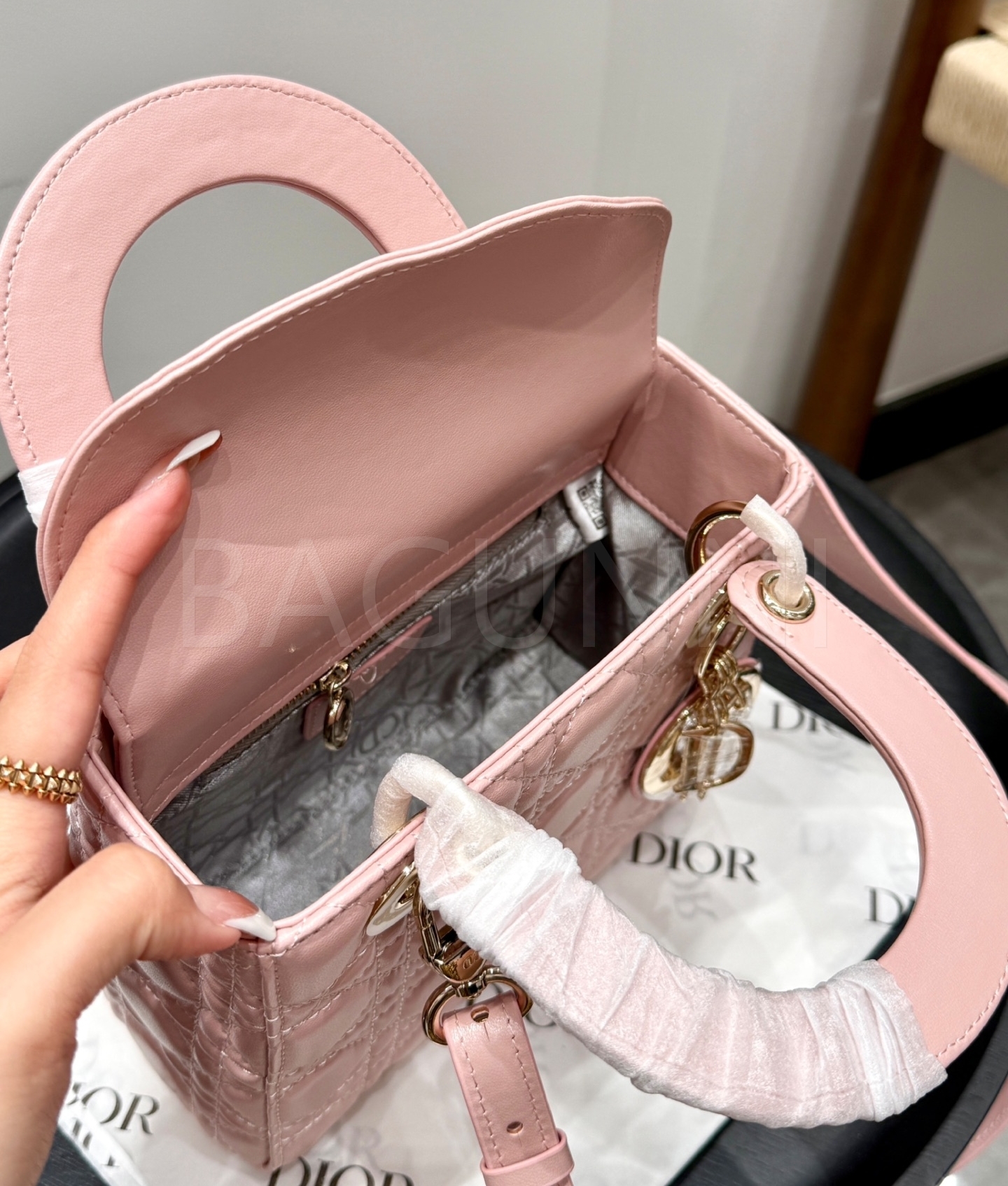 디올 레이디 디올 탑핸들백입니다. 램스킨 특유의 질감이 자연스럽게 살아 있으며 브랜드 특유의 분위기를 편하게 즐기기 좋습니다.