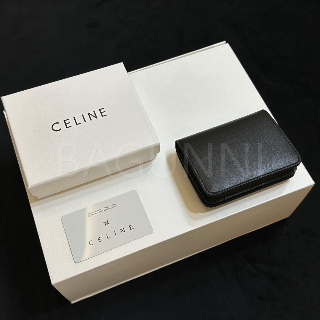 카프스킨의 질감이 돋보이는 셀린느 트리옹프 지퍼 카드지갑입니다.