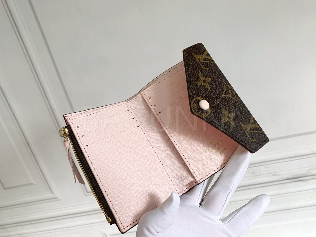 모노그램 캔버스의 질감이 돋보이는 루이비통 빅토린 반지갑입니다.
