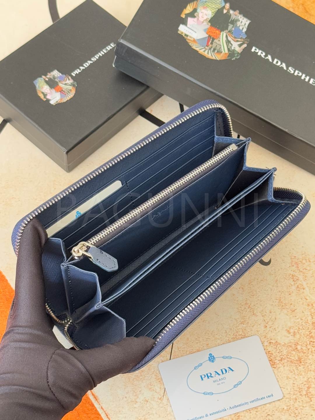 사피아노 질감이 깔끔하게 살아있는 프라다 사피아노 지퍼 장지갑입니다.