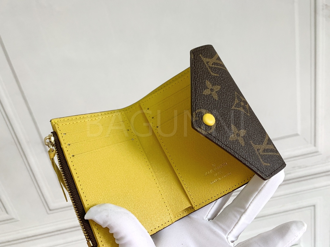 모노그램 캔버스의 질감이 돋보이는 루이비통 빅토린 반지갑입니다.