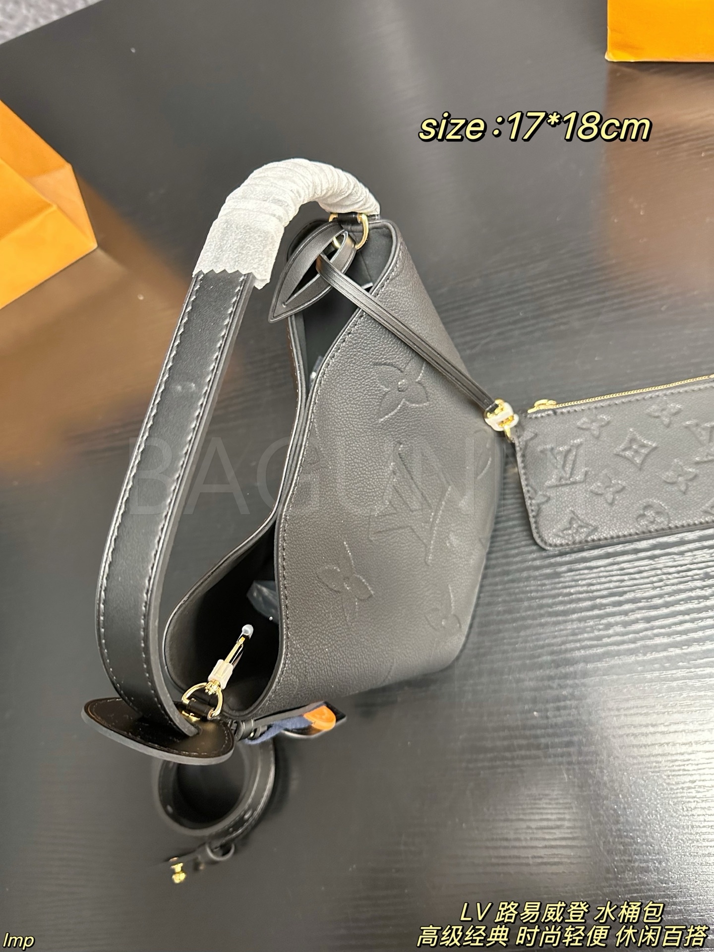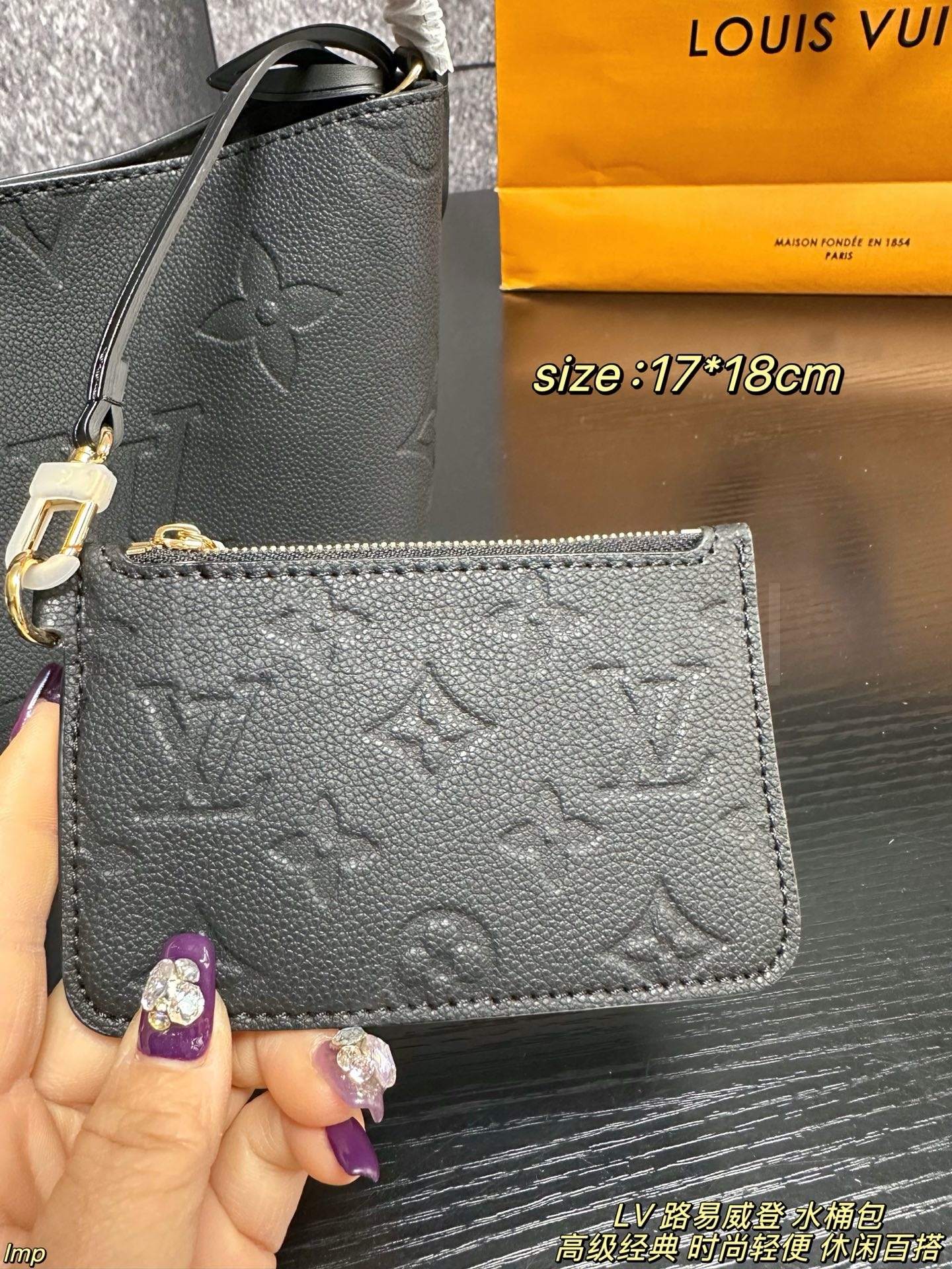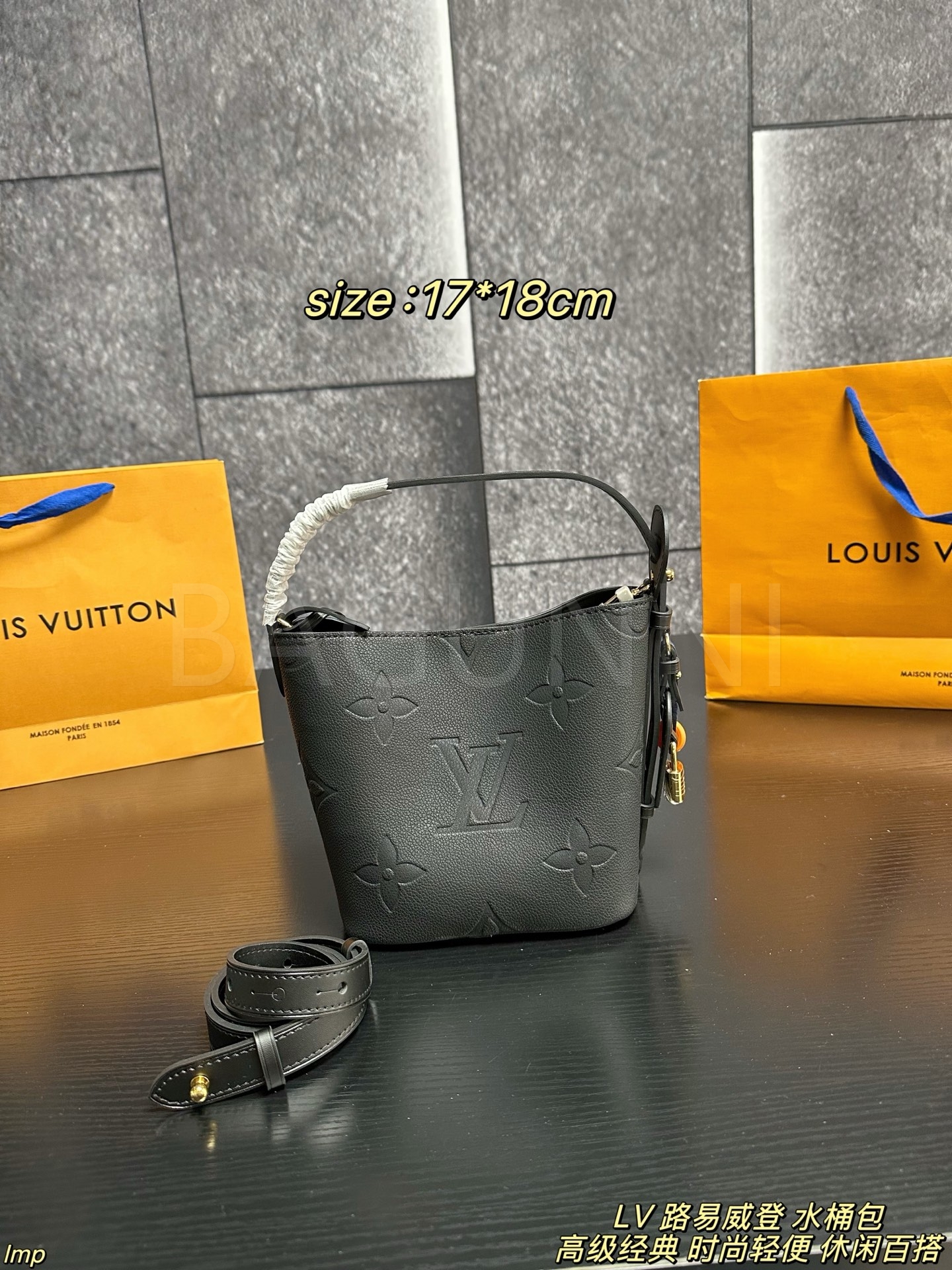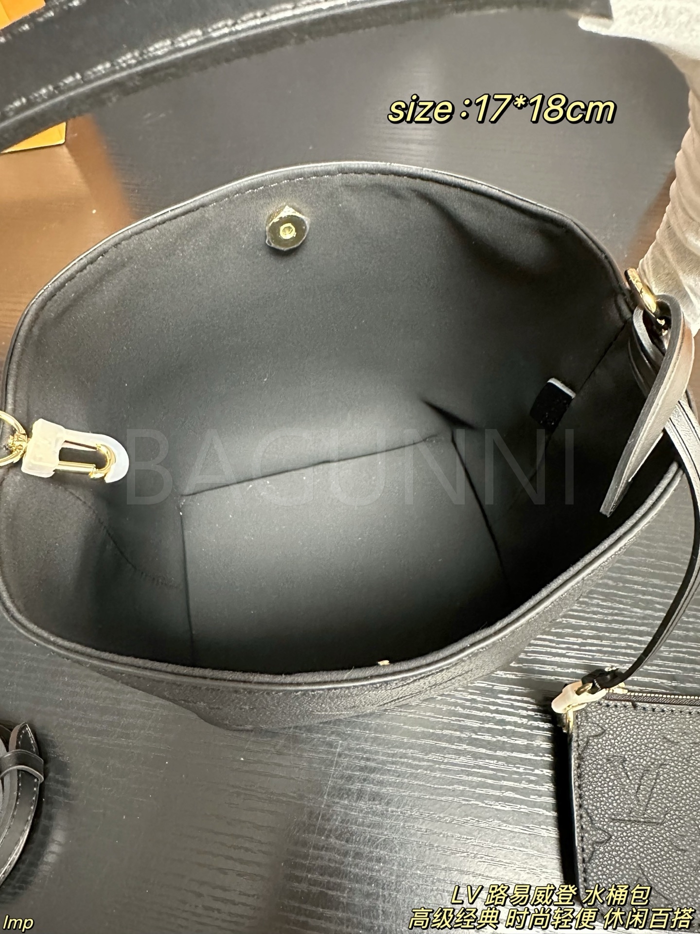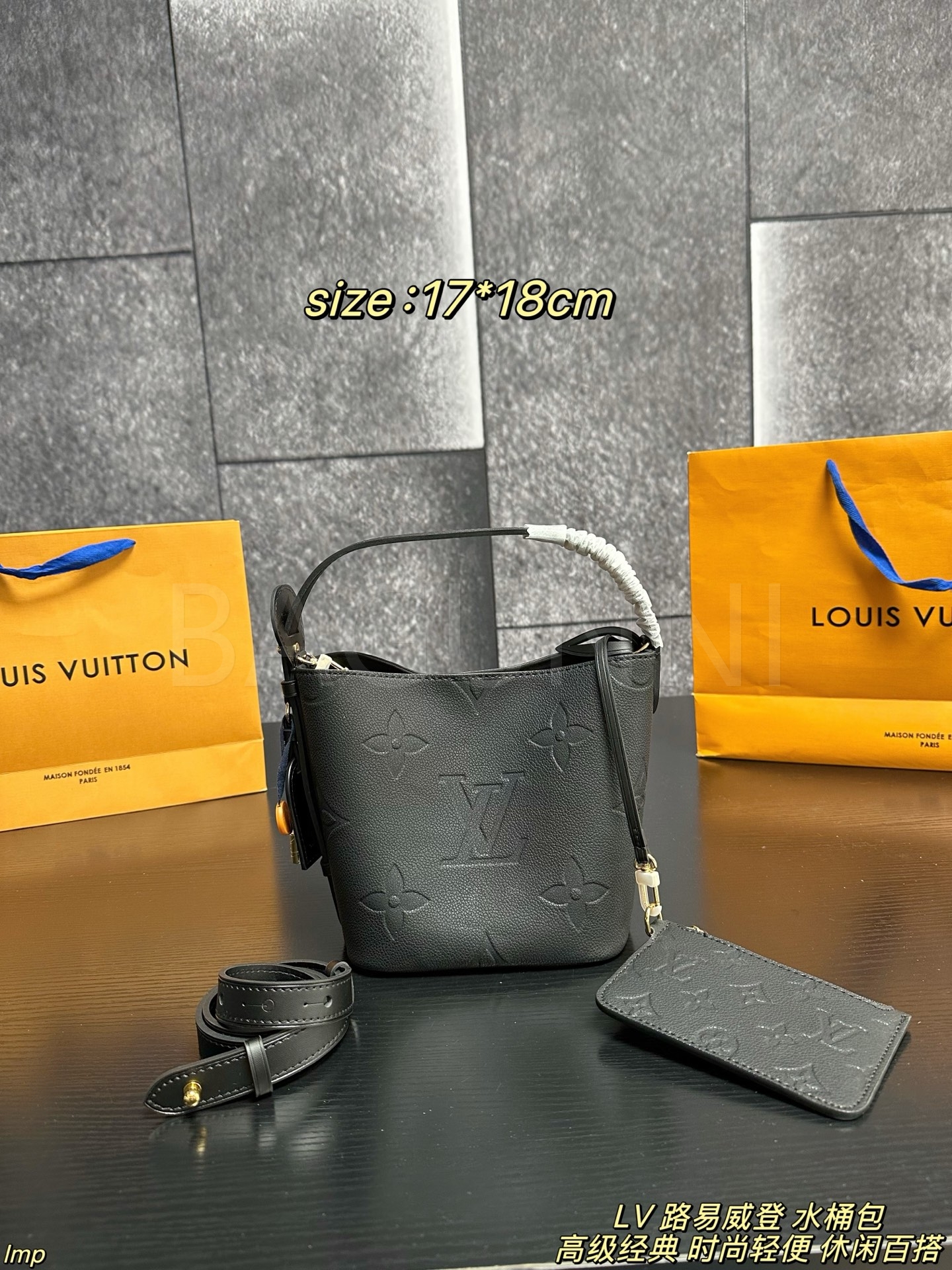 클래식한 캔버스 무드가 돋보이는 루이비통 노에 버킷 백입니다.
