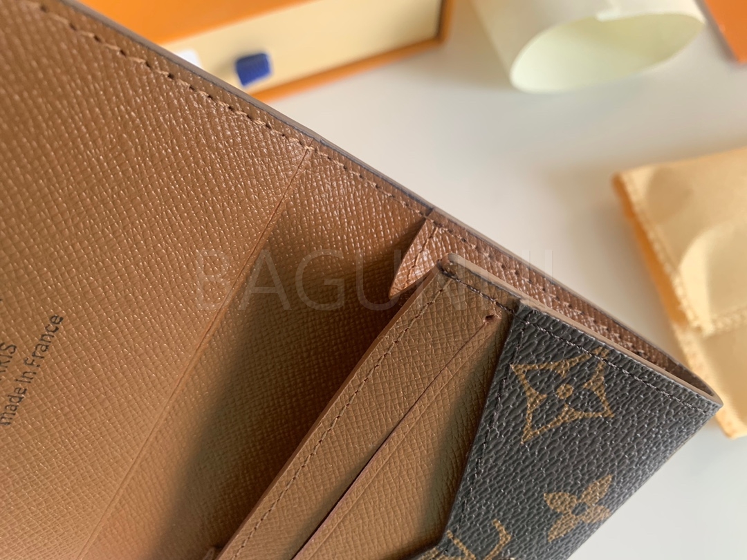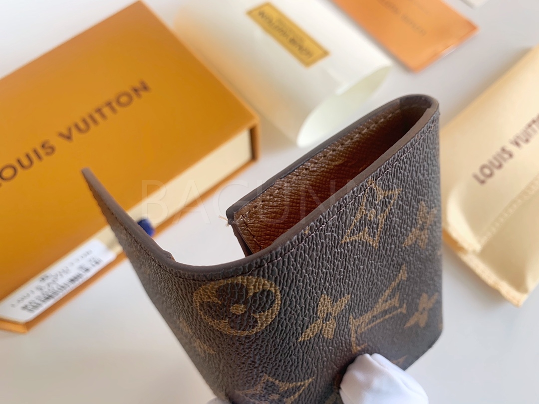 모노그램 캔버스의 질감이 돋보이는 루이비통 지갑입니다.