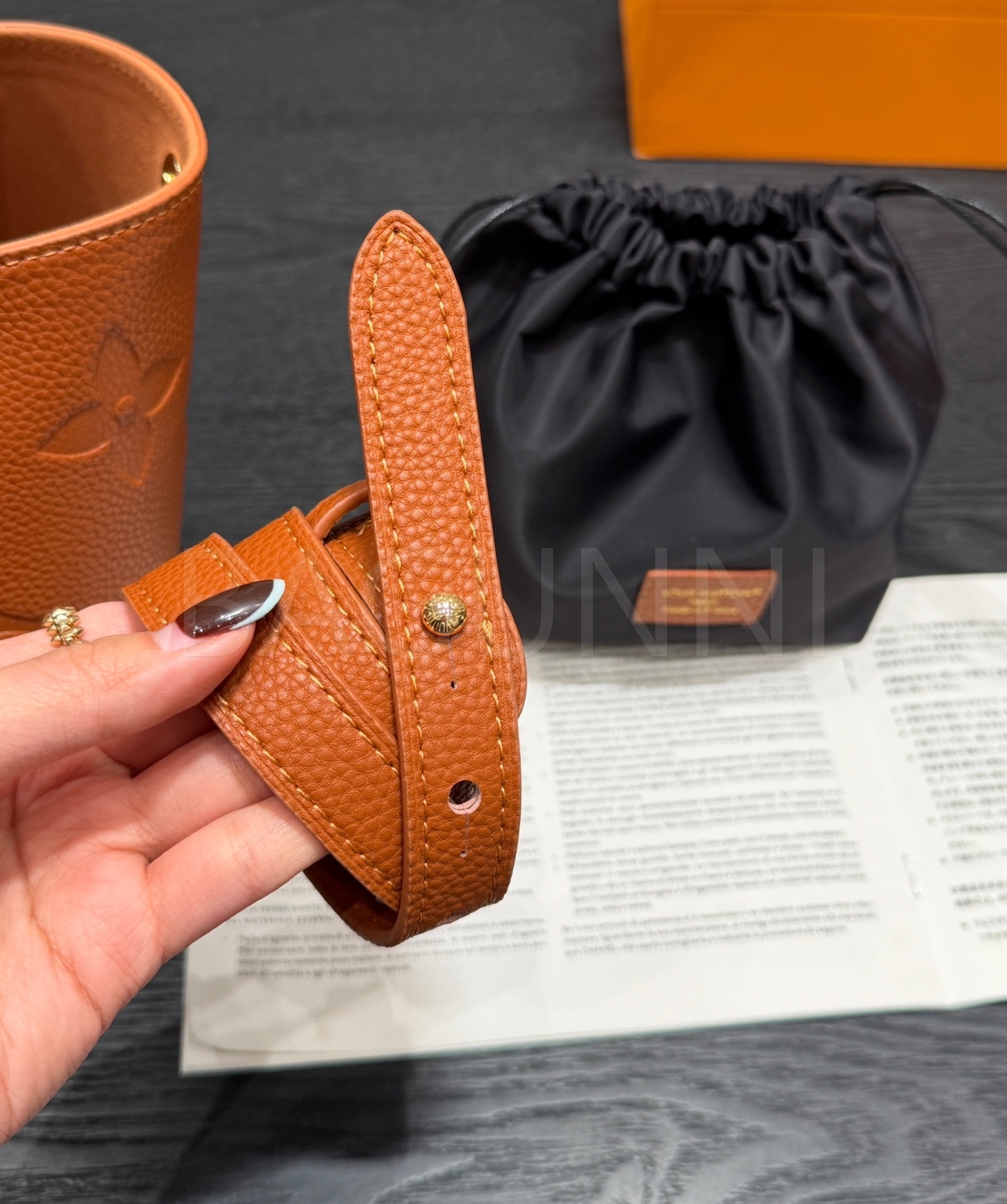- 가죽 제품의 경우 소재 특성상 자연스러운 주름, 눌림, 스크래치 등이 발생할 수 있으며, 이는 사용 과정에서도 나타나는 부분으로 불량이 아닙니다.