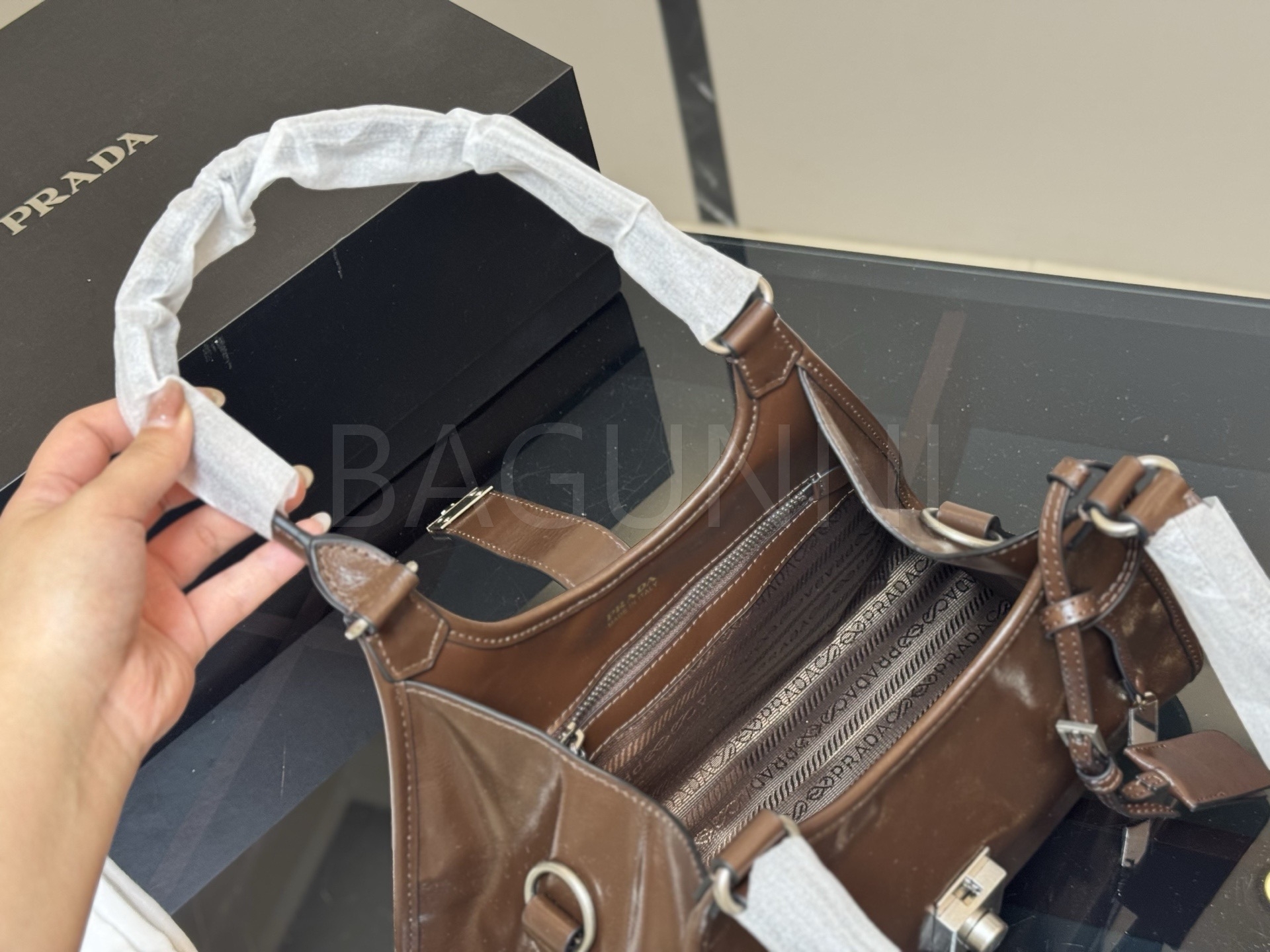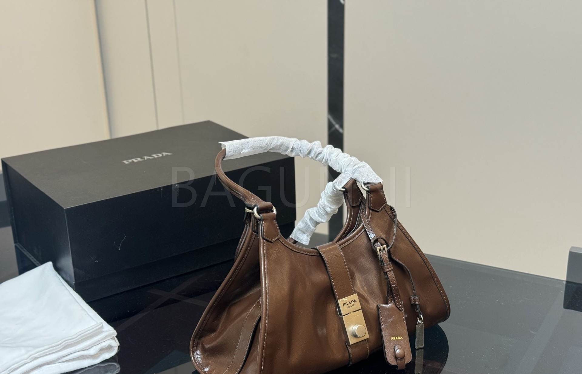 프라다 호보 백은 세련된 실루엣을 담은 아이템입니다.