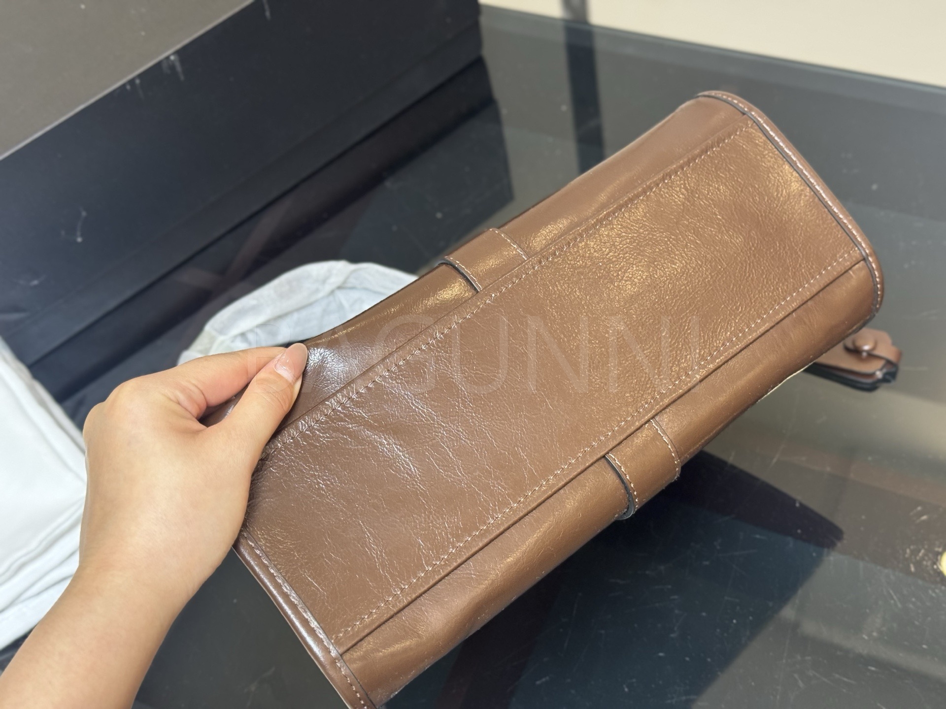 - 가죽 제품의 경우 소재 특성상 자연스러운 주름, 눌림, 스크래치 등이 발생할 수 있으며, 이는 사용 과정에서도 나타나는 부분으로 불량이 아닙니다.