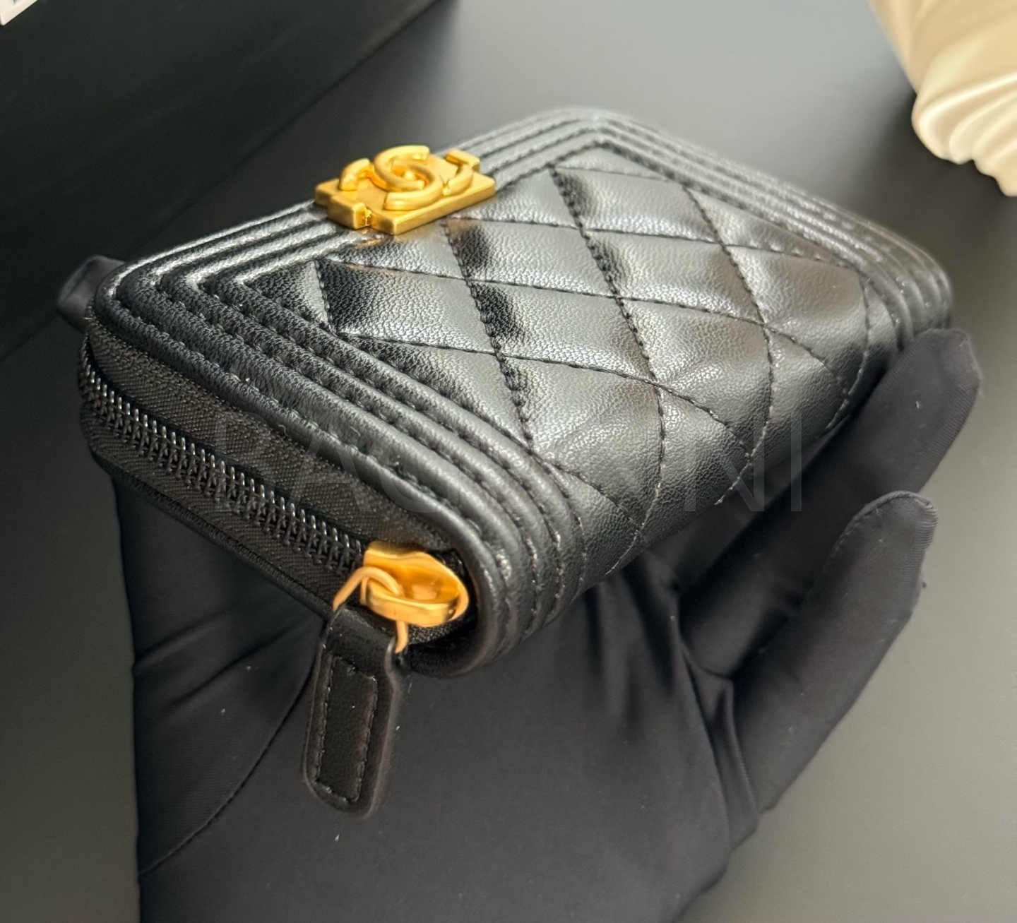 샤넬 특유의 무드가 자연스럽게 살아있는 보이 카드지갑입니다.