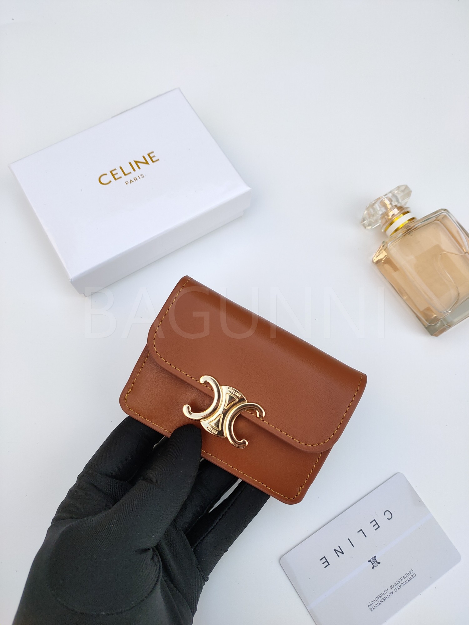 카프스킨의 질감이 돋보이는 셀린느 트리옹프 플랩 카드지갑입니다.