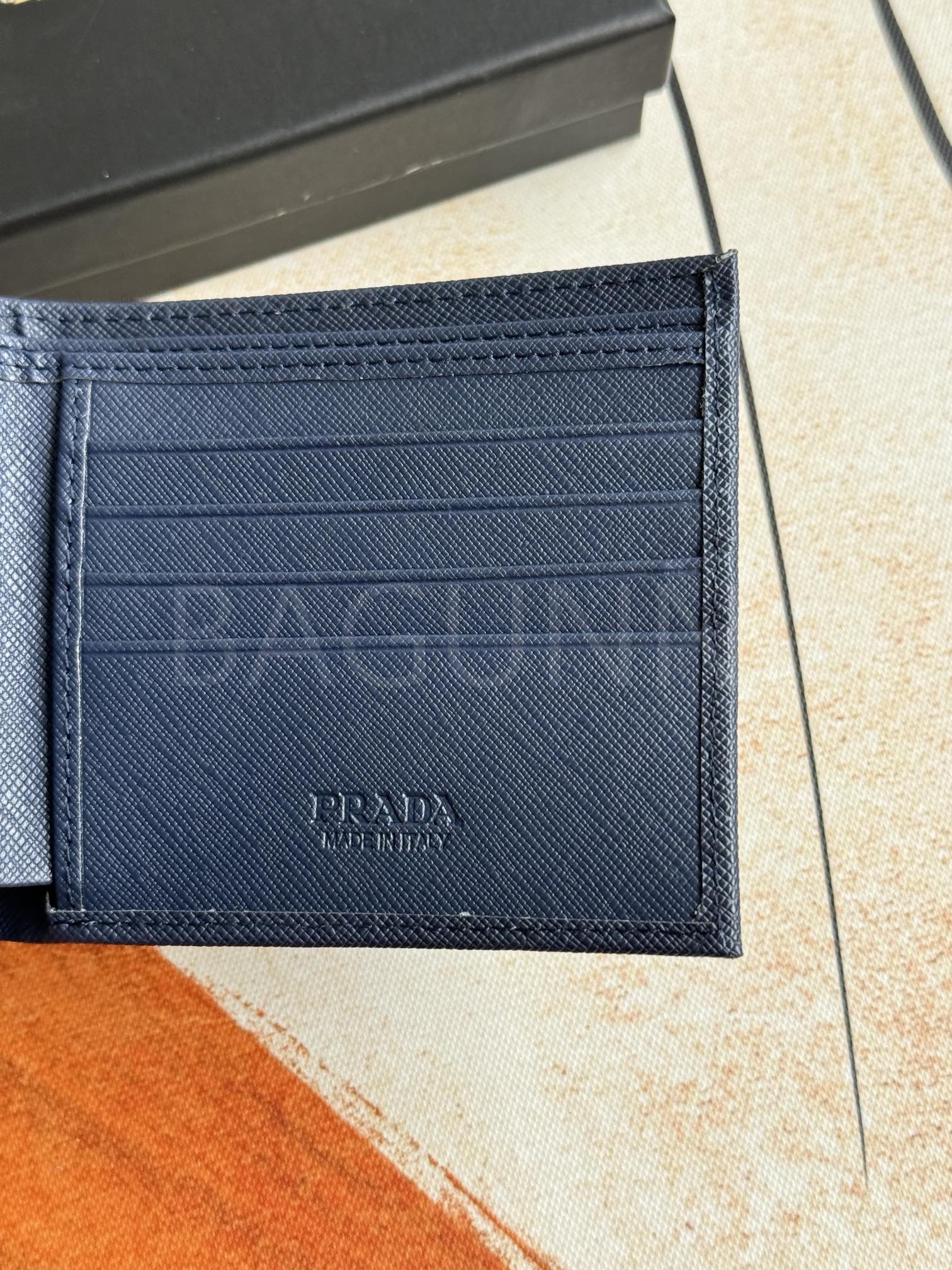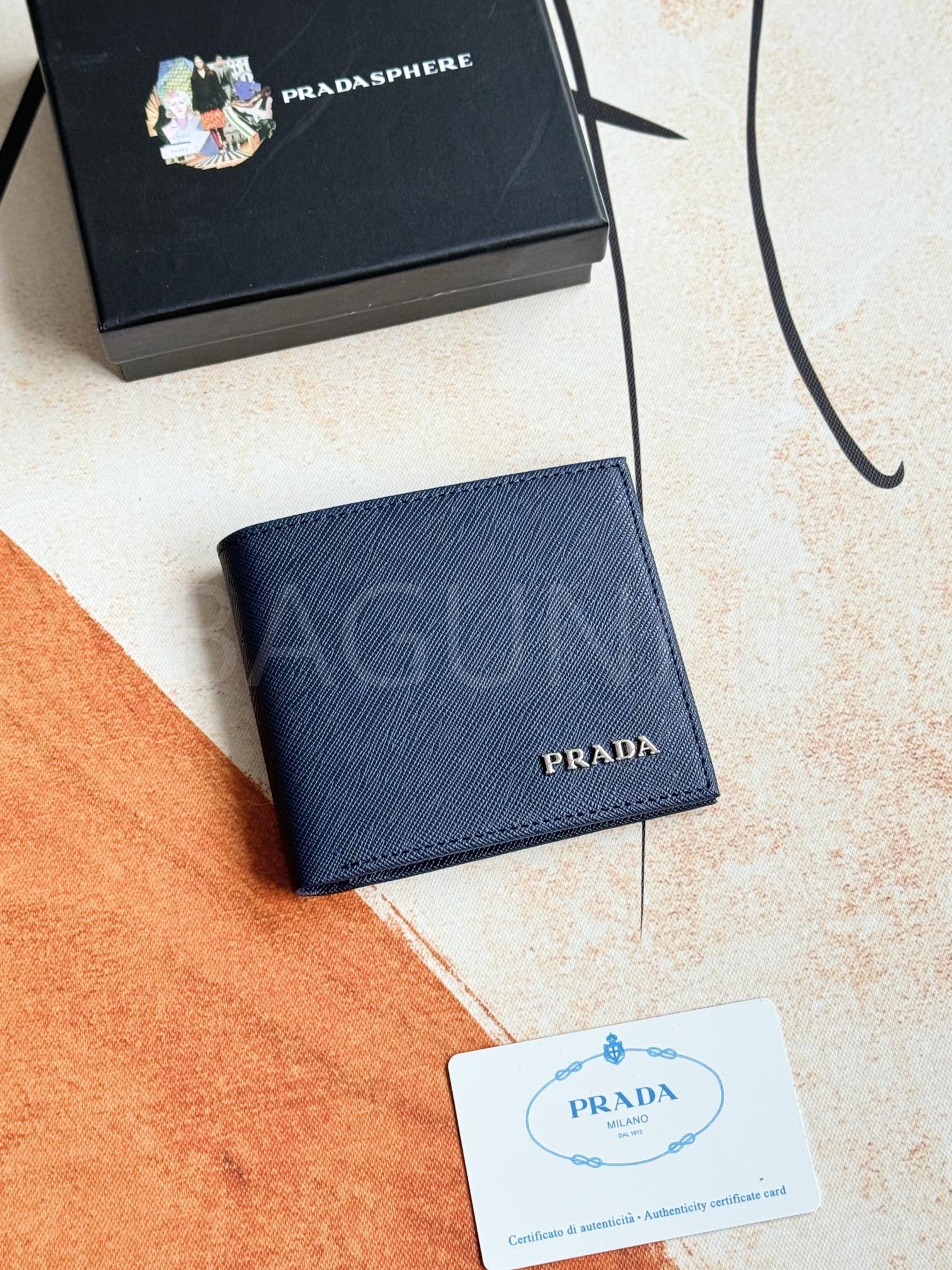 카프스킨의 질감이 돋보이는 프라다 지갑입니다.