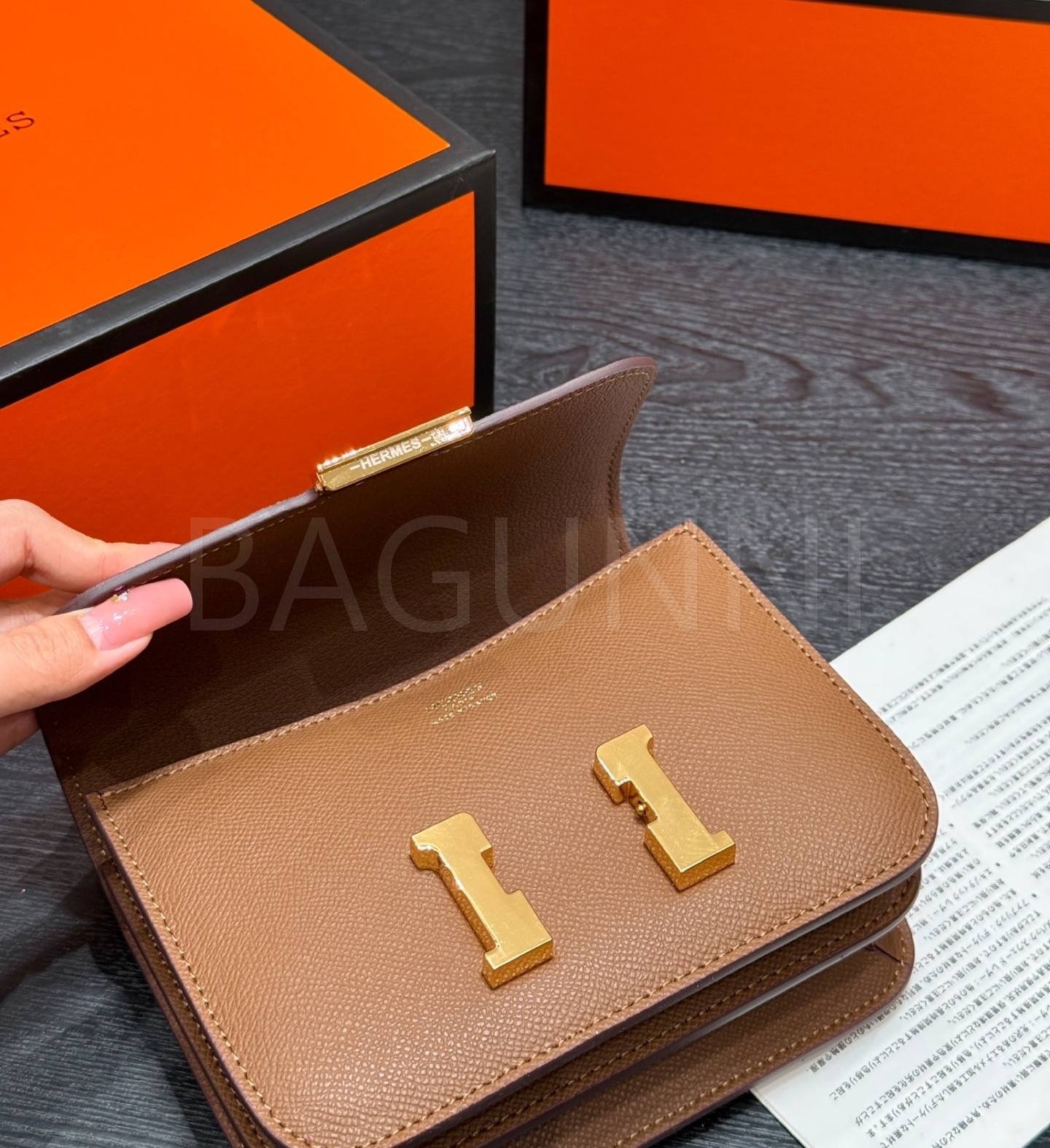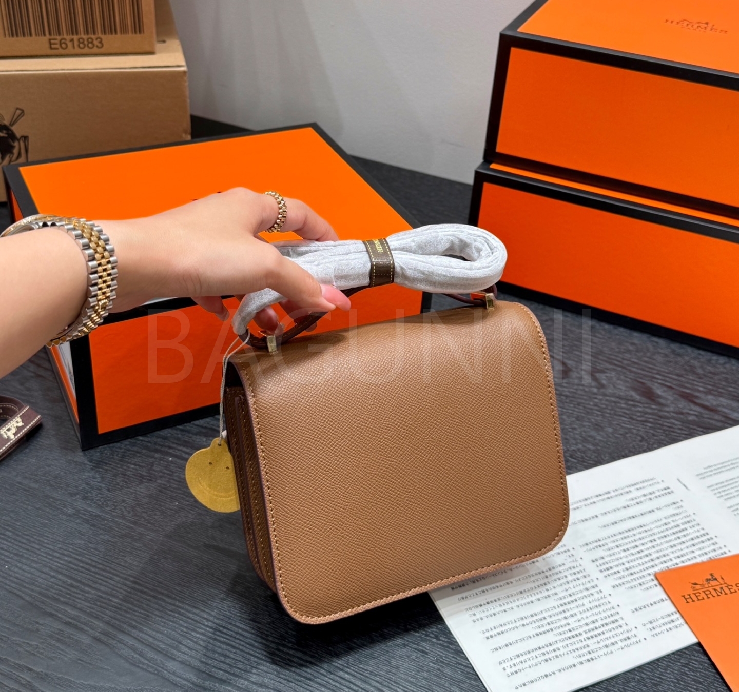 에르메스 콘스탄스 숄더백입니다. 가죽 특유의 질감이 자연스럽게 살아 있으며 브랜드 특유의 분위기를 편하게 즐기기 좋습니다.