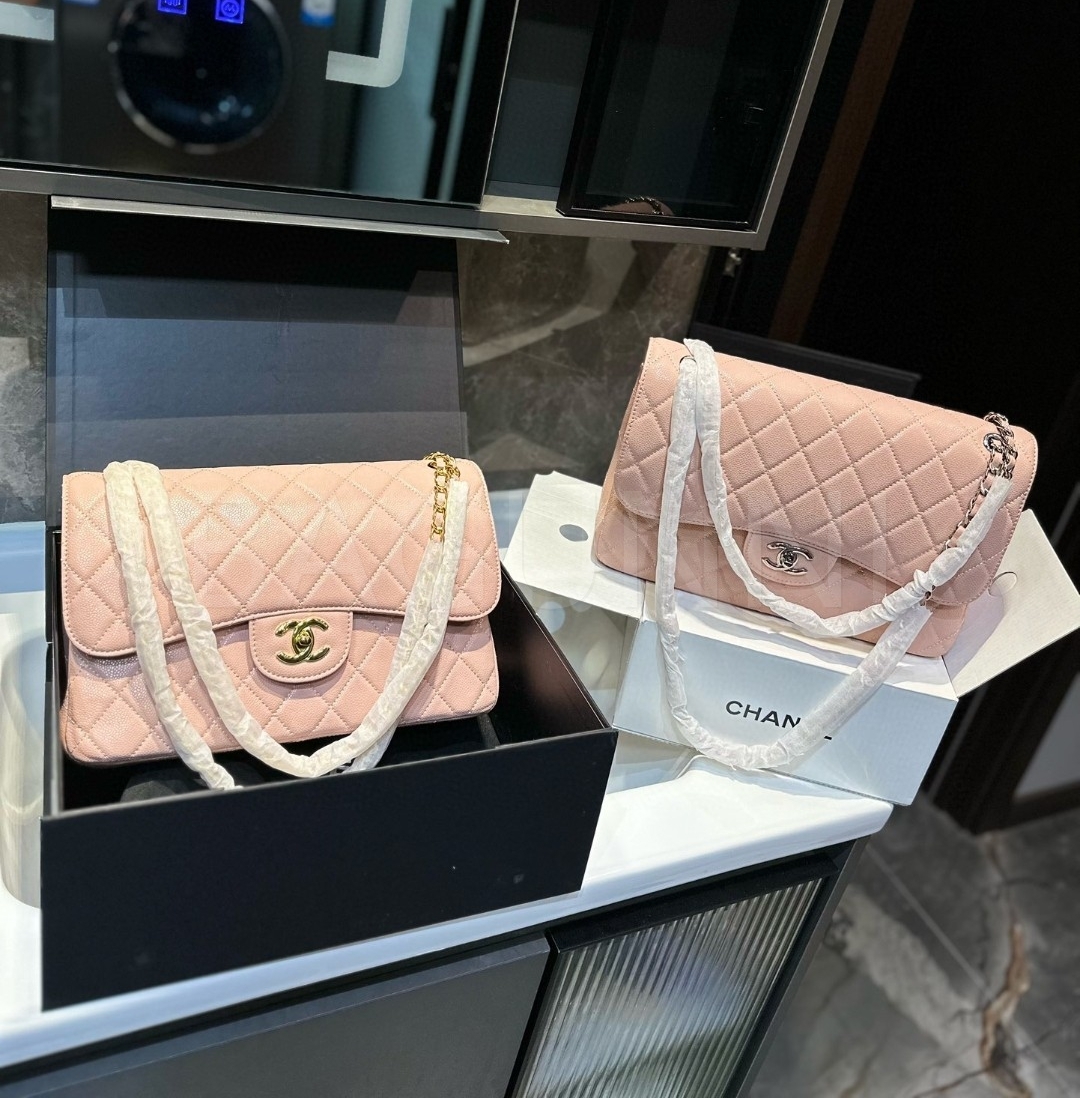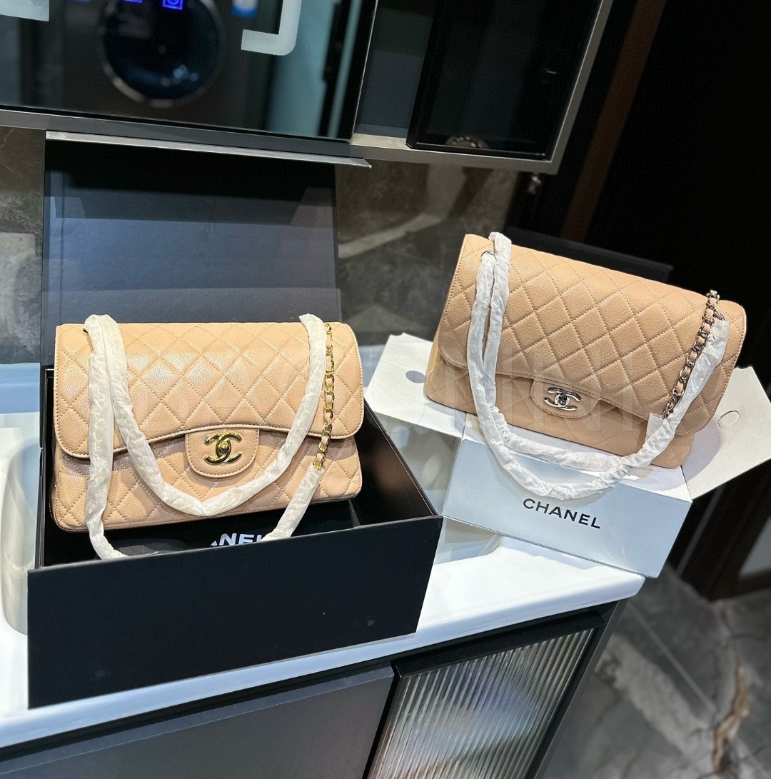 캐비어 가죽 특유의 매력이 돋보이는 샤넬 클래식 플랩 백입니다.