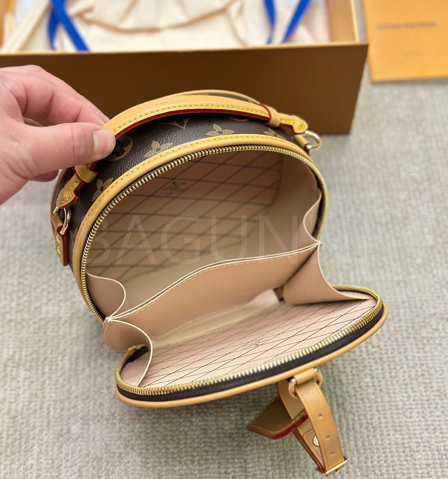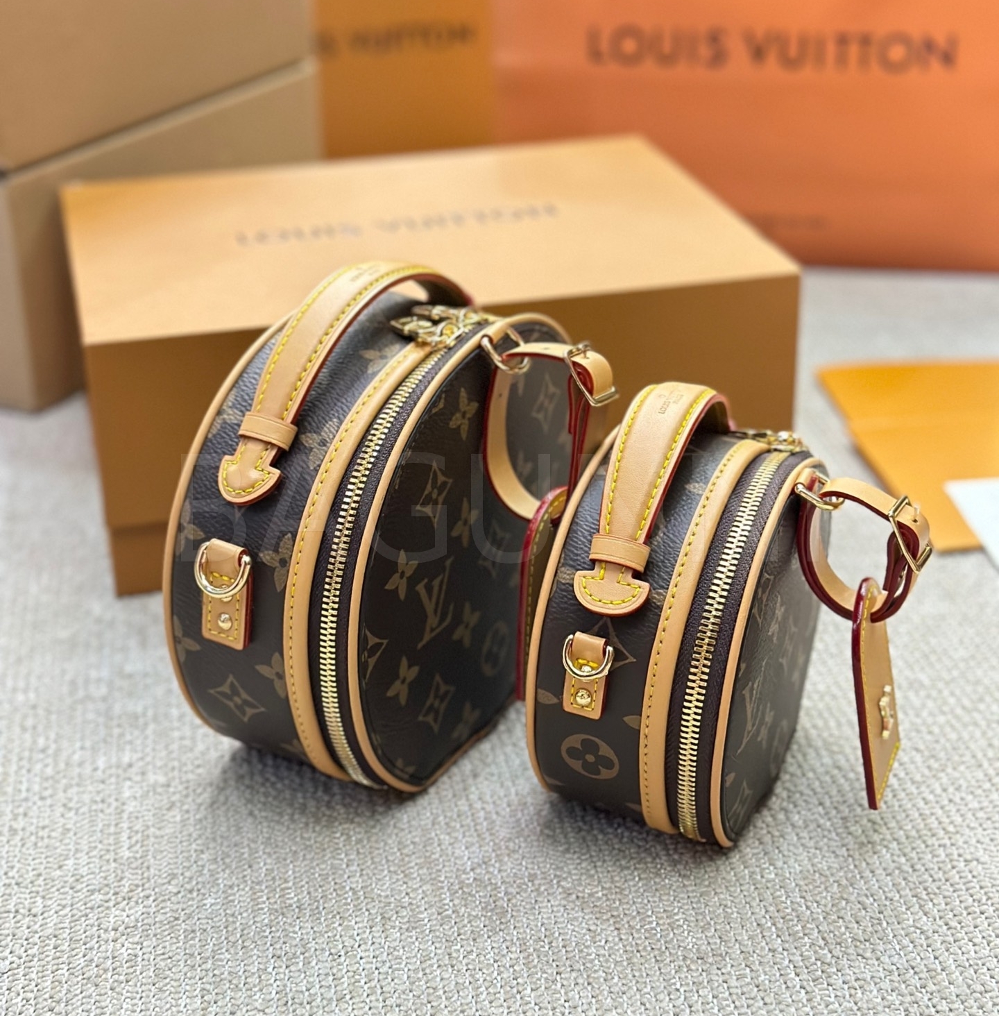 클래식한 캔버스 무드가 돋보이는 루이비통 원형 숄더백입니다.