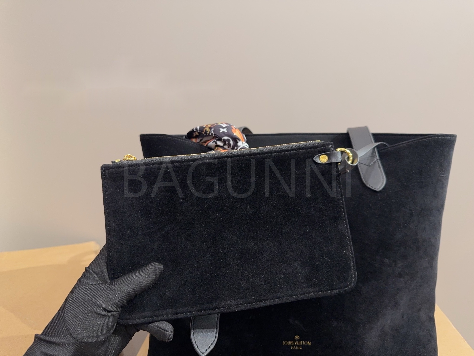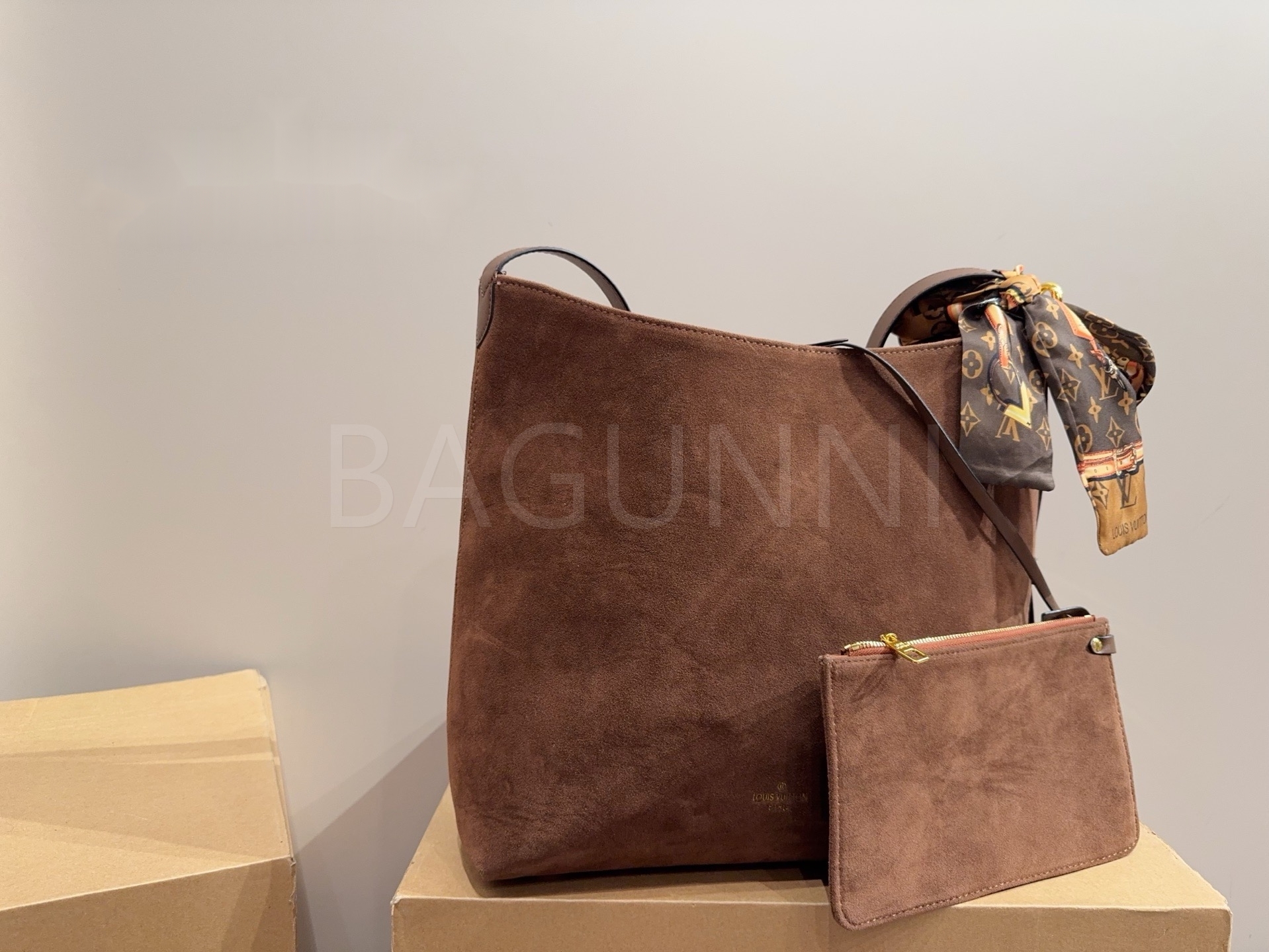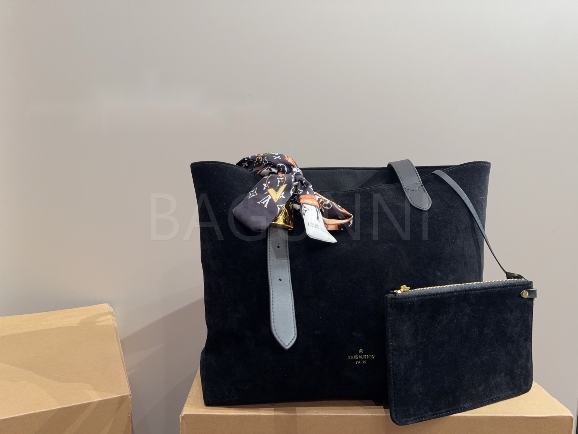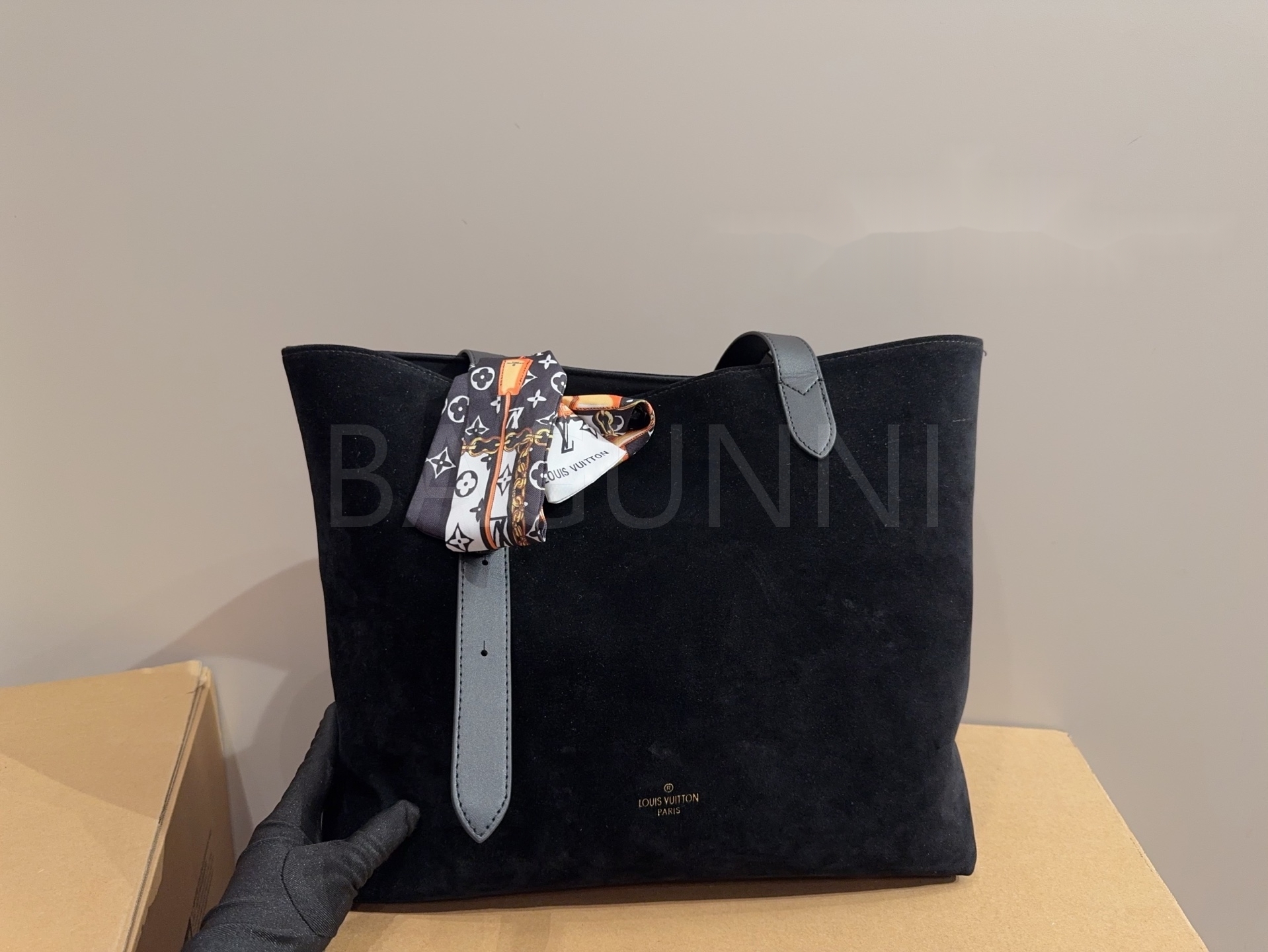 스웨이드 소재의 매력이 자연스럽게 살아 있는 루이비통 토트백입니다.