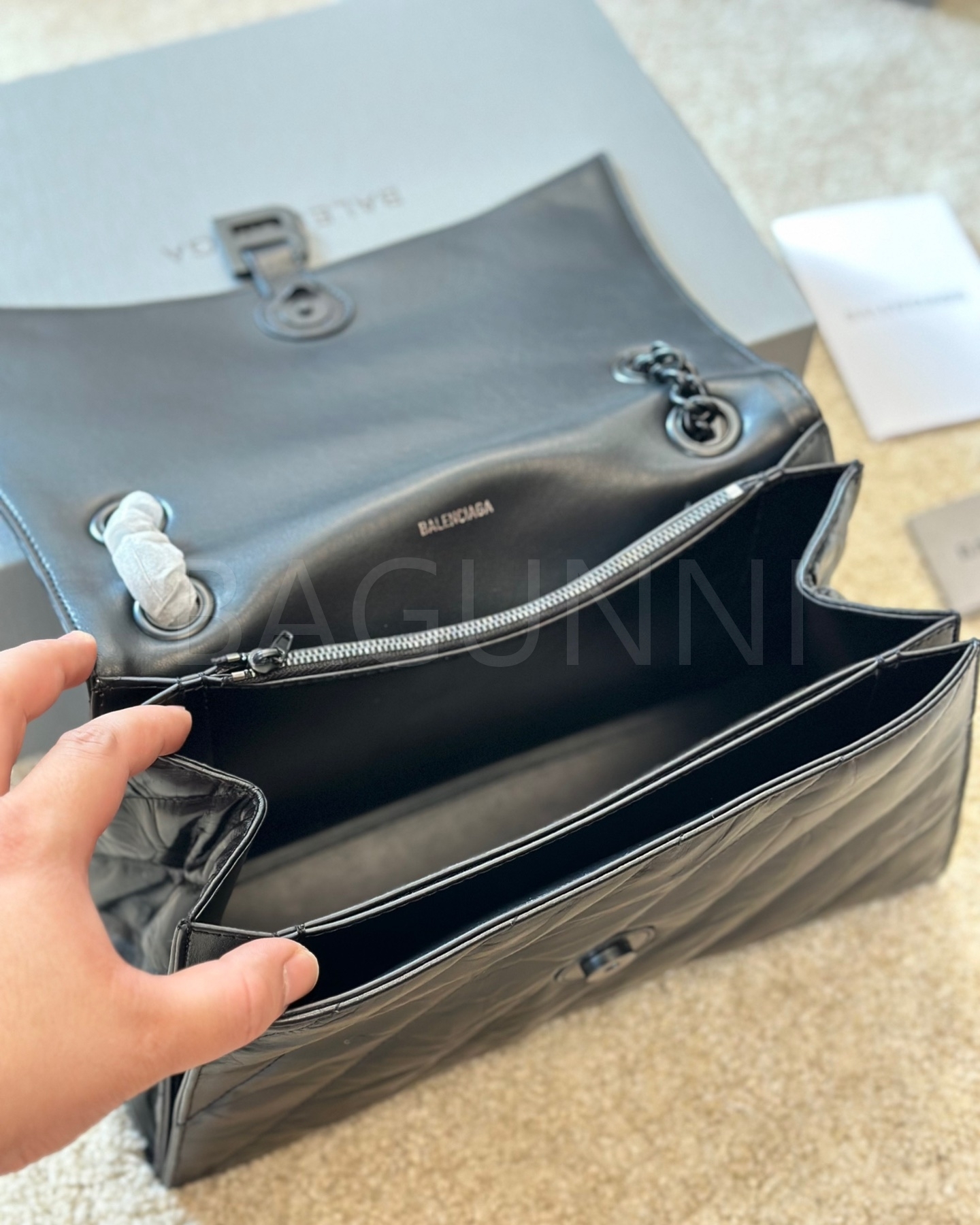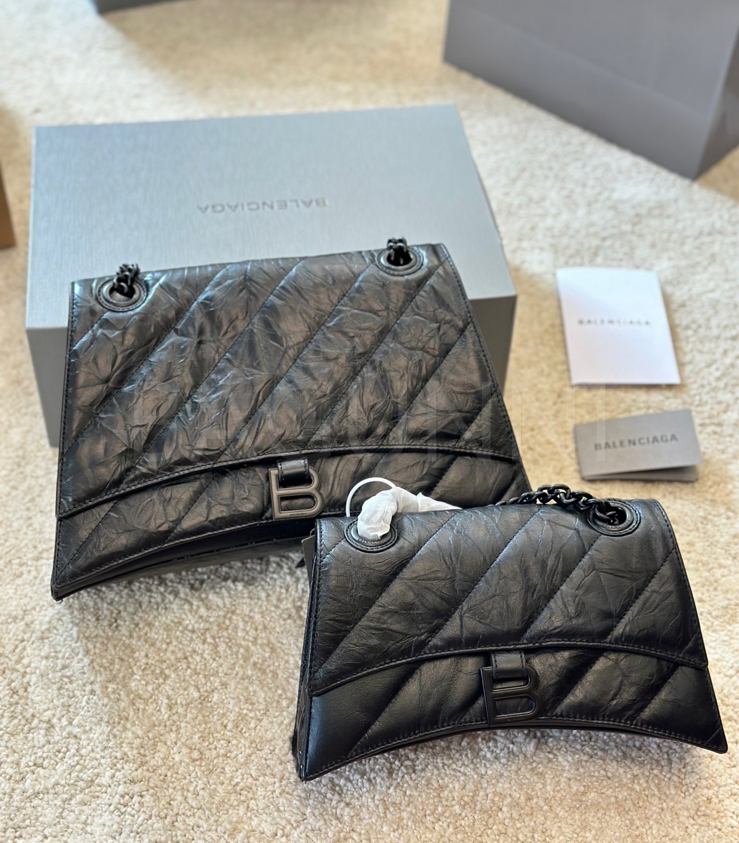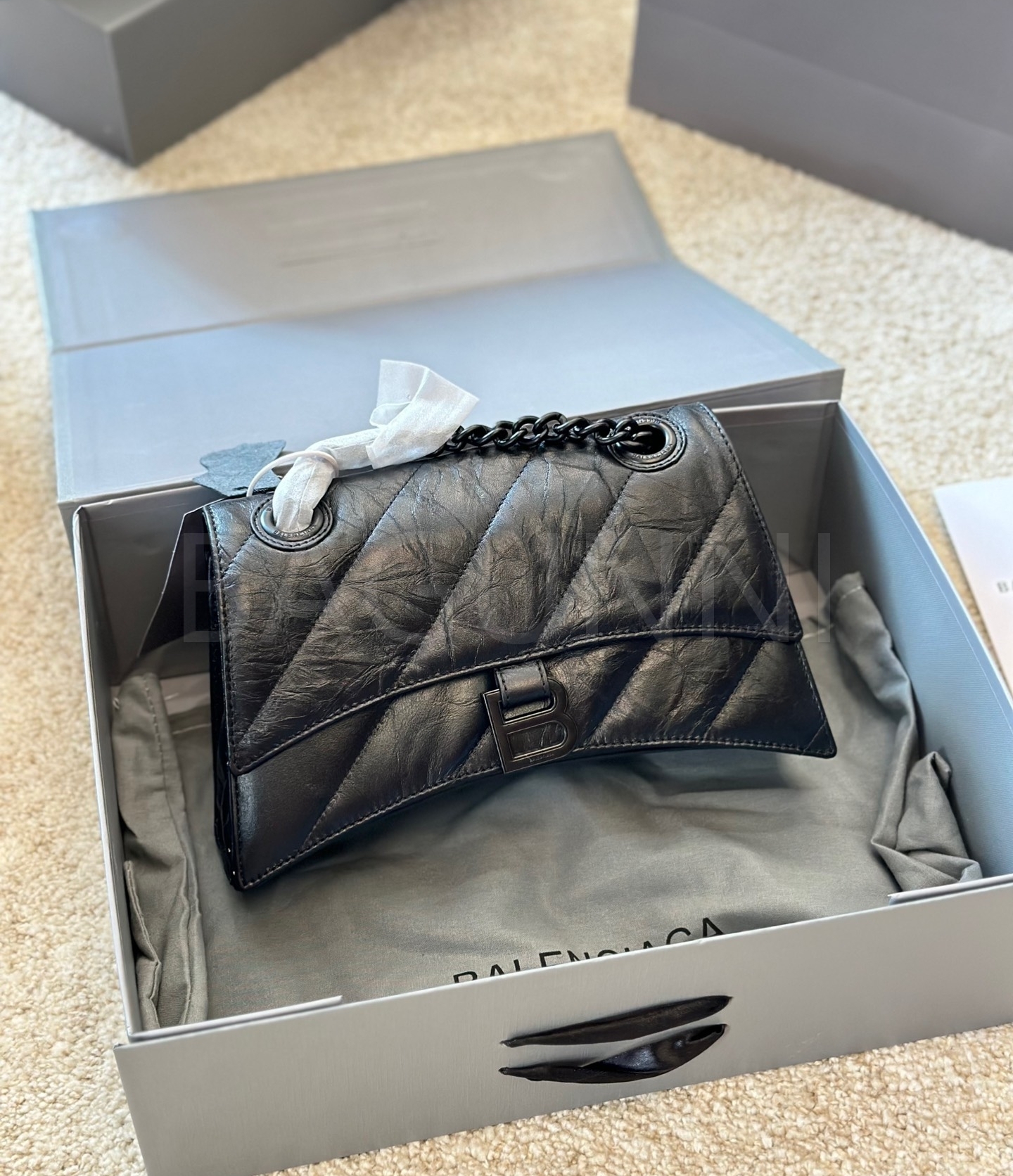 발렌시아가 아워글래스 숄더백입니다. 가죽 특유의 질감이 자연스럽게 살아 있으며 브랜드 특유의 분위기를 편하게 즐기기 좋습니다.