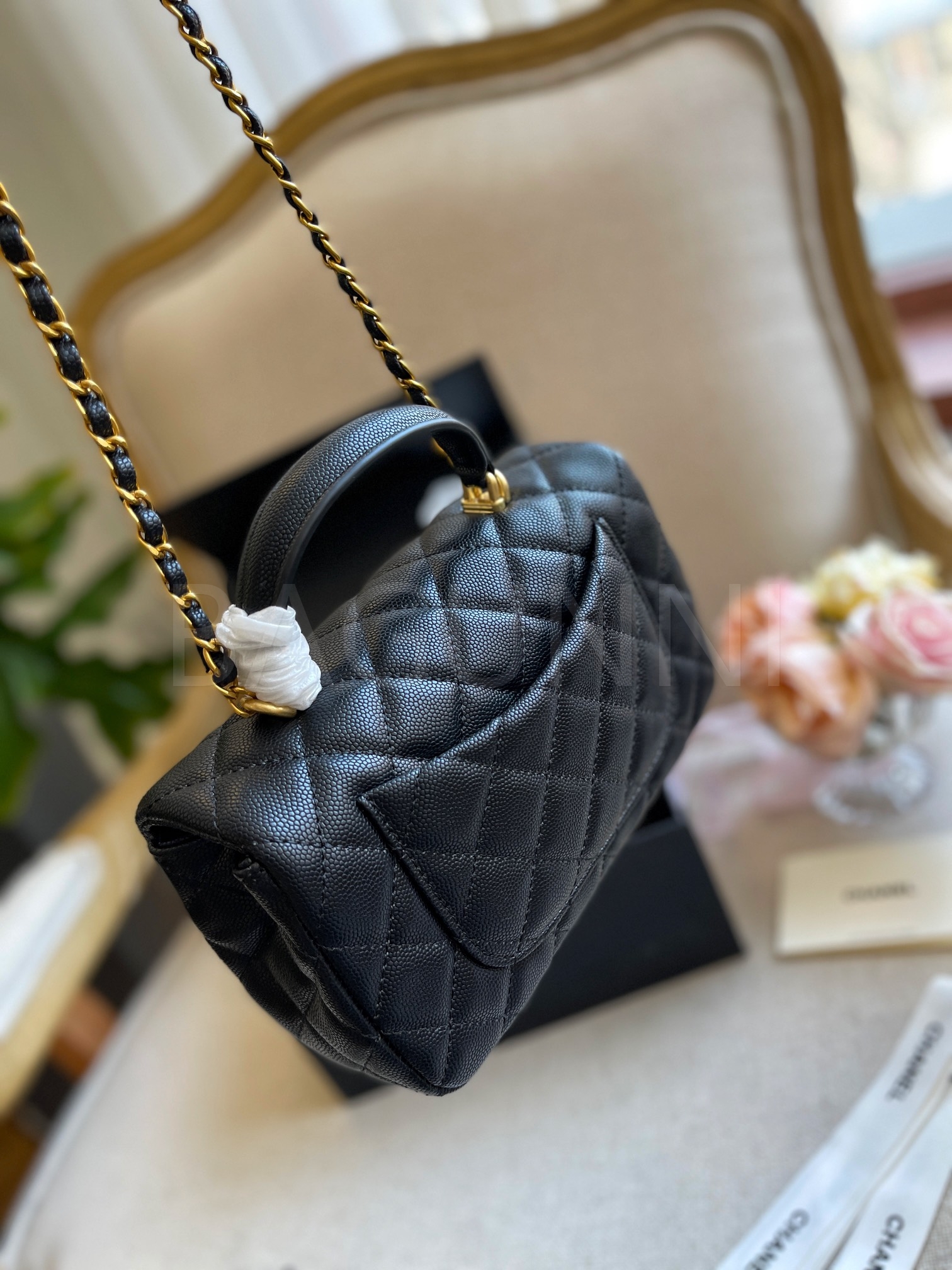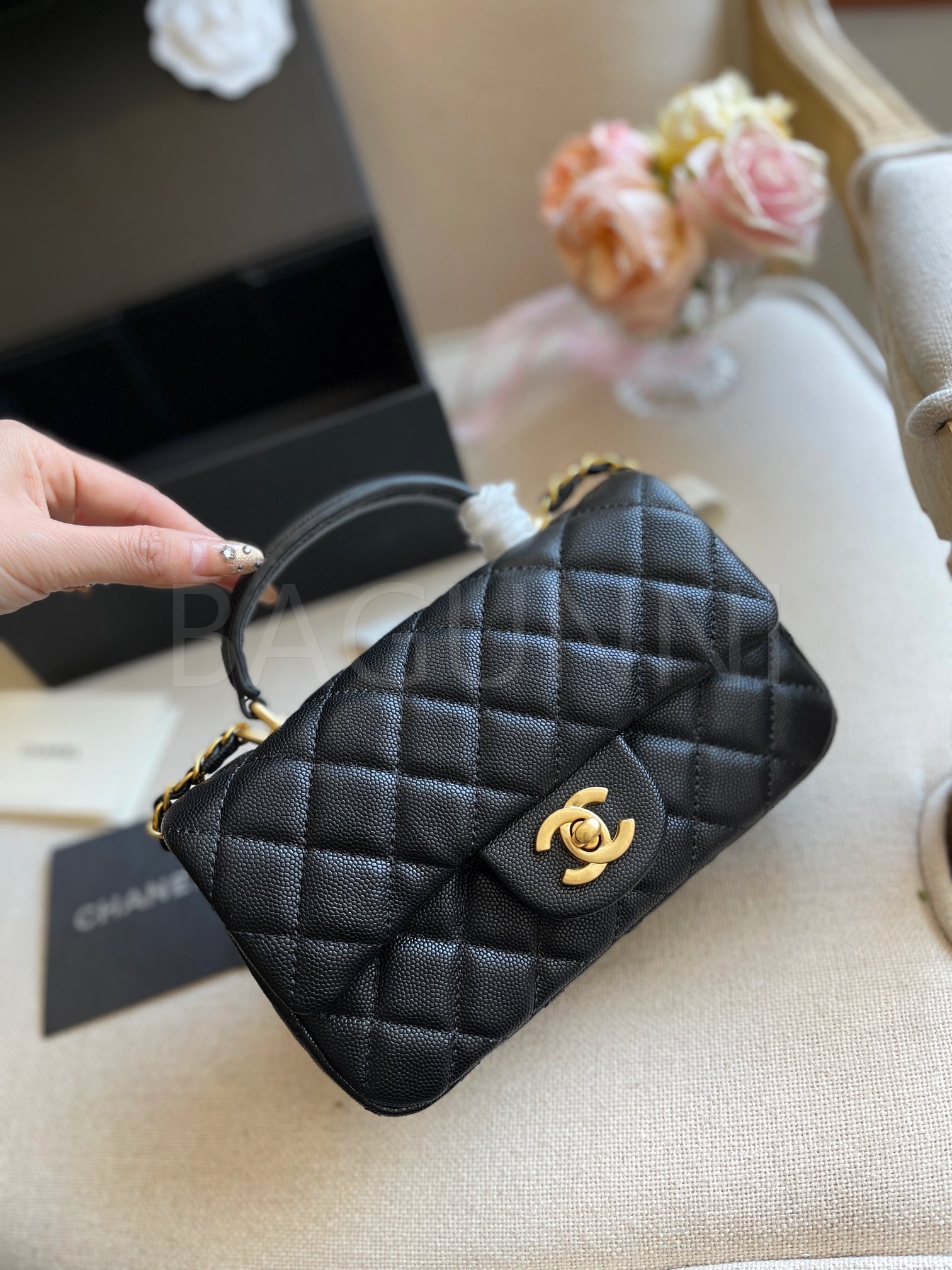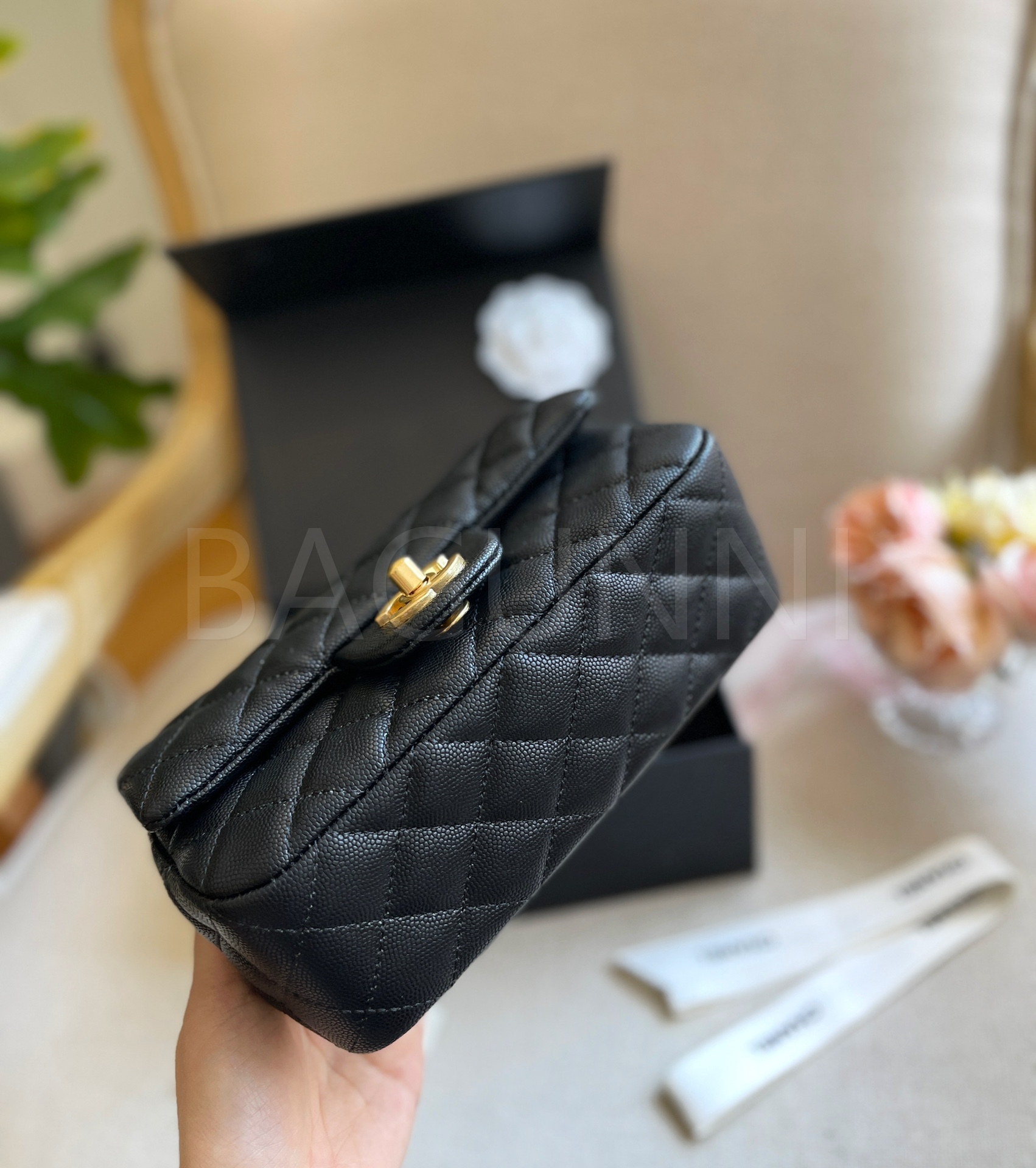 캐비어 가죽 특유의 매력이 돋보이는 샤넬 클래식 플랩 백입니다.