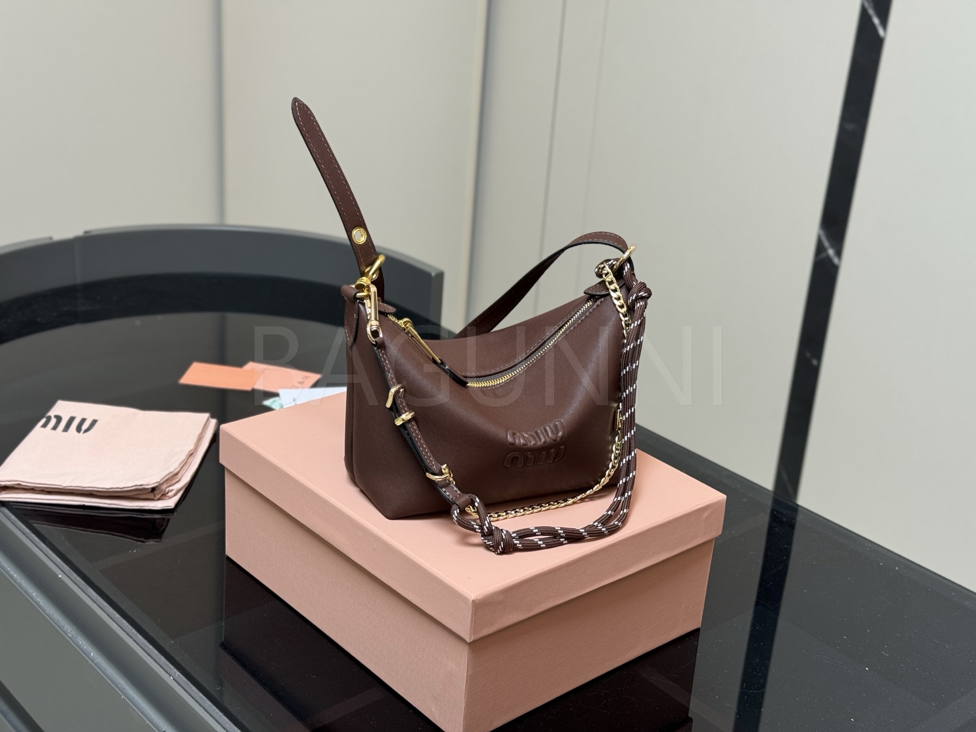 미우미우 캔버스 박스 숄더백입니다. 캔버스 특유의 질감이 자연스럽게 살아 있으며 브랜드 특유의 분위기를 편하게 즐기기 좋습니다.