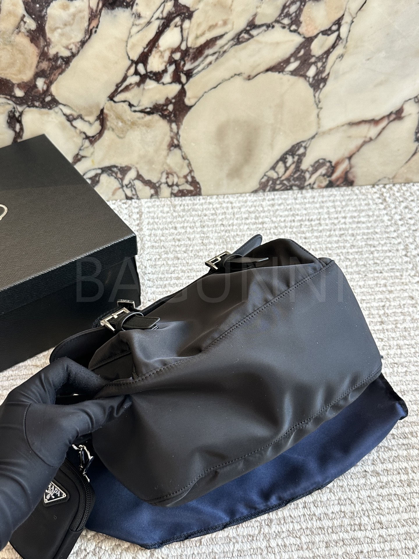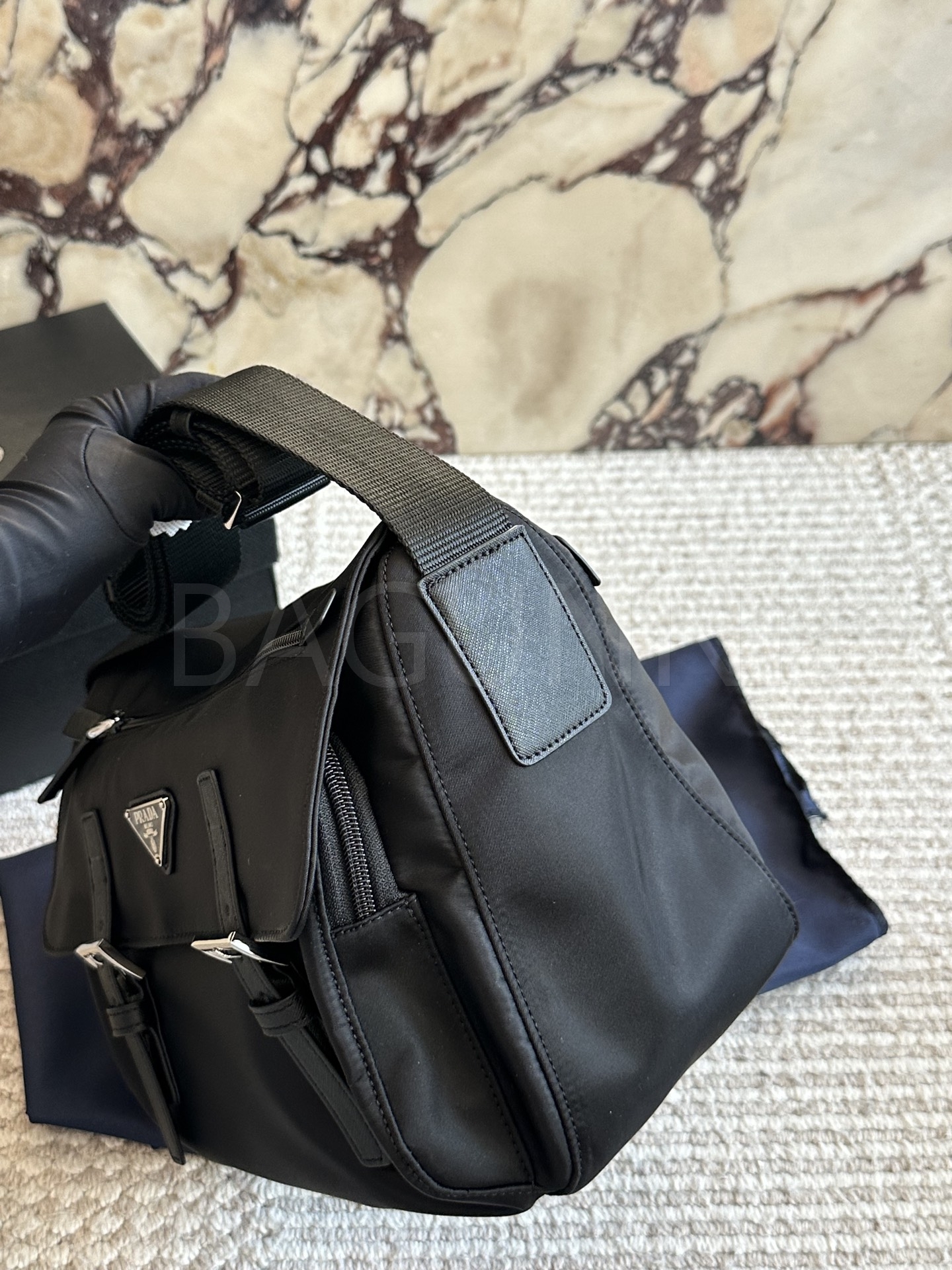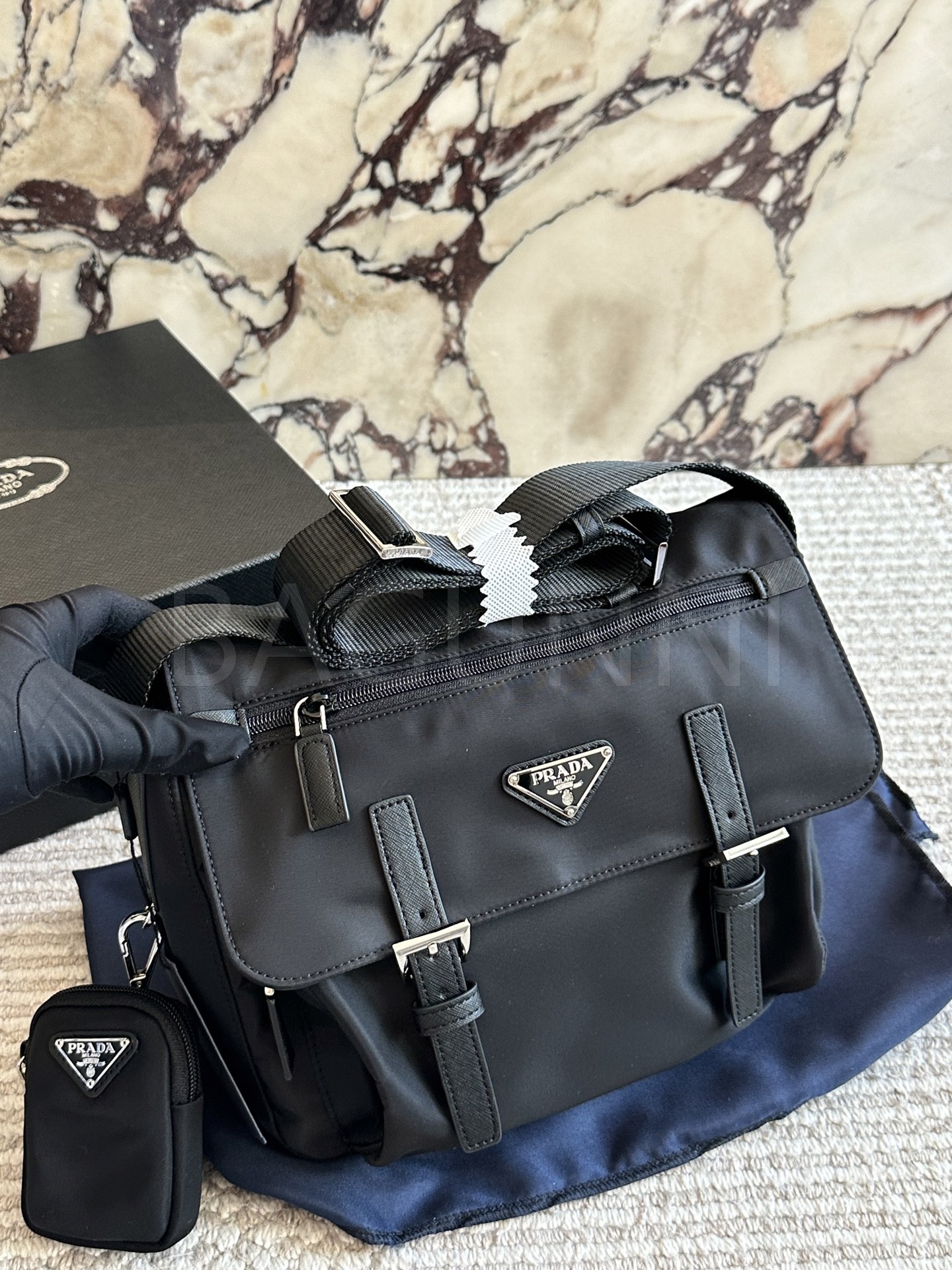 프라다 메신저백은 세련된 실루엣을 담은 아이템입니다.