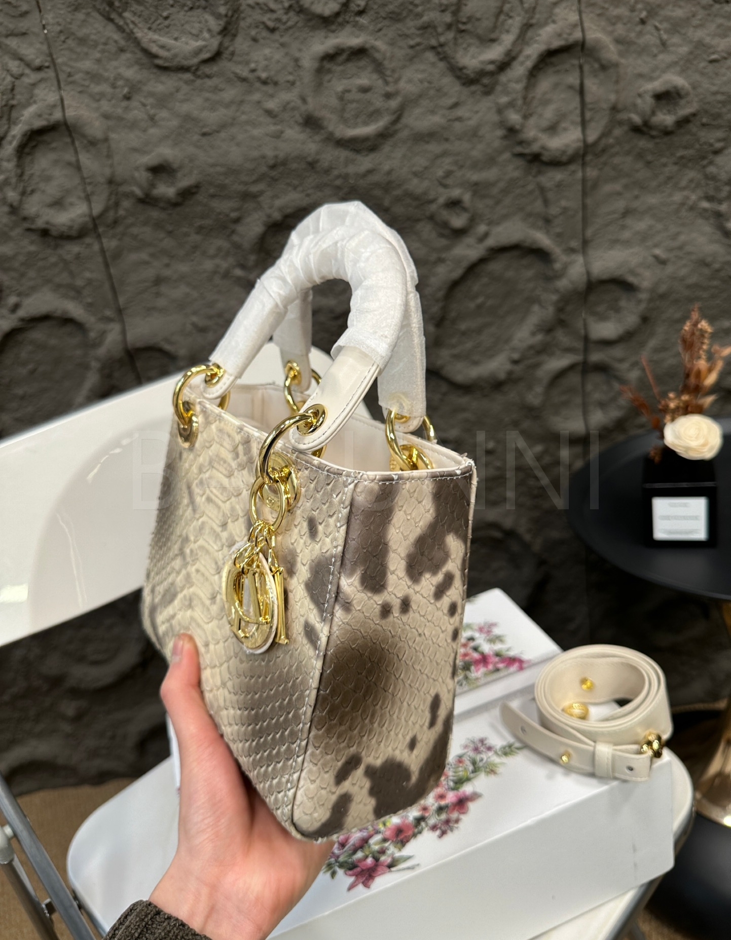 디올 파이톤 레이디 디올 미니백입니다. 브랜드 특유의 분위기를 편하게 즐기기 좋습니다.