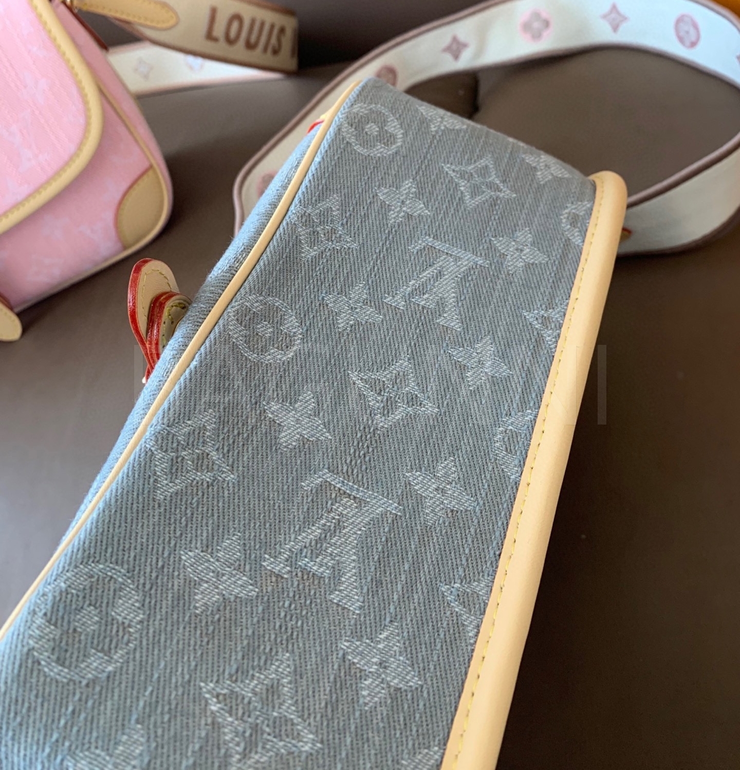 데님 특유의 캐주얼한 무드가 돋보이는 루이비통 데님 다이앤 숄더백입니다.