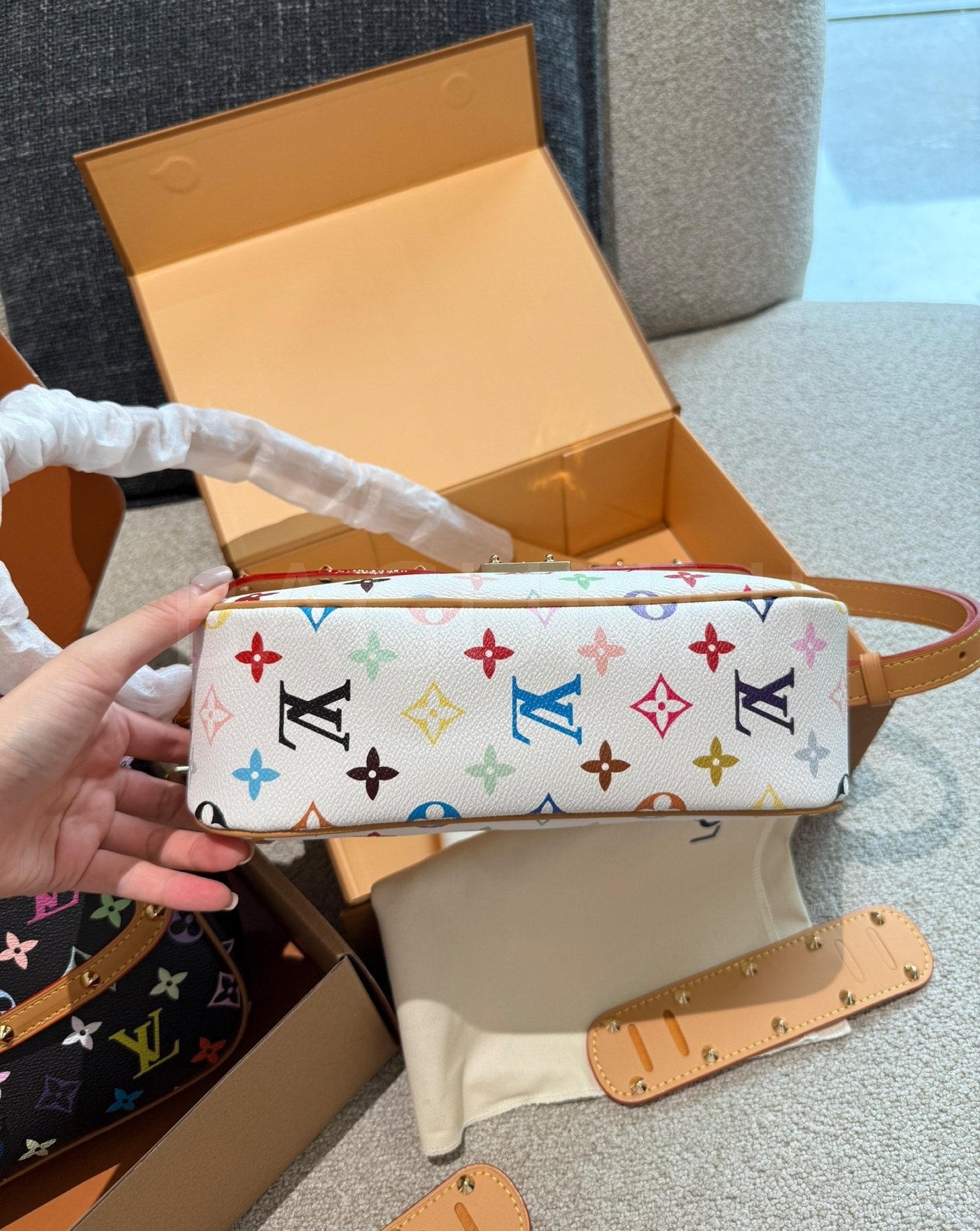 블랙, 화이트 컬러 구성이 감각적인 분위기를 완성해줍니다 멀티컬러 모노그램 디테일이 조화롭게 어우러져 완성도를 높여줍니다