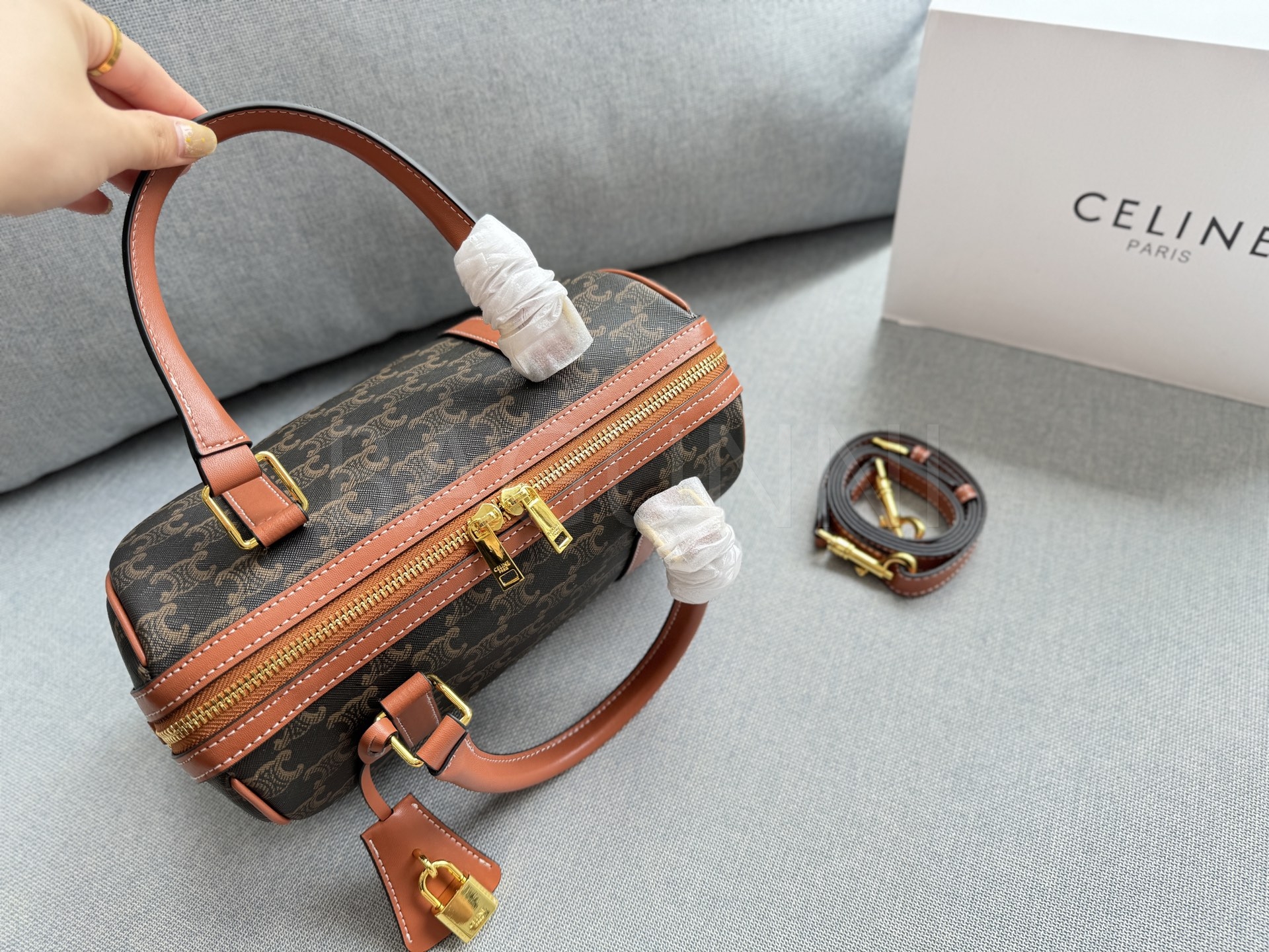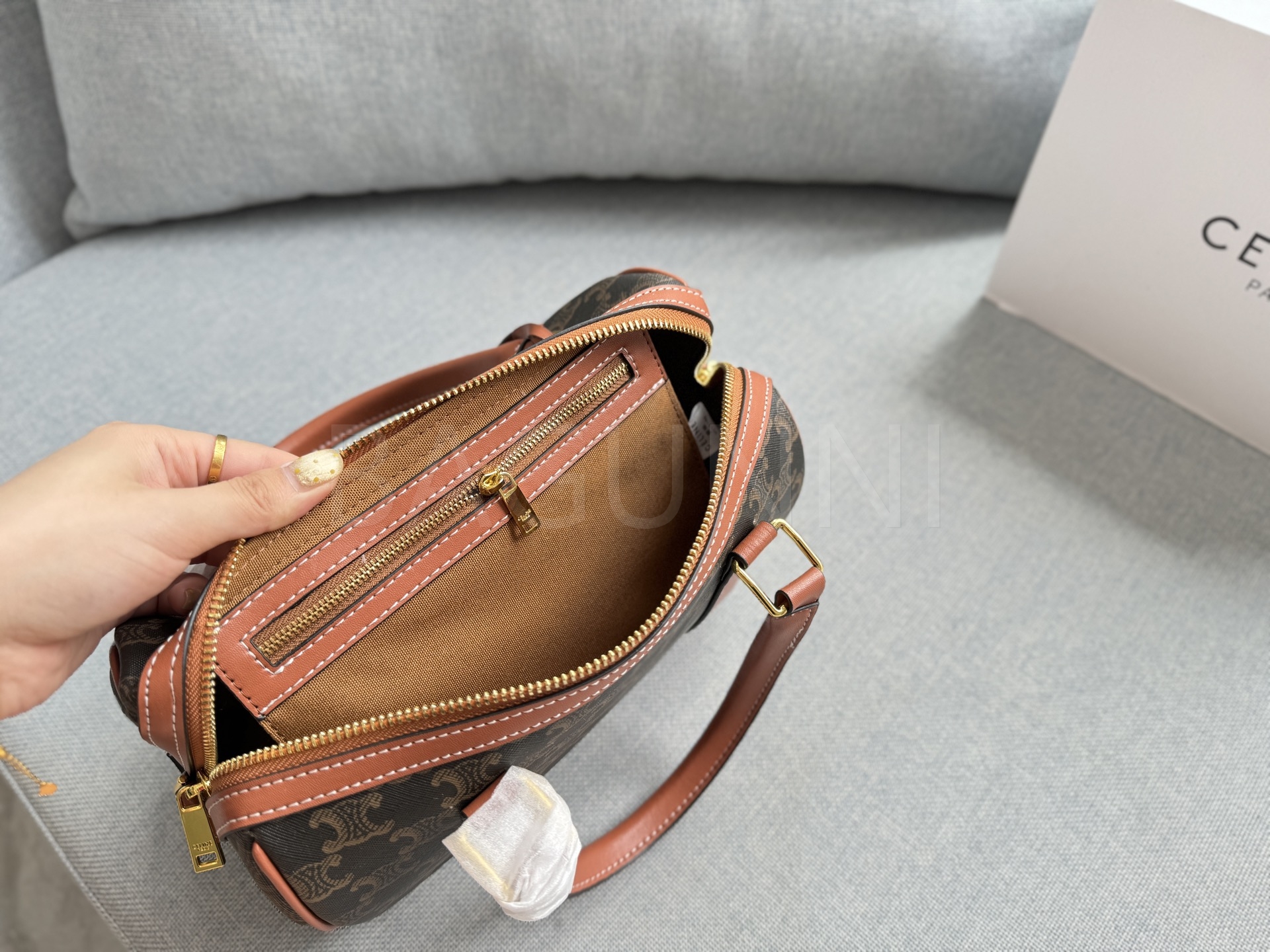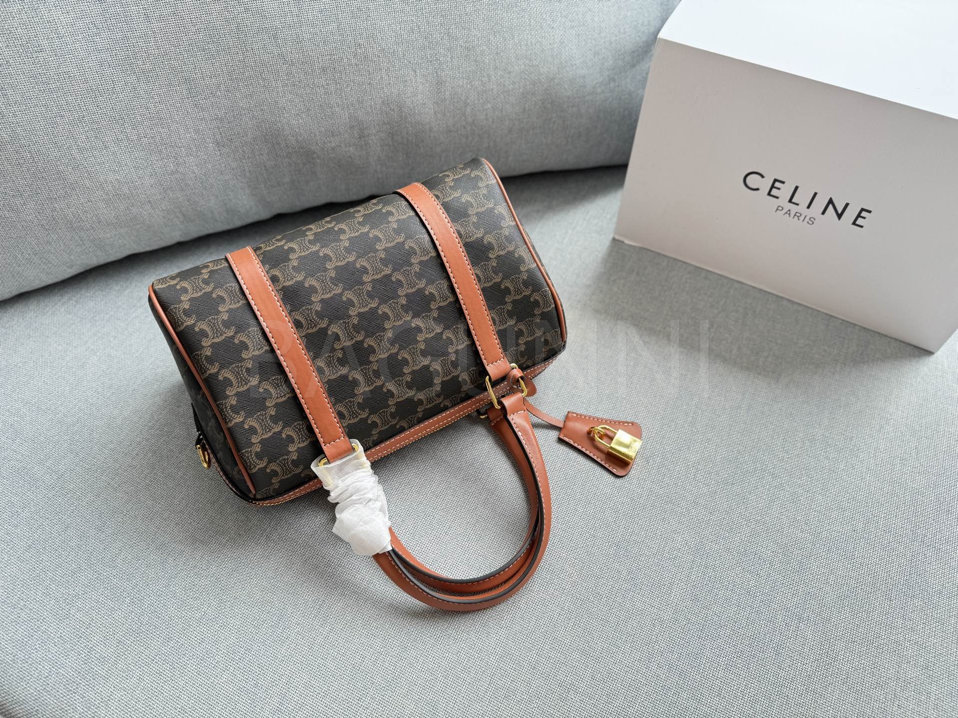 셀린느 탕부르 보스턴백입니다. 가죽 특유의 질감이 자연스럽게 살아 있으며 블랙, 레드 톤이 어우러져 브랜드 특유의 분위기를 편하게 즐기기 좋습니다.
