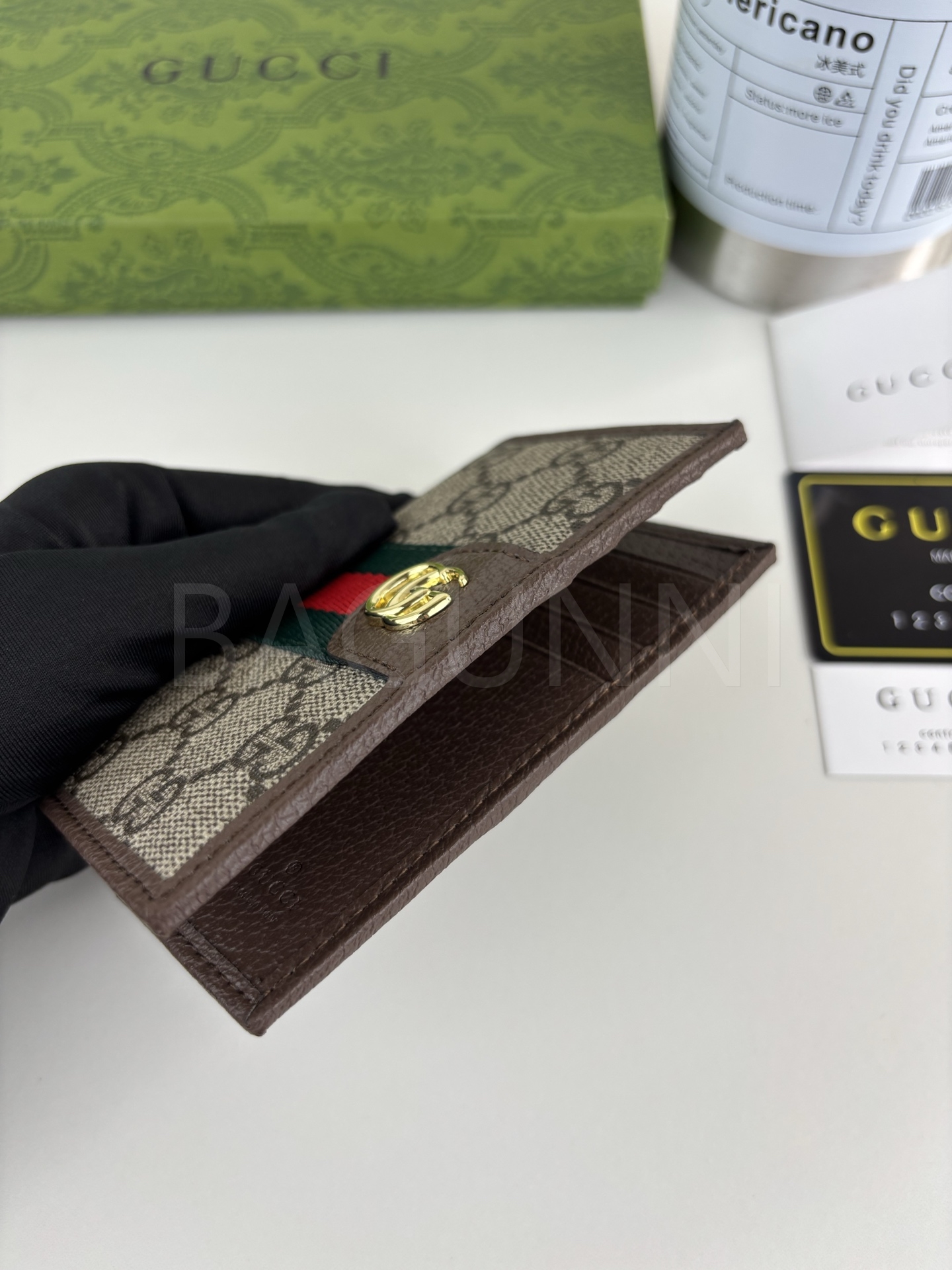 GG 수프림 캔버스의 질감이 돋보이는 구찌 오피디아 카드지갑입니다.