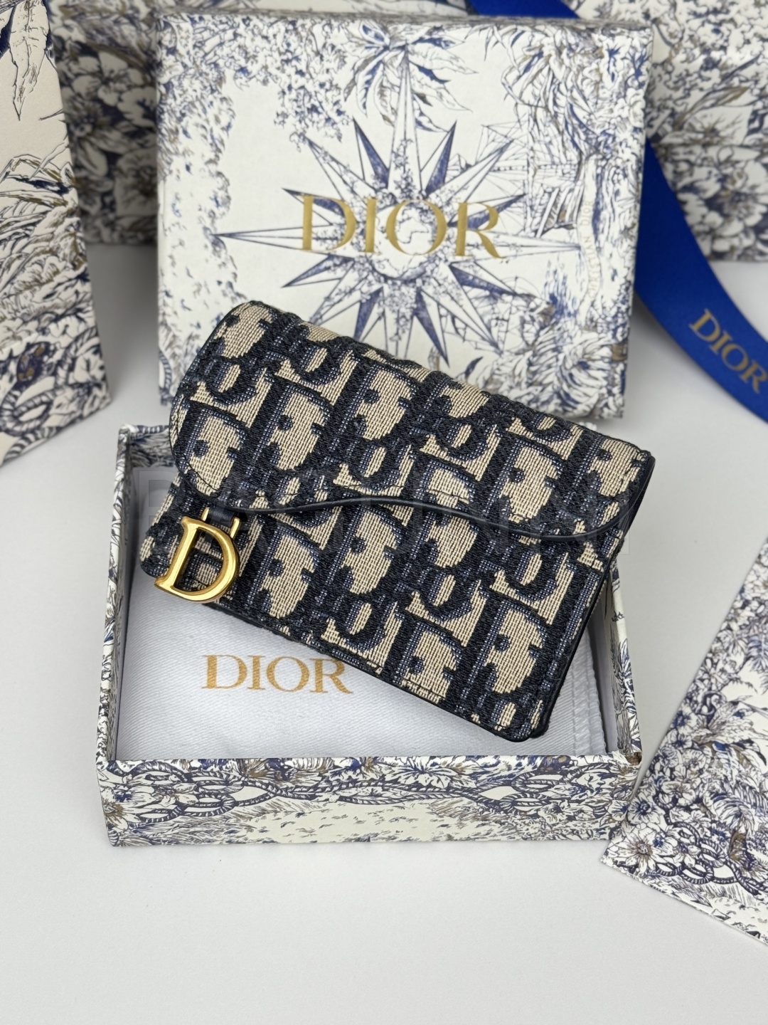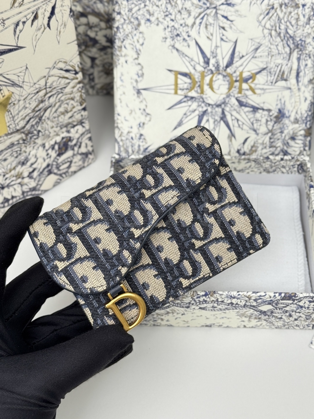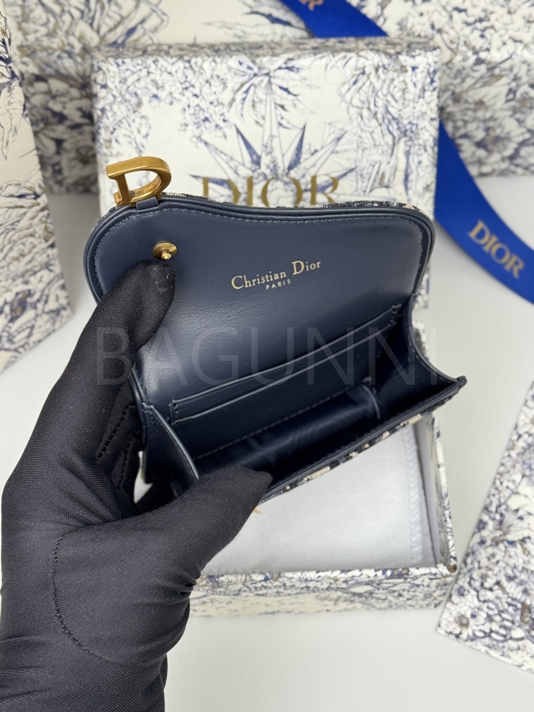 오블리크 자카드의 질감이 돋보이는 디올 플랩 카드지갑입니다.