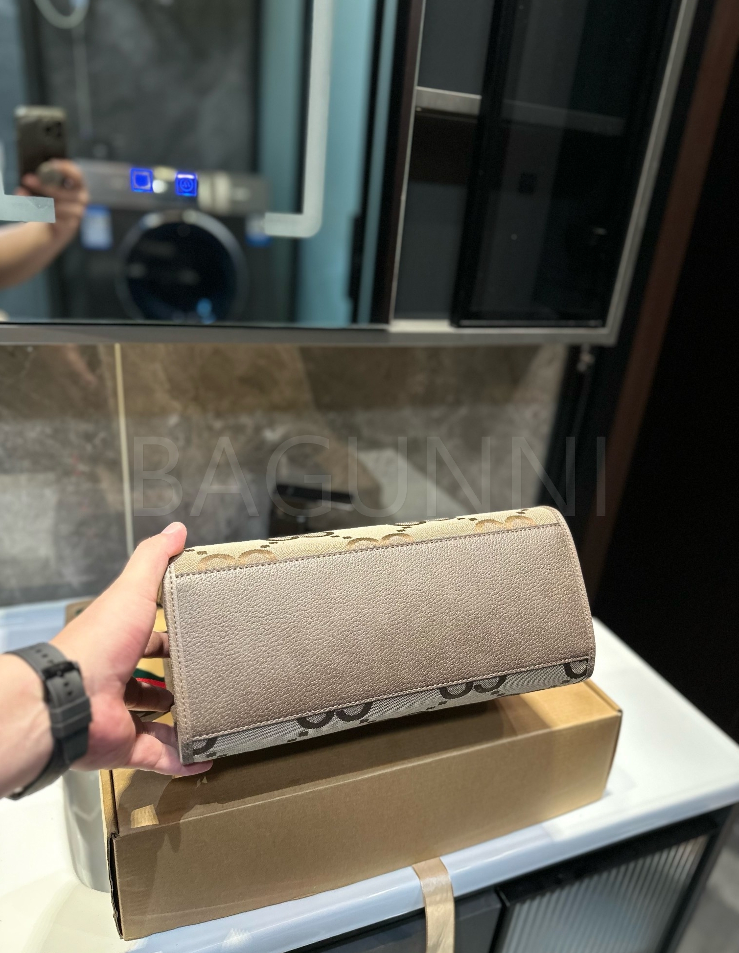 구찌 라지 숄더백입니다. 브랜드 특유의 분위기를 편하게 즐기기 좋습니다.