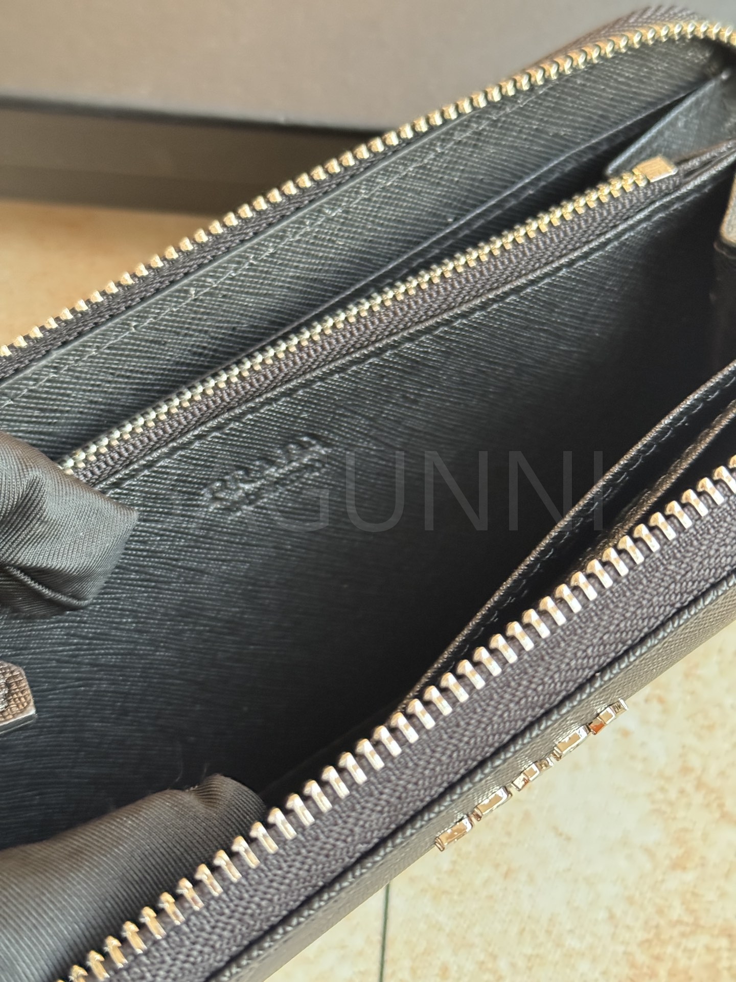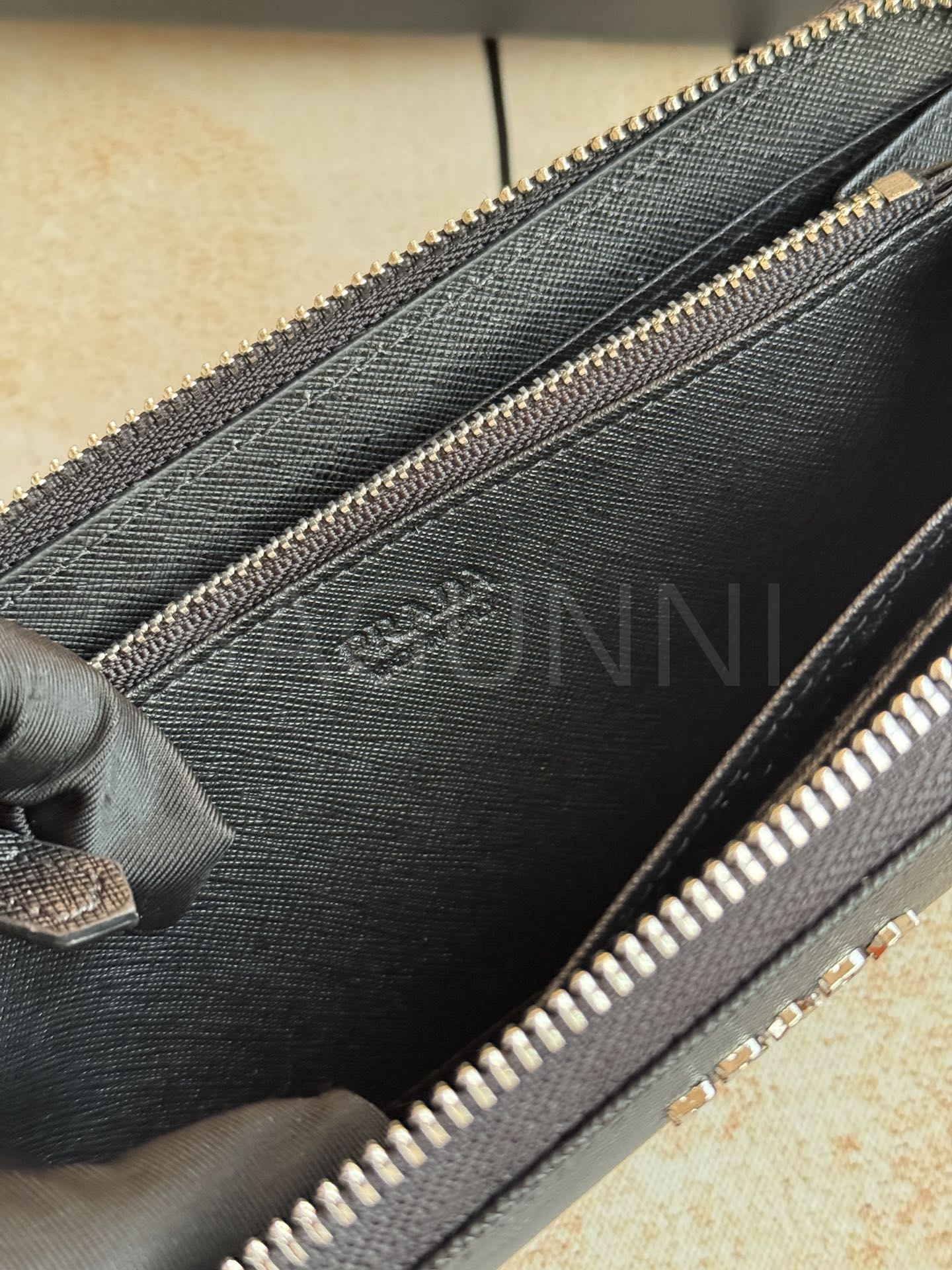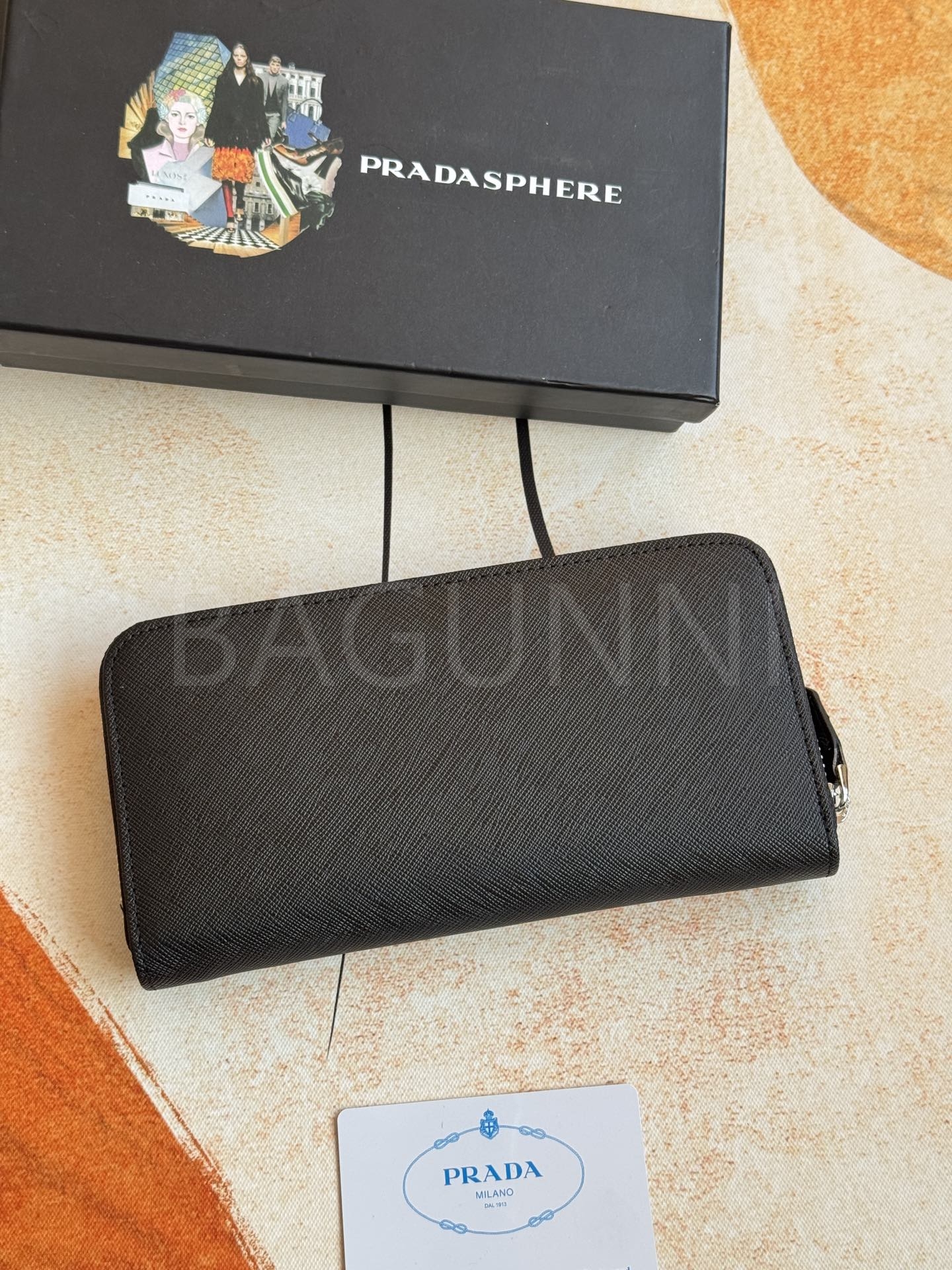 사피아노 질감이 깔끔하게 살아있는 프라다 사피아노 지퍼 장지갑입니다.