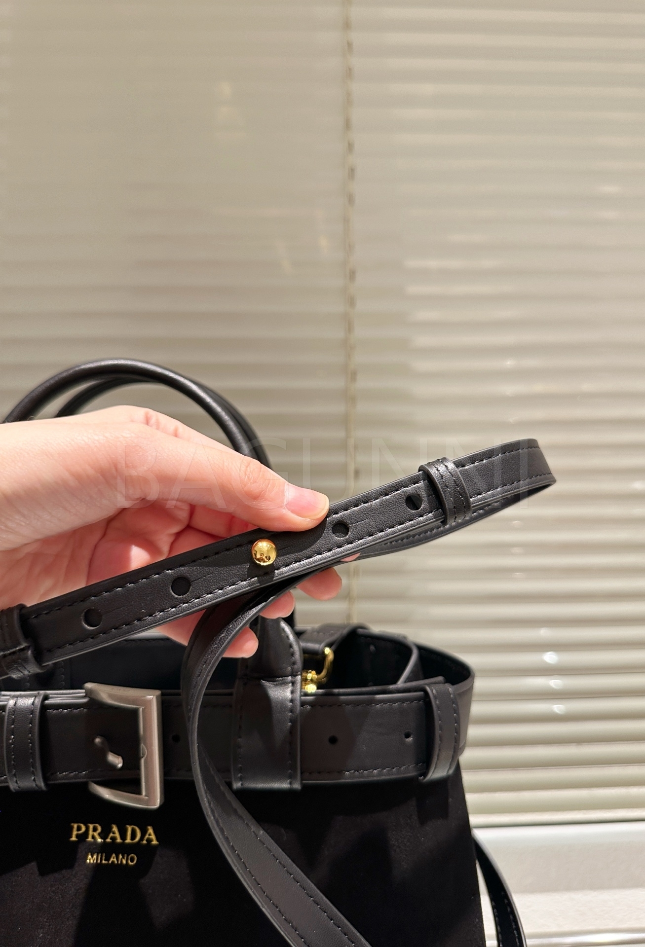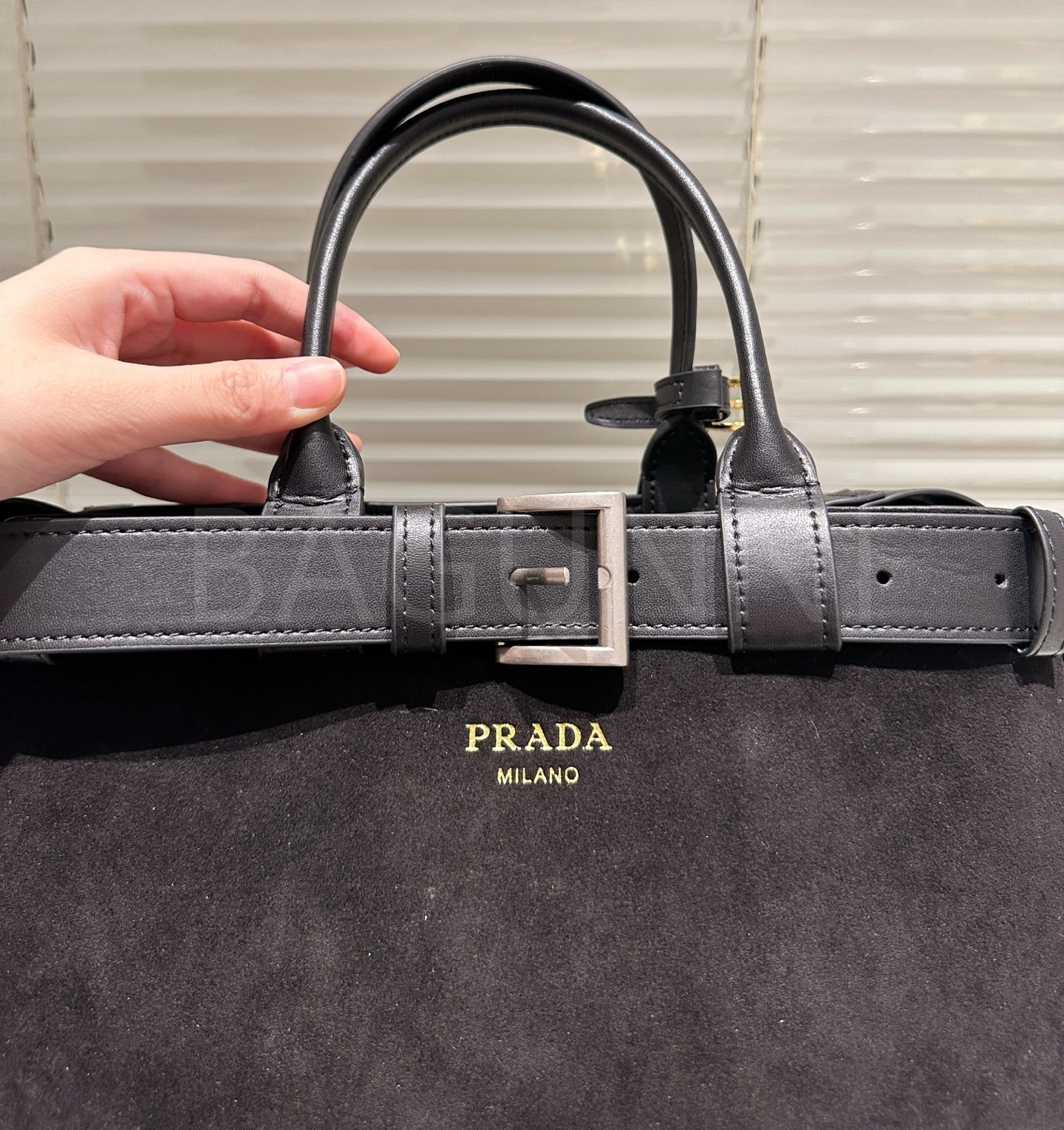 프라다 스웨이드 토트백은 우아한 분위기를 담은 아이템입니다.