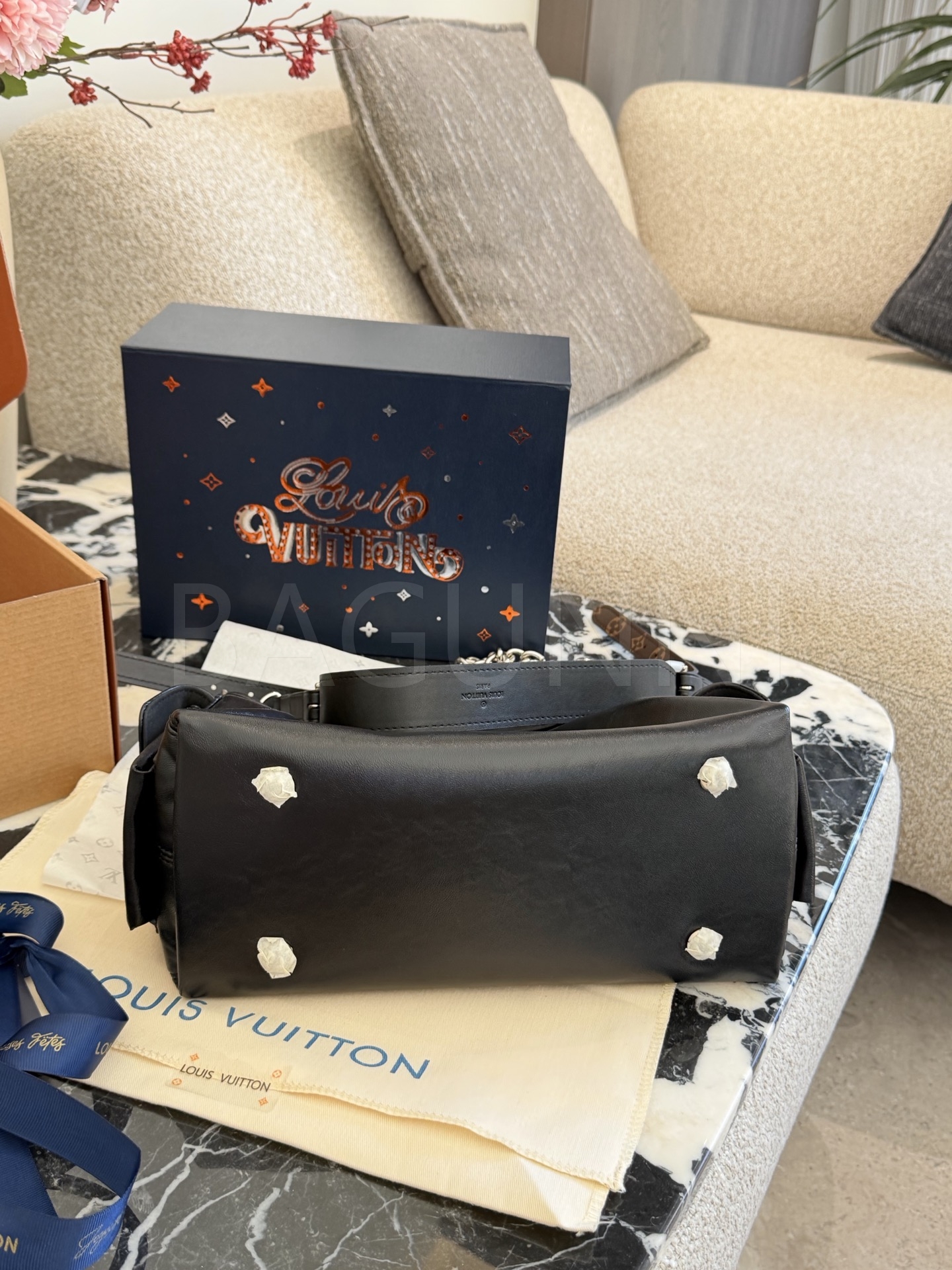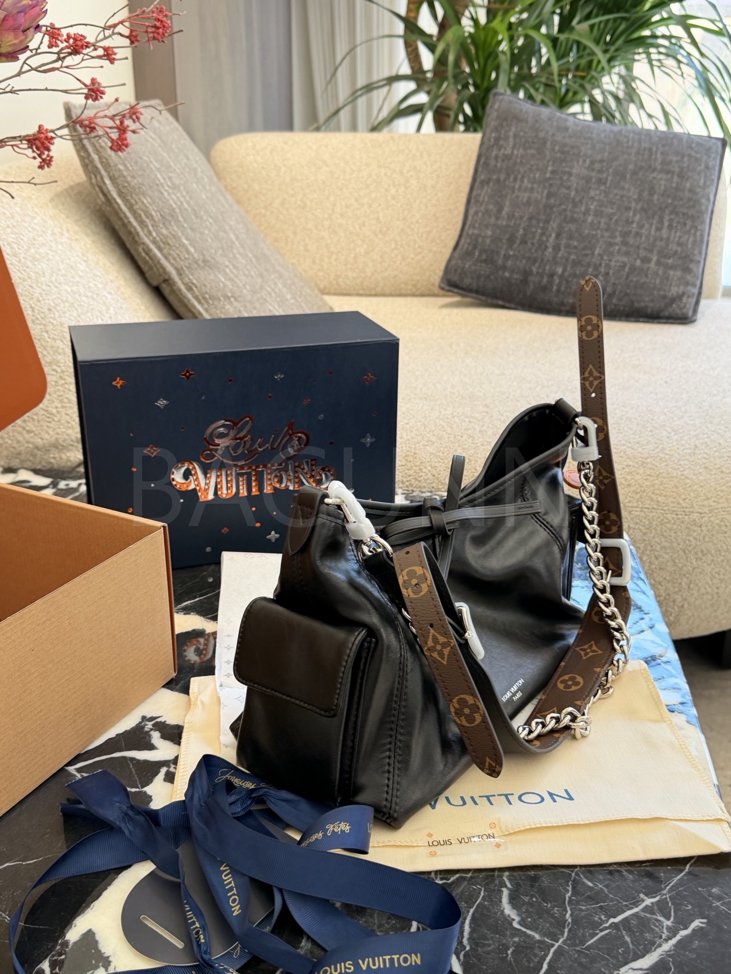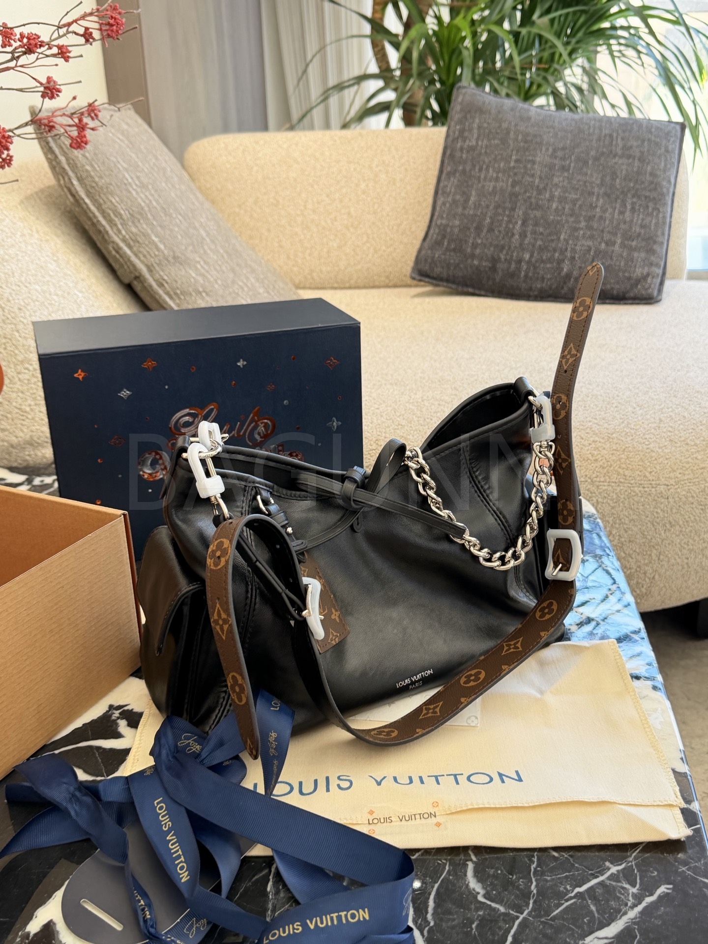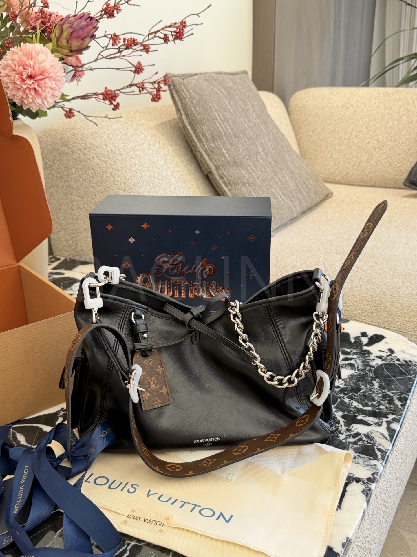 루이비통 캐리올 드로스트링 버킷 백은 미니멀한 감성을 담은 아이템입니다.