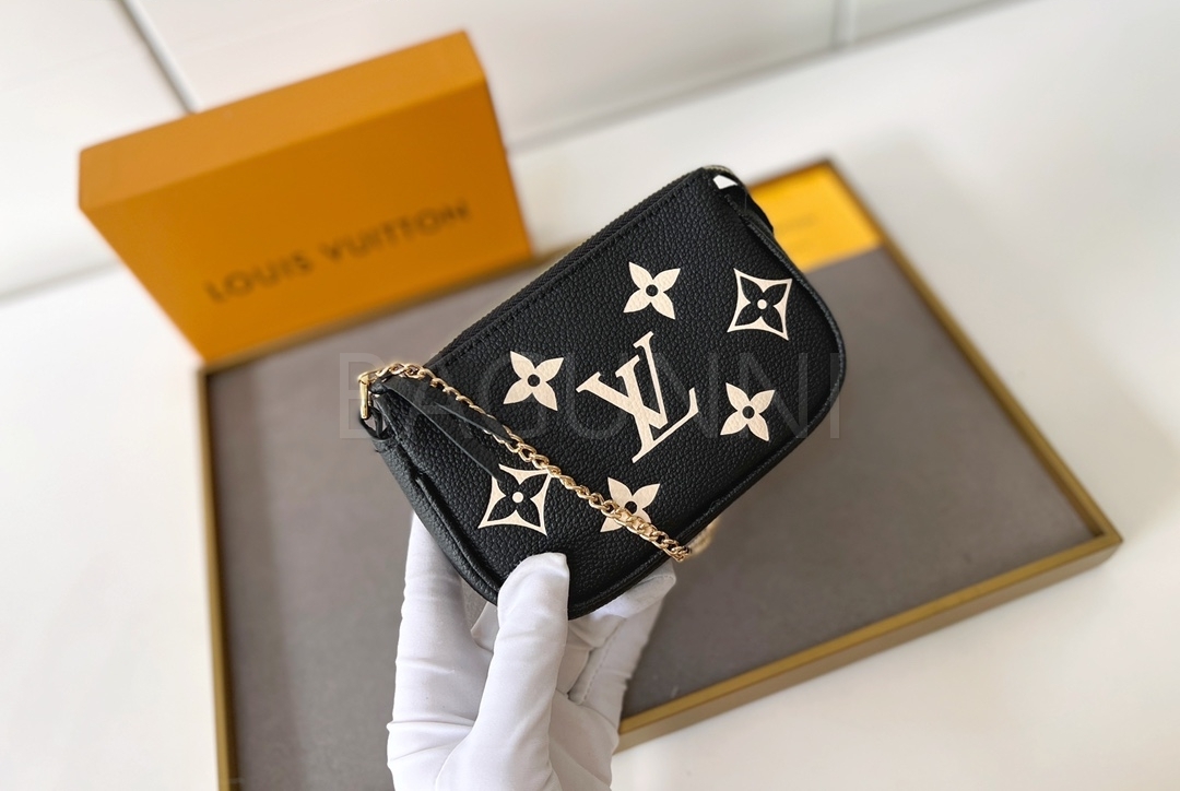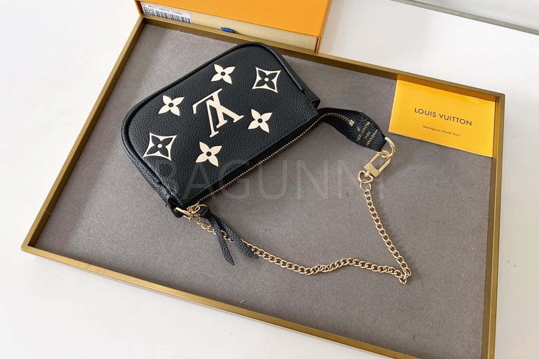 모노그램 앙프렝뜨 레더와 체인 연출 가능으로 데일리로 쓰기 좋고, 작은 소지품을 깔끔하게 정리하기 좋습니다.