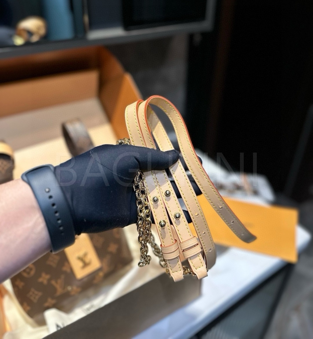 체인 스트랩, 탑핸들, 버킷 실루엣 디테일이 조화롭게 어우러져 완성도를 높여줍니다 데일리룩부터 가벼운 외출까지 부담 없이 활용하기 좋습니다