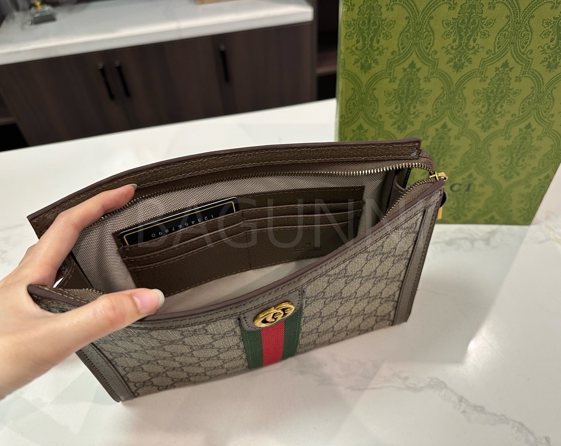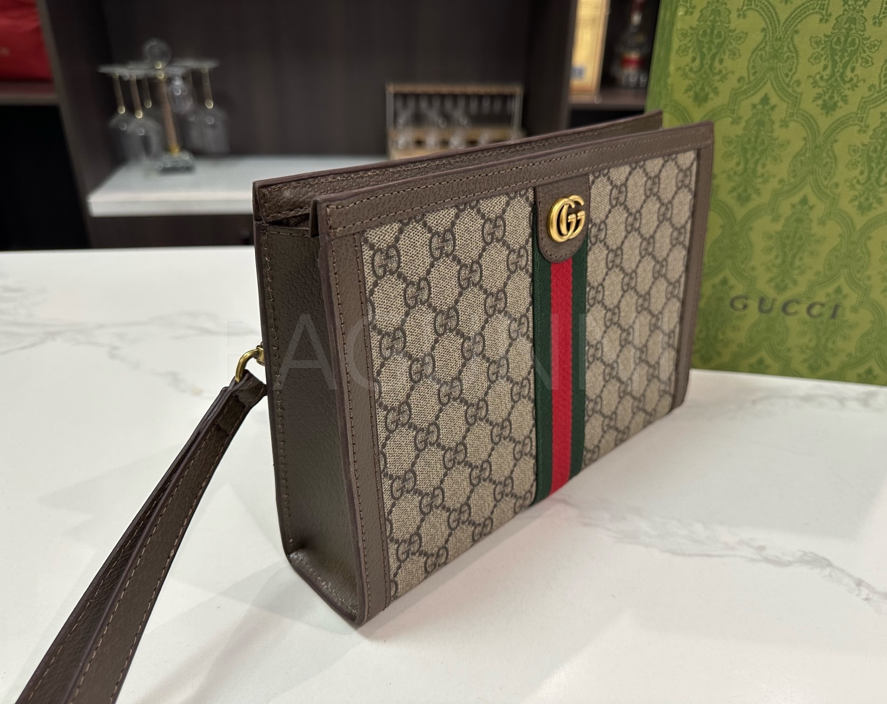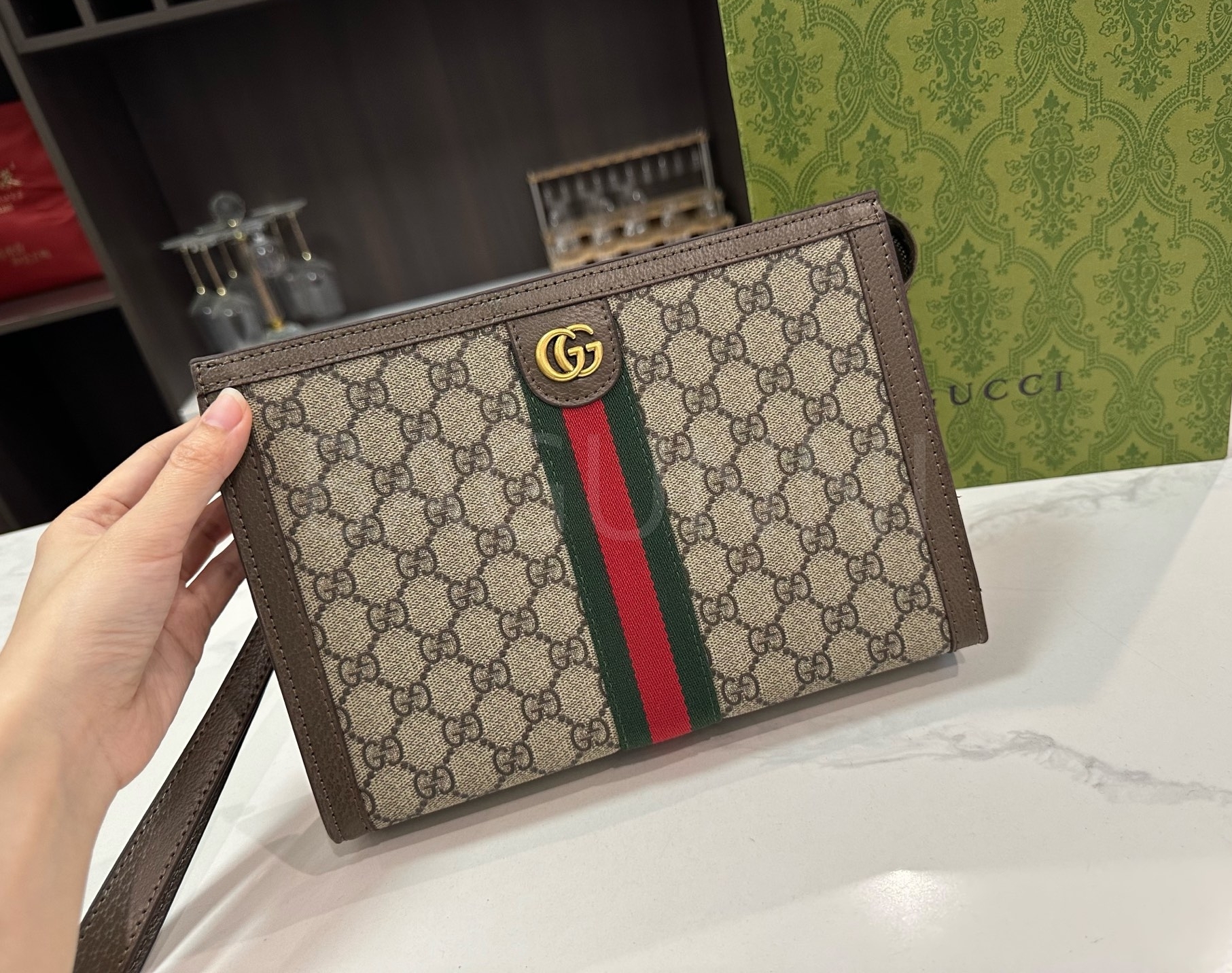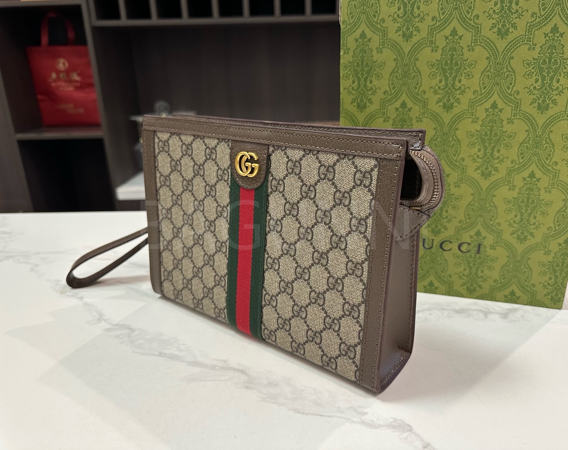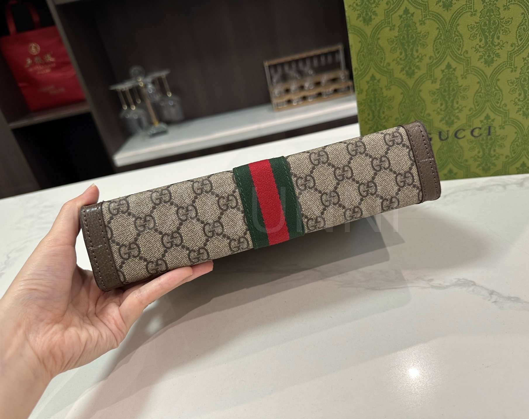 구찌 체인입니다. 가죽 특유의 질감이 자연스럽게 살아 있으며 브랜드 특유의 분위기를 편하게 즐기기 좋습니다.