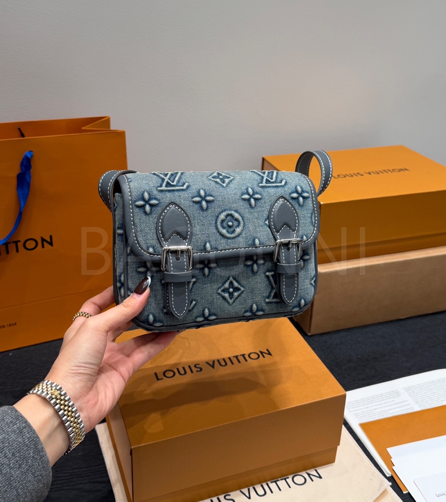 루이비통 데님 카메라백은 빈티지한 무드를 담은 아이템입니다.