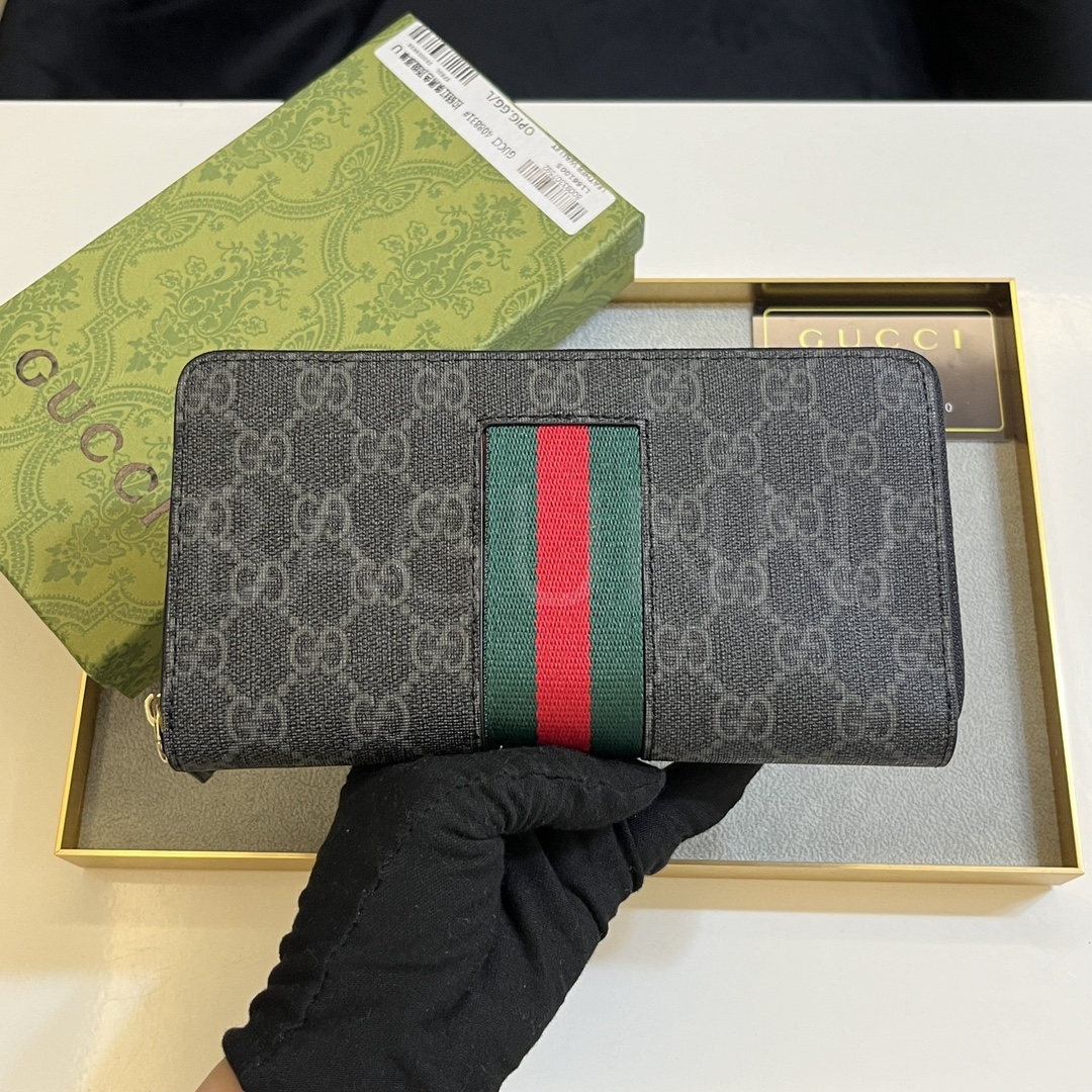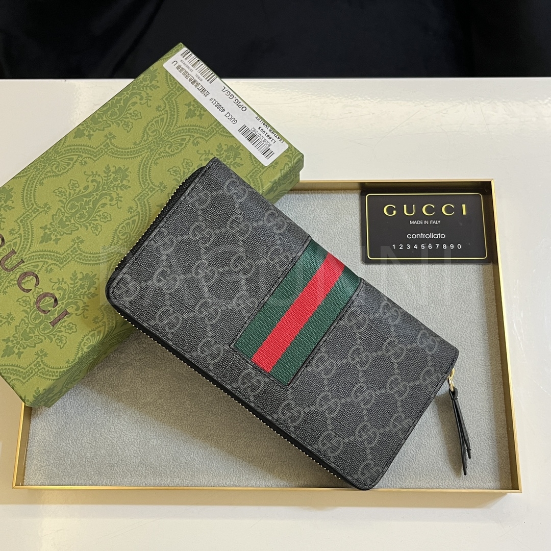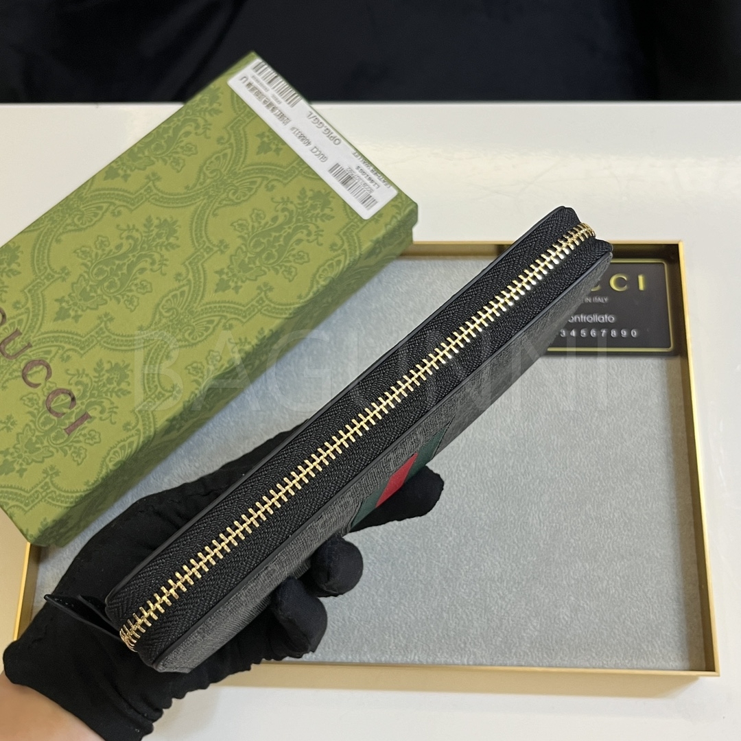 GG 수프림 캔버스의 질감이 돋보이는 구찌 지퍼 카드지갑입니다.