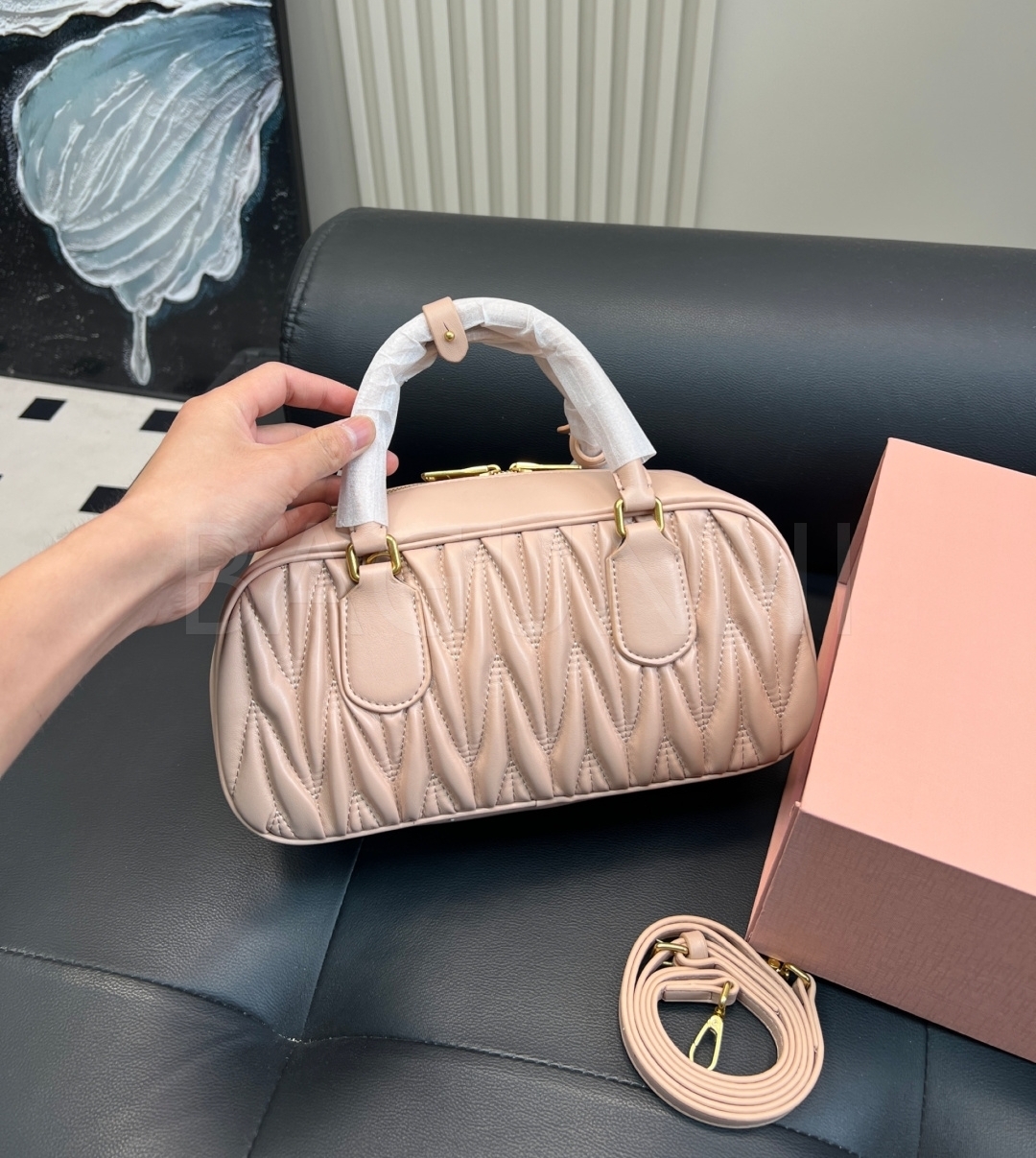 미우미우 볼링백입니다. 브랜드 특유의 분위기를 편하게 즐기기 좋습니다.