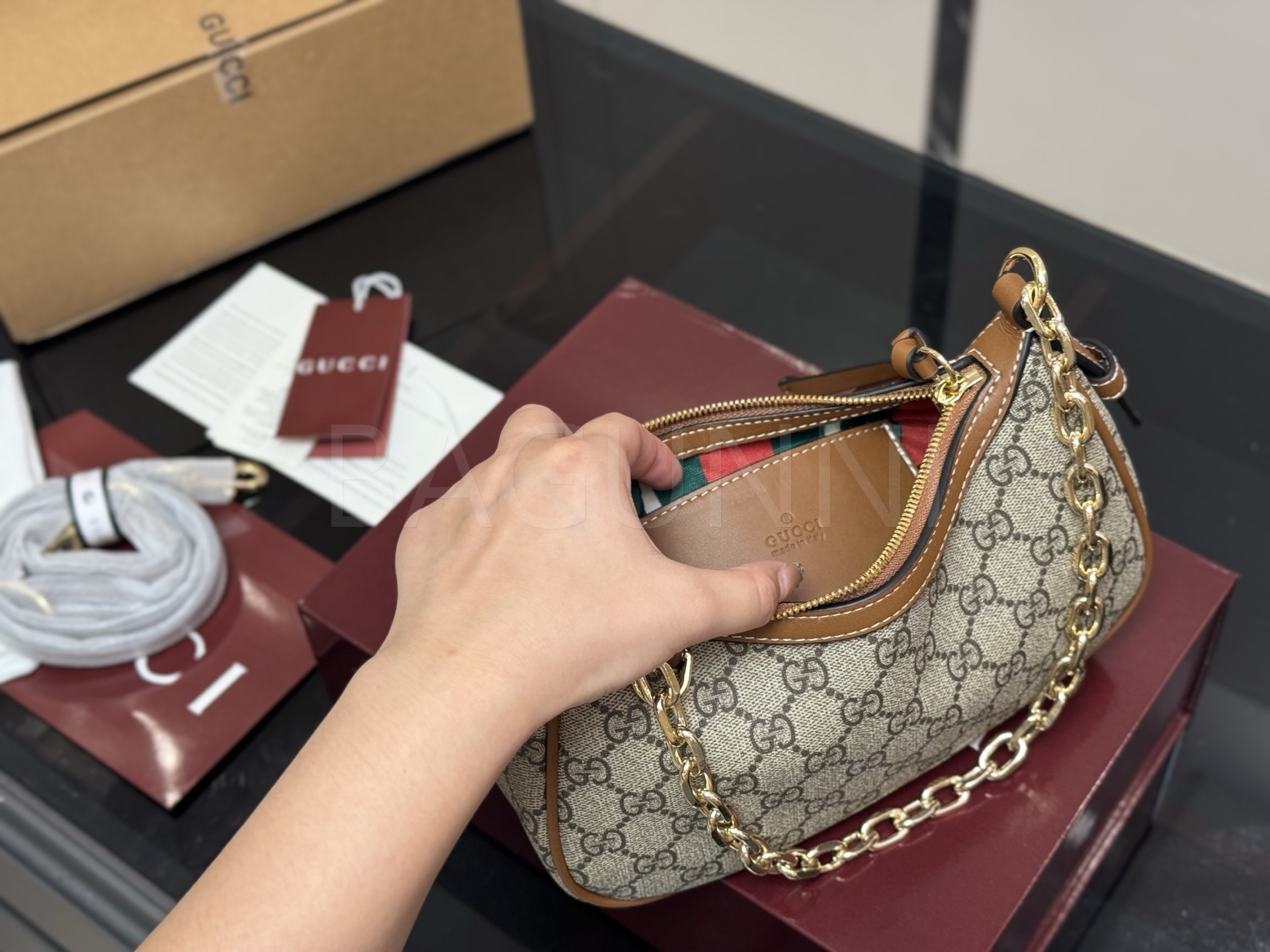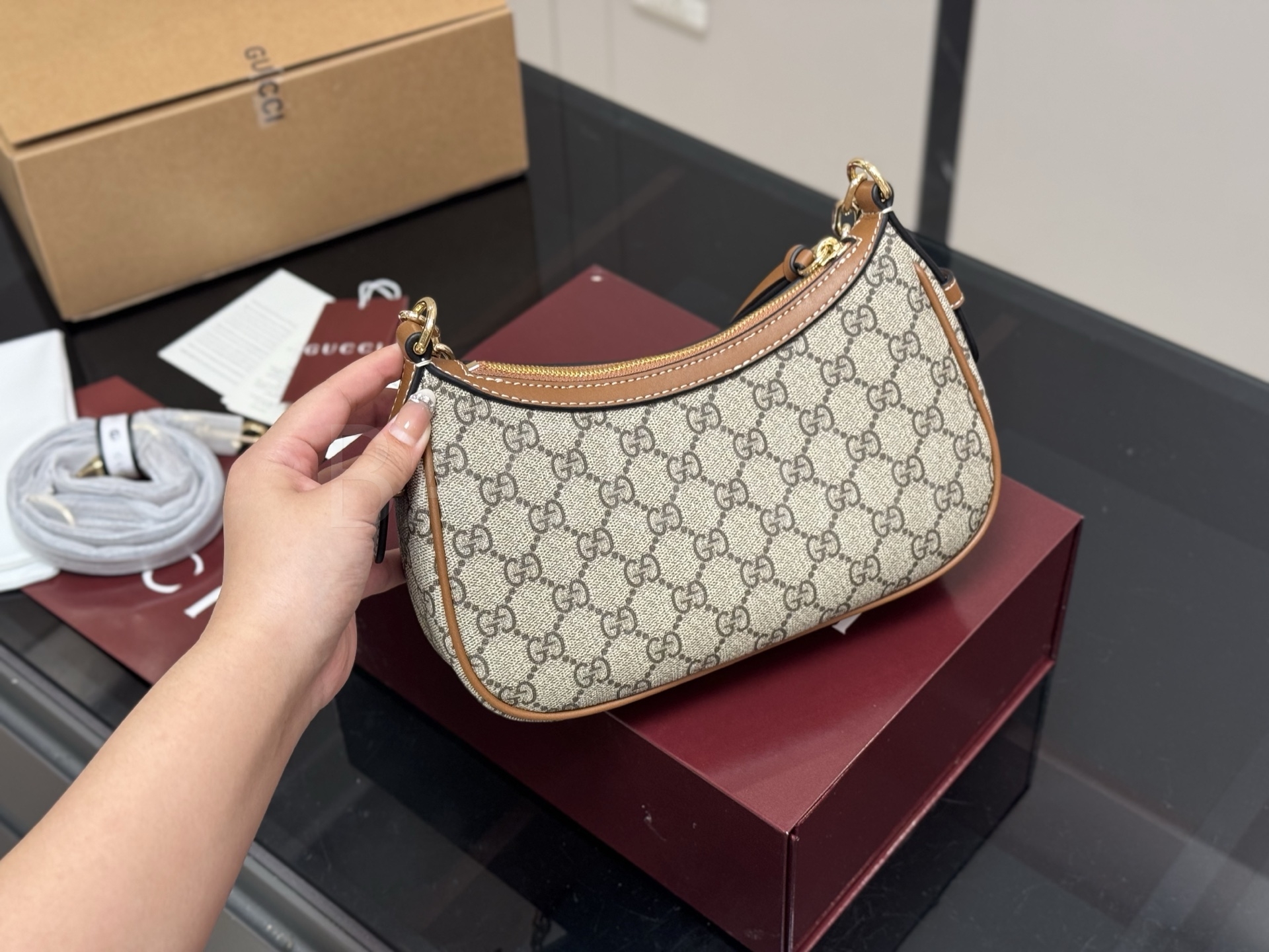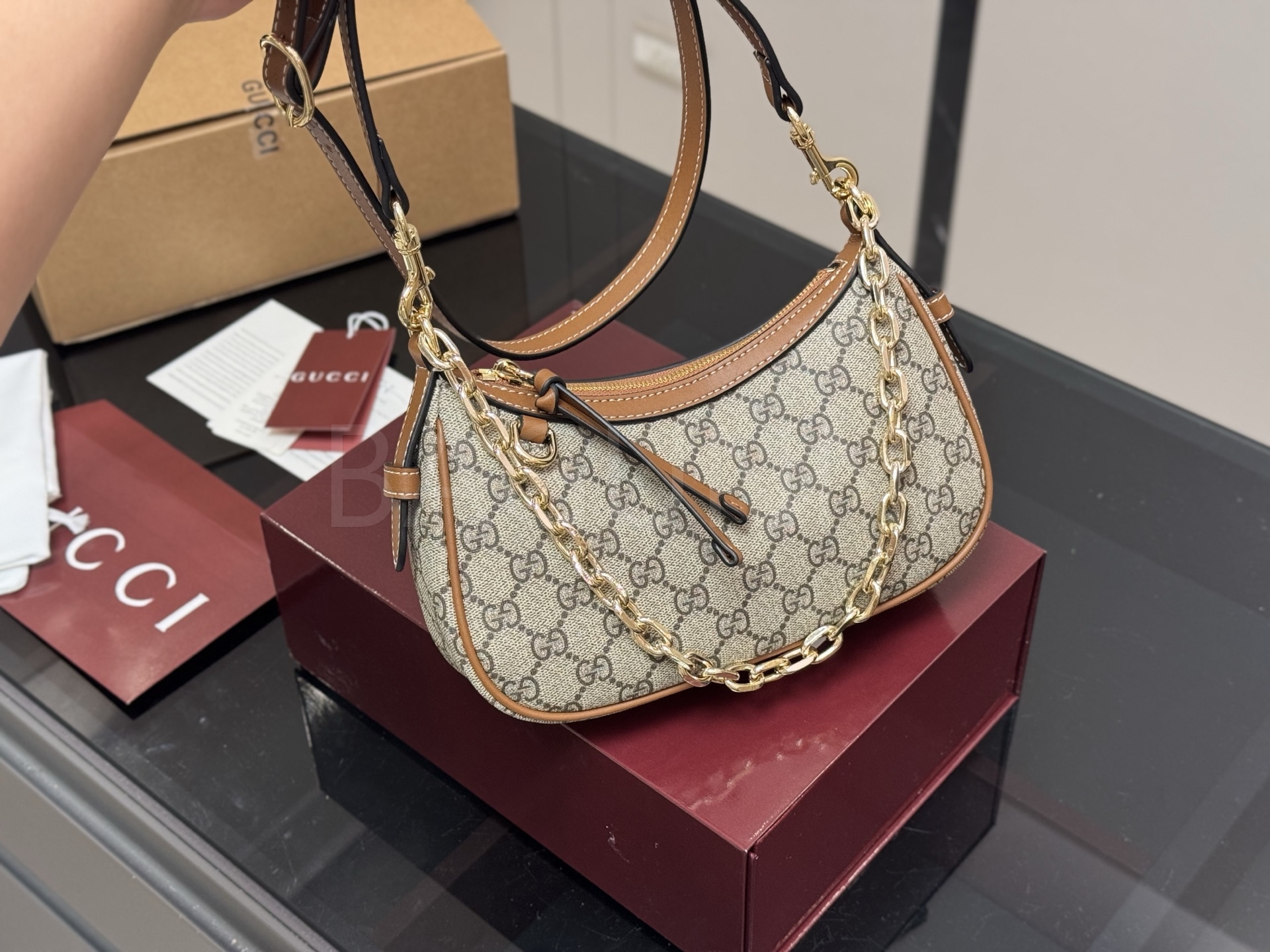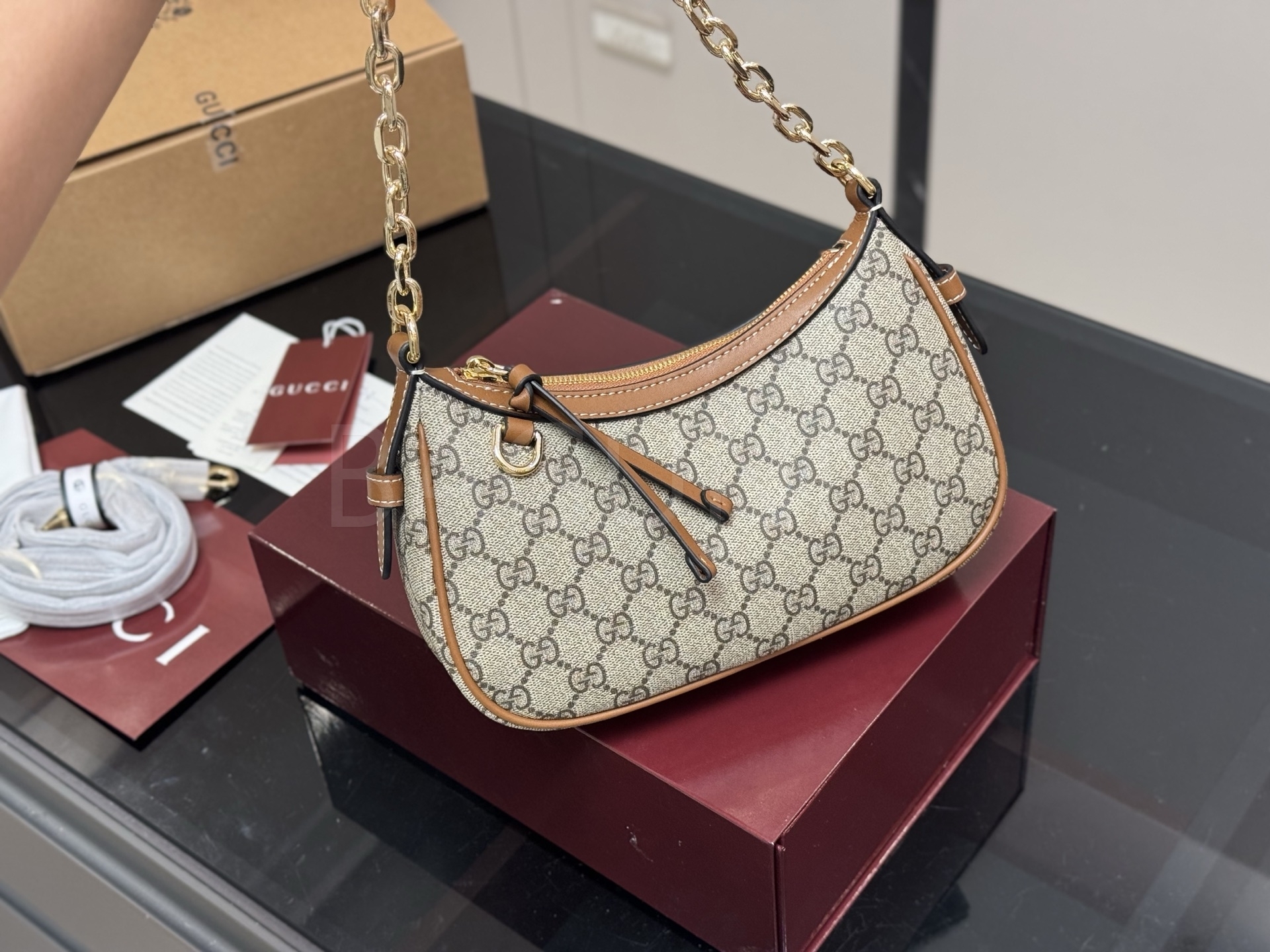 구찌 오피디아 숄더백입니다. 브랜드 특유의 분위기를 편하게 즐기기 좋습니다.