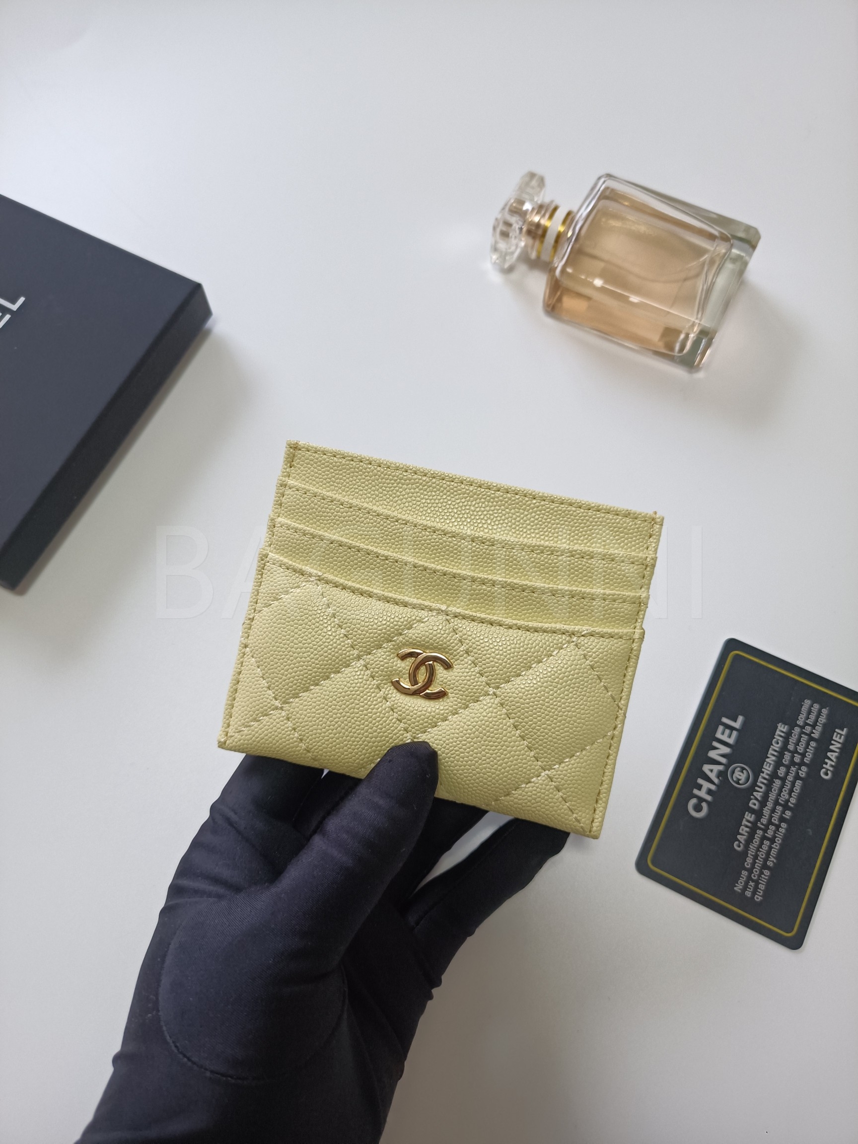 램스킨의 질감이 돋보이는 샤넬 클래식 플랩 카드지갑입니다.