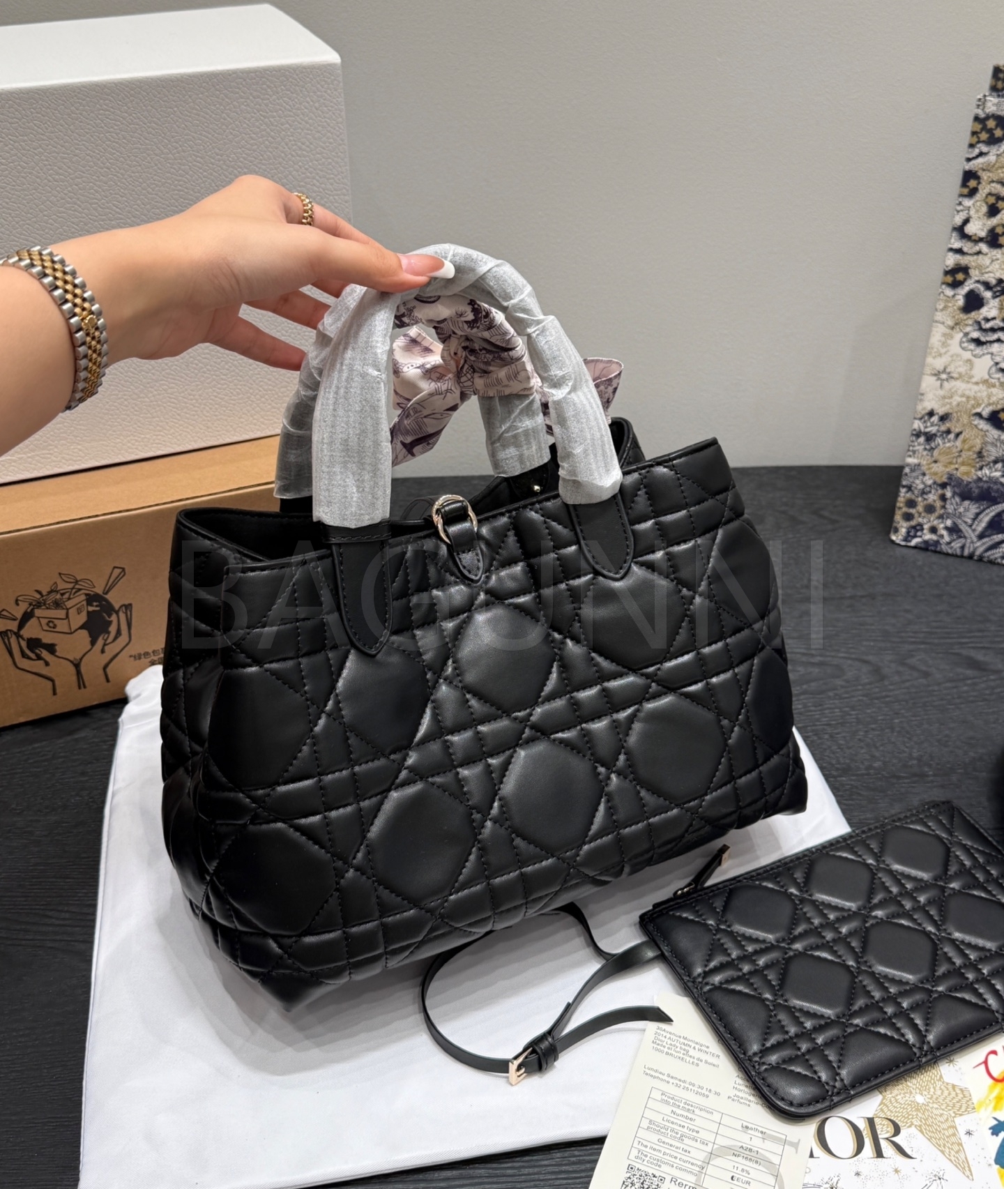 디올 투주르 쇼퍼백입니다. 램스킨 특유의 질감이 자연스럽게 살아 있으며 브랜드 특유의 분위기를 편하게 즐기기 좋습니다.