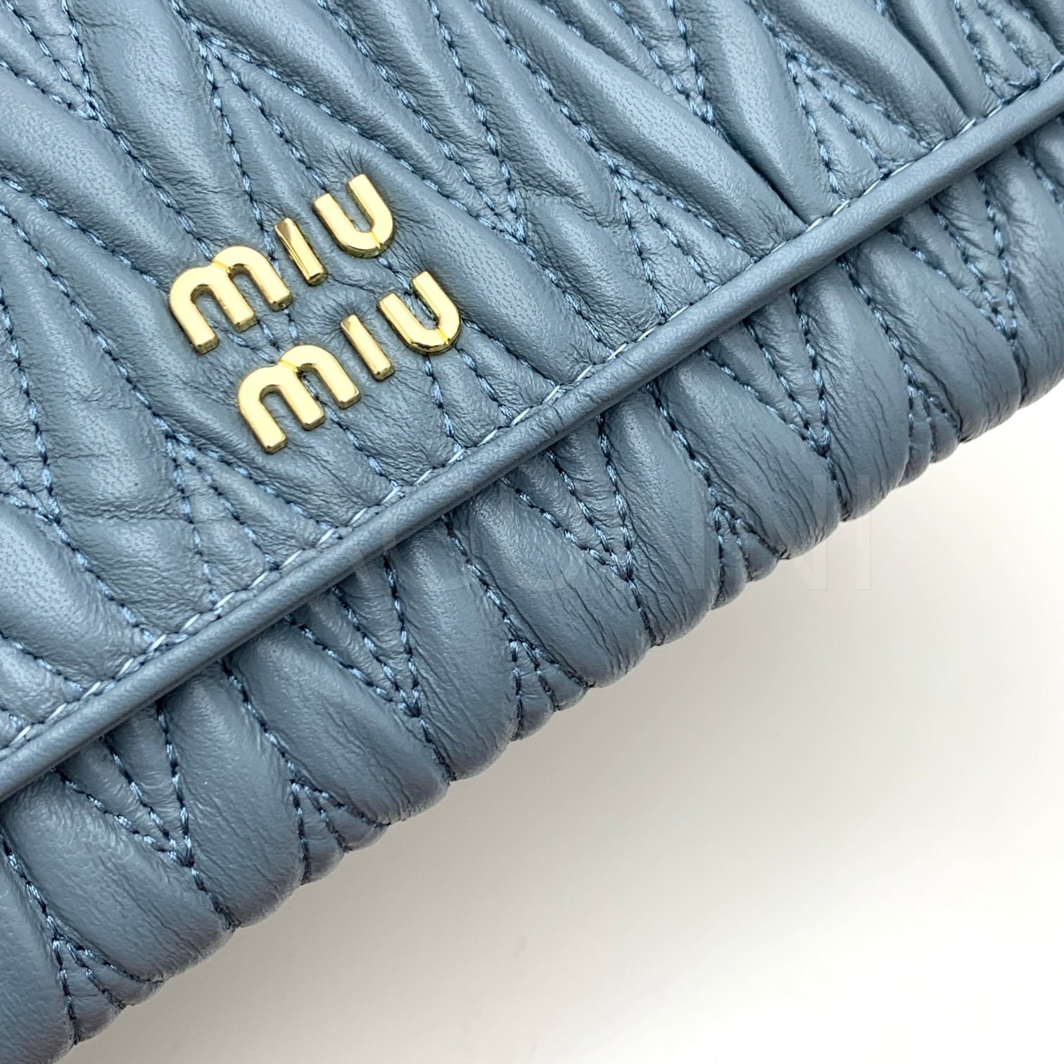 램스킨의 질감이 돋보이는 미우미우 지퍼 카드지갑입니다.