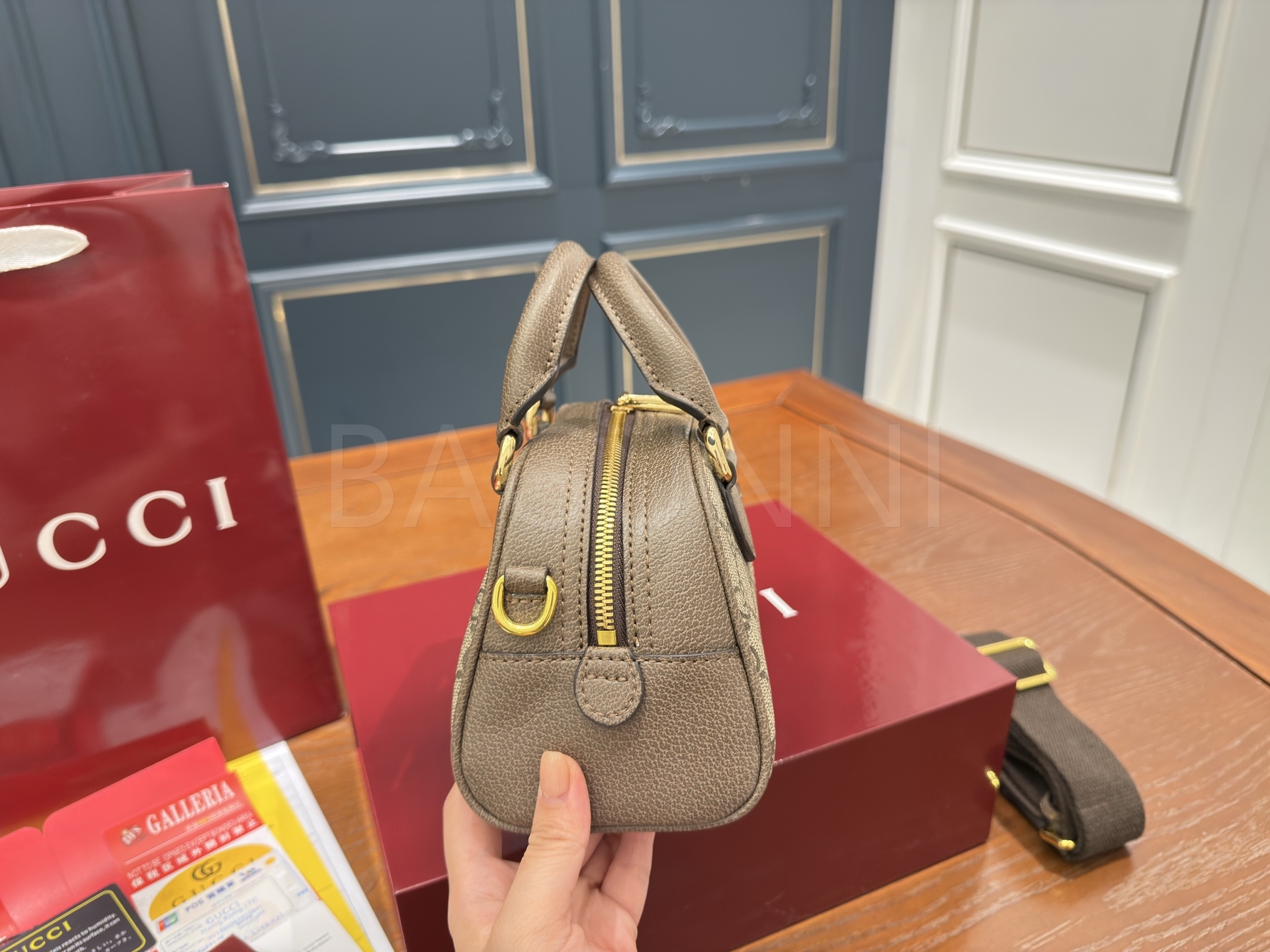 구찌 오피디아 미니 볼링백입니다. 브랜드 특유의 분위기를 편하게 즐기기 좋습니다.