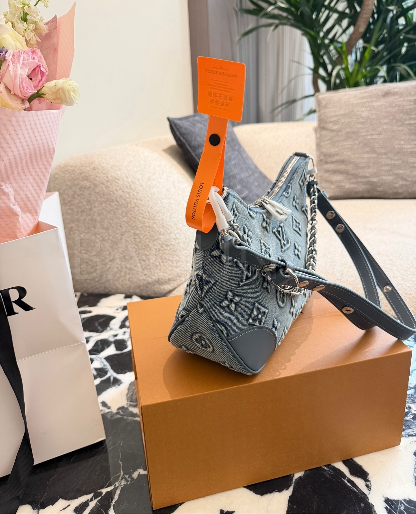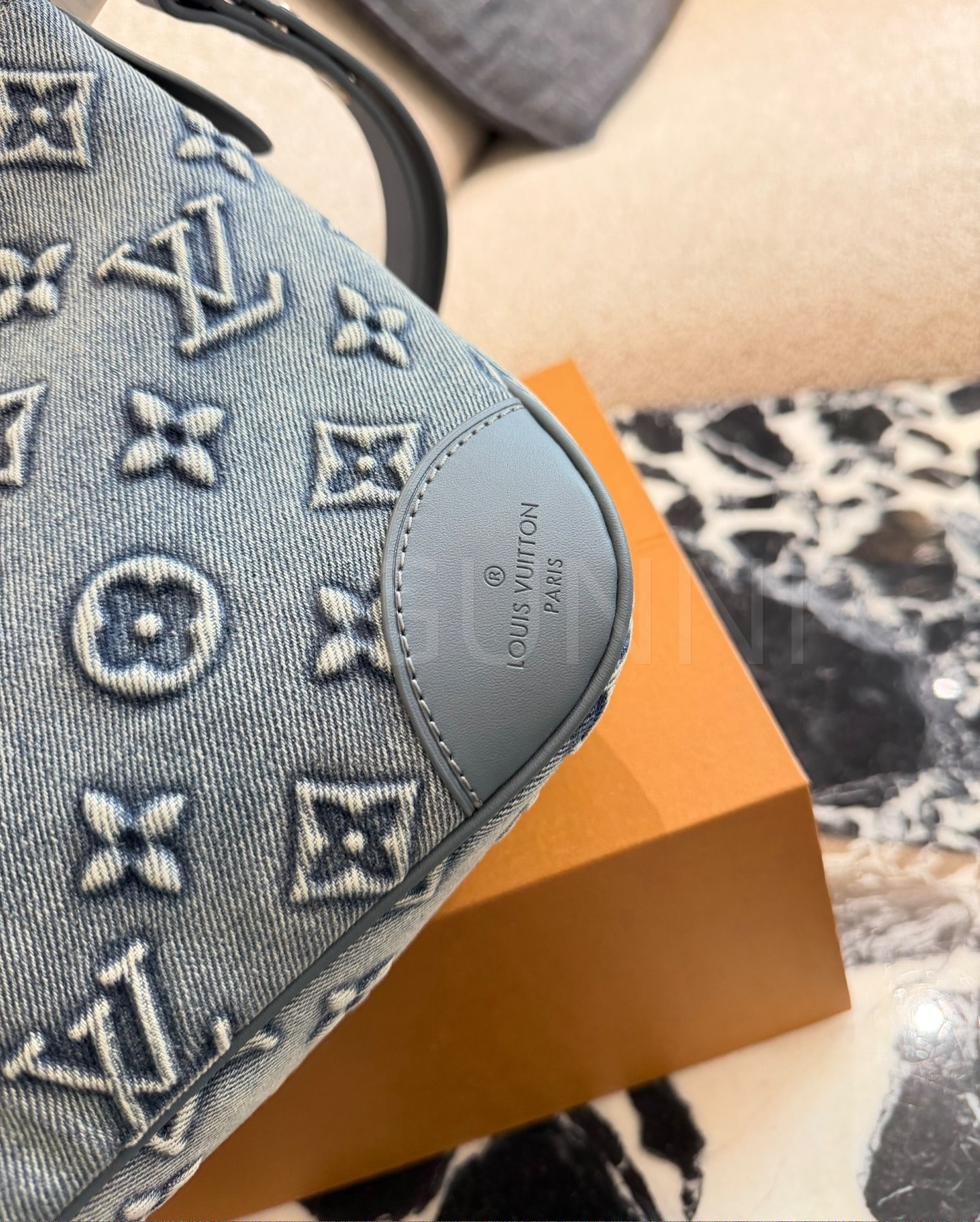 데님 특유의 캐주얼한 무드가 돋보이는 루이비통 데님 가방입니다.