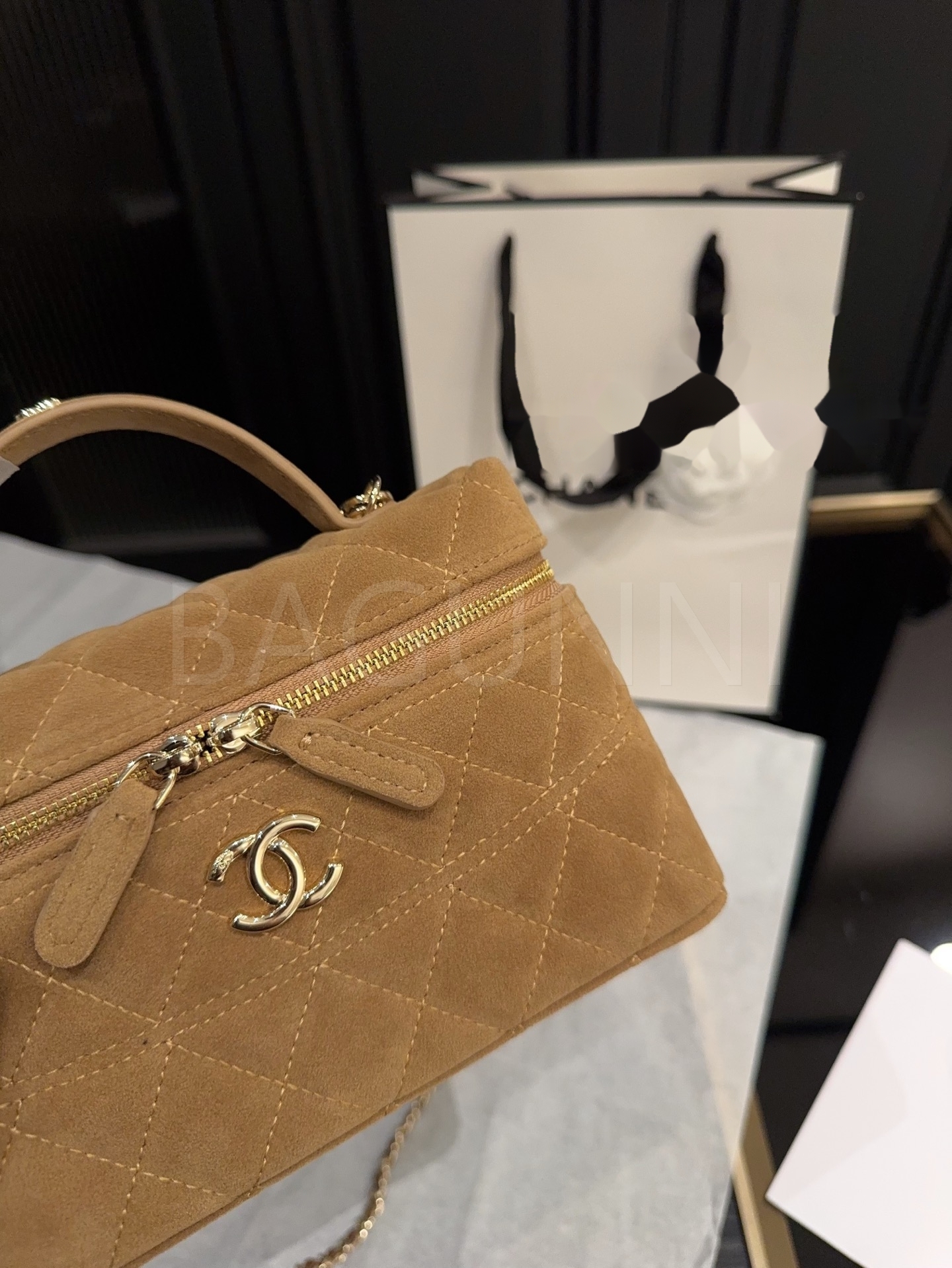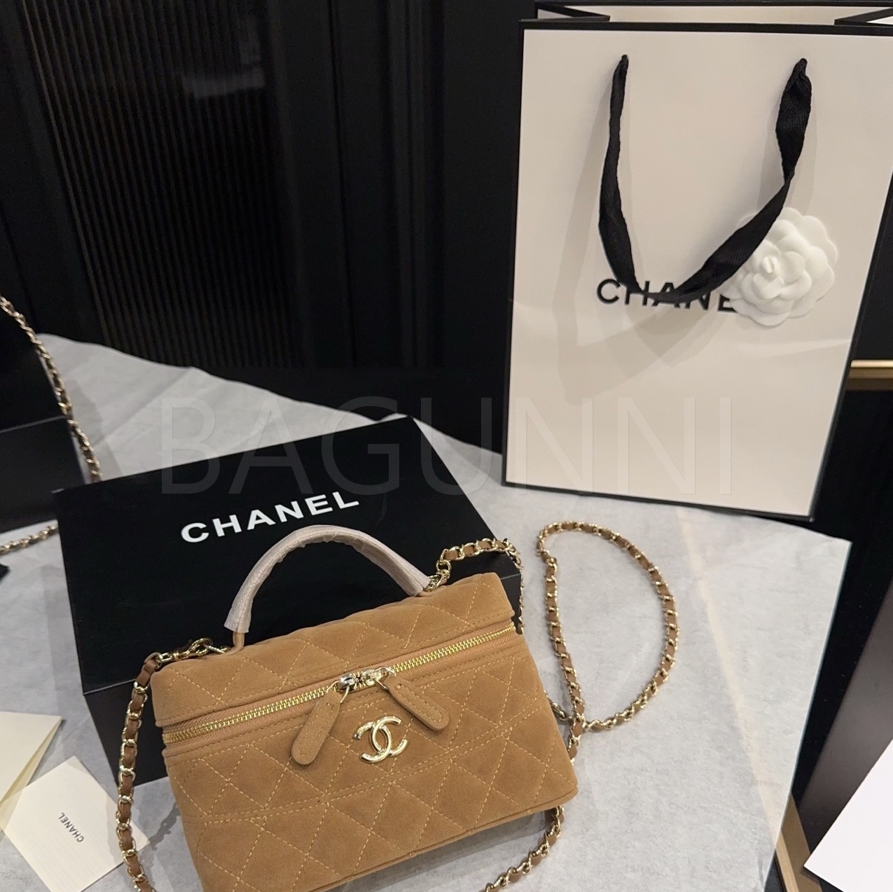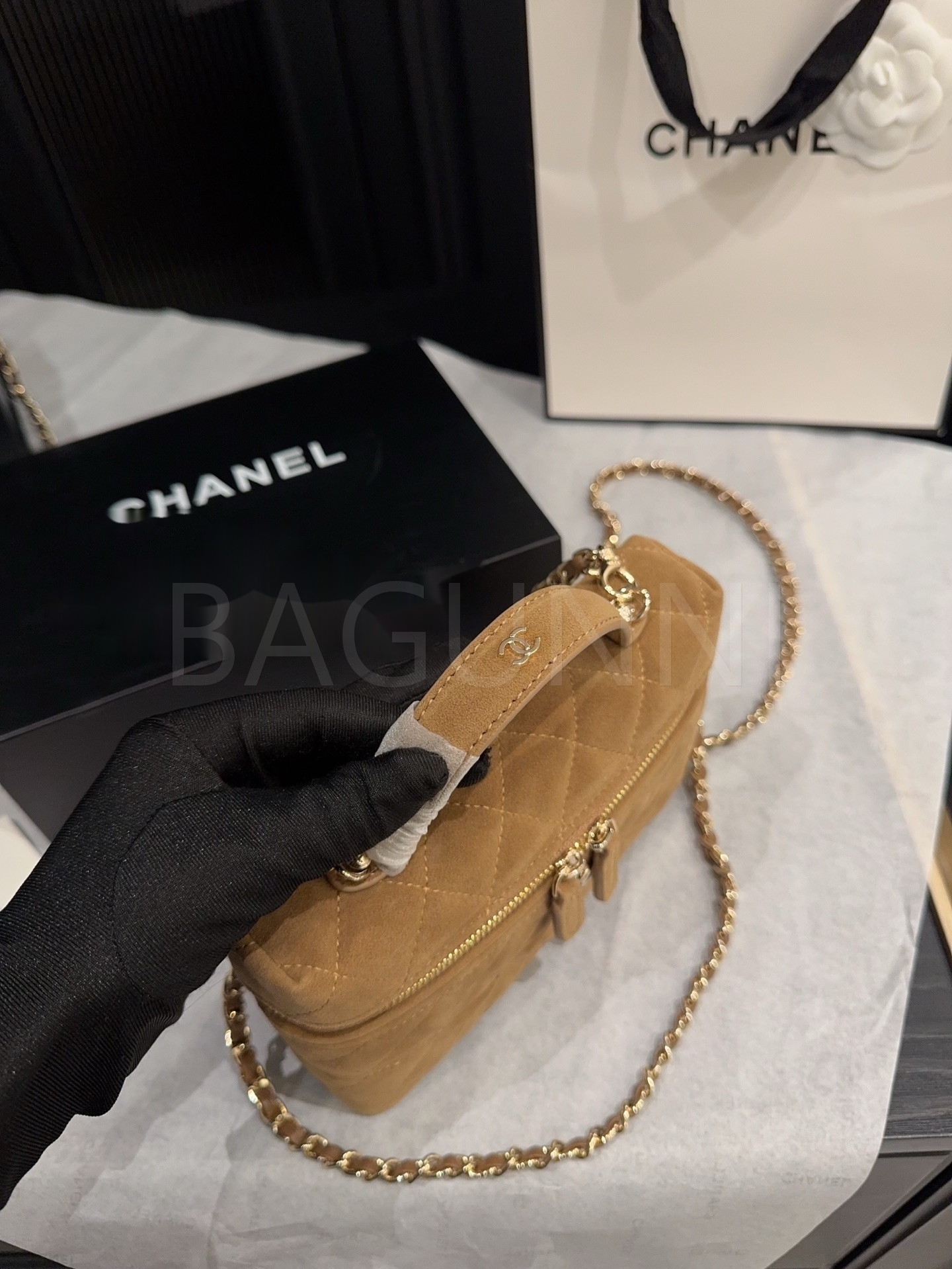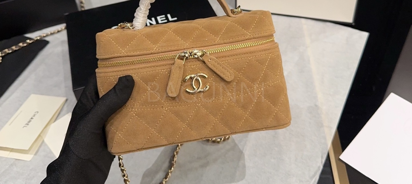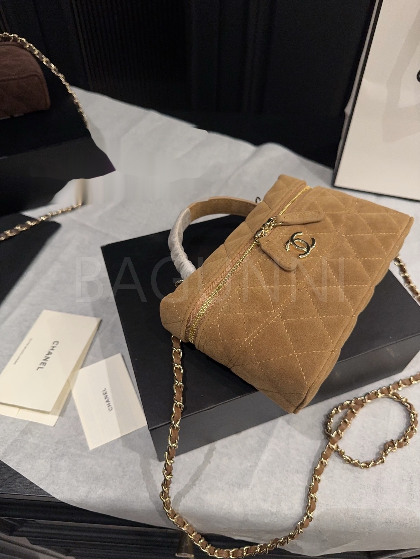스웨이드 특유의 매력이 돋보이는 샤넬 스웨이드 런치박스 체인 백입니다.