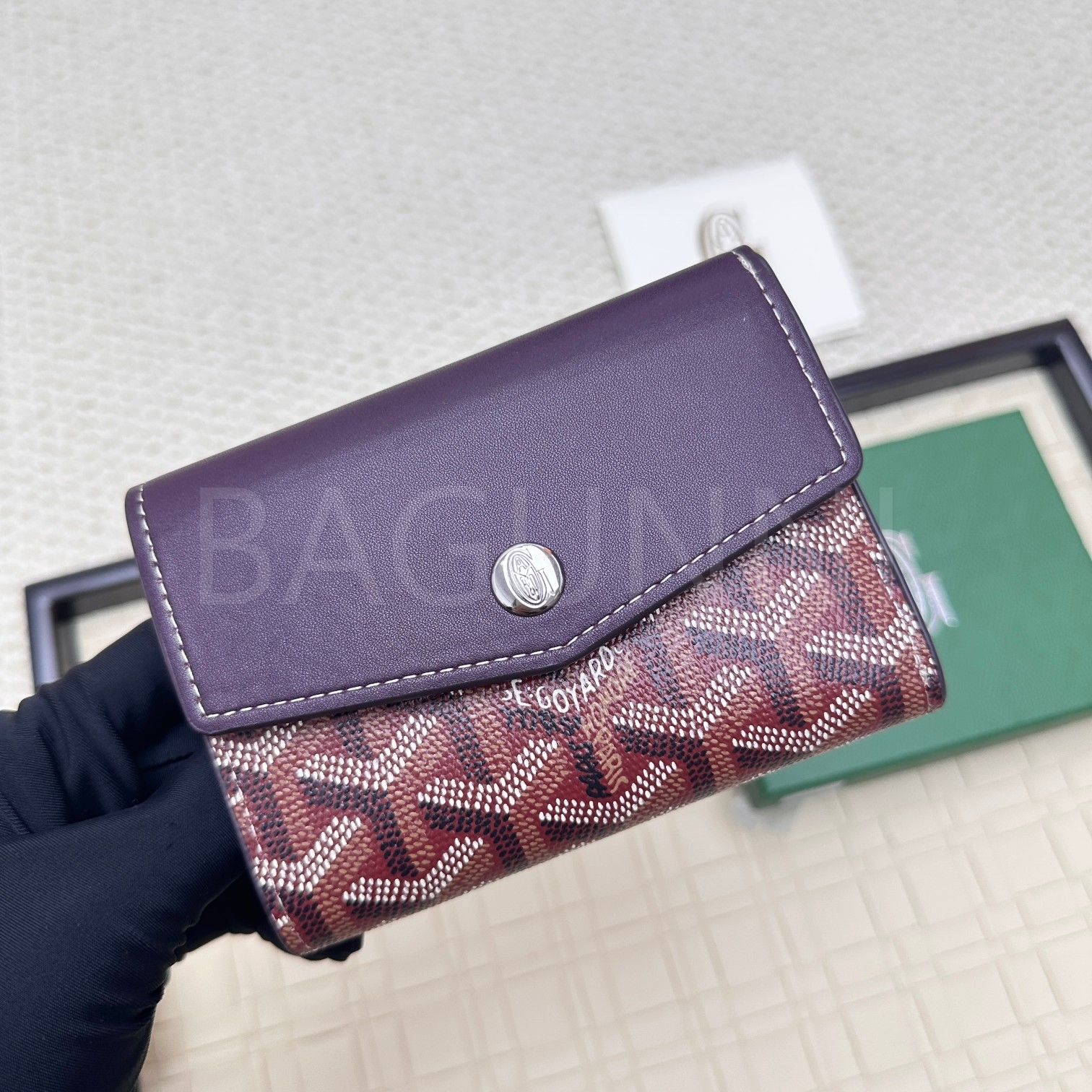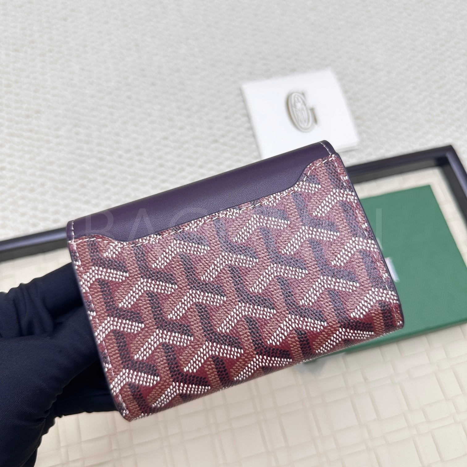 고야드 트리폴드 카드지갑 특유의 분위기가 자연스럽게 드러나는 디자인입니다.